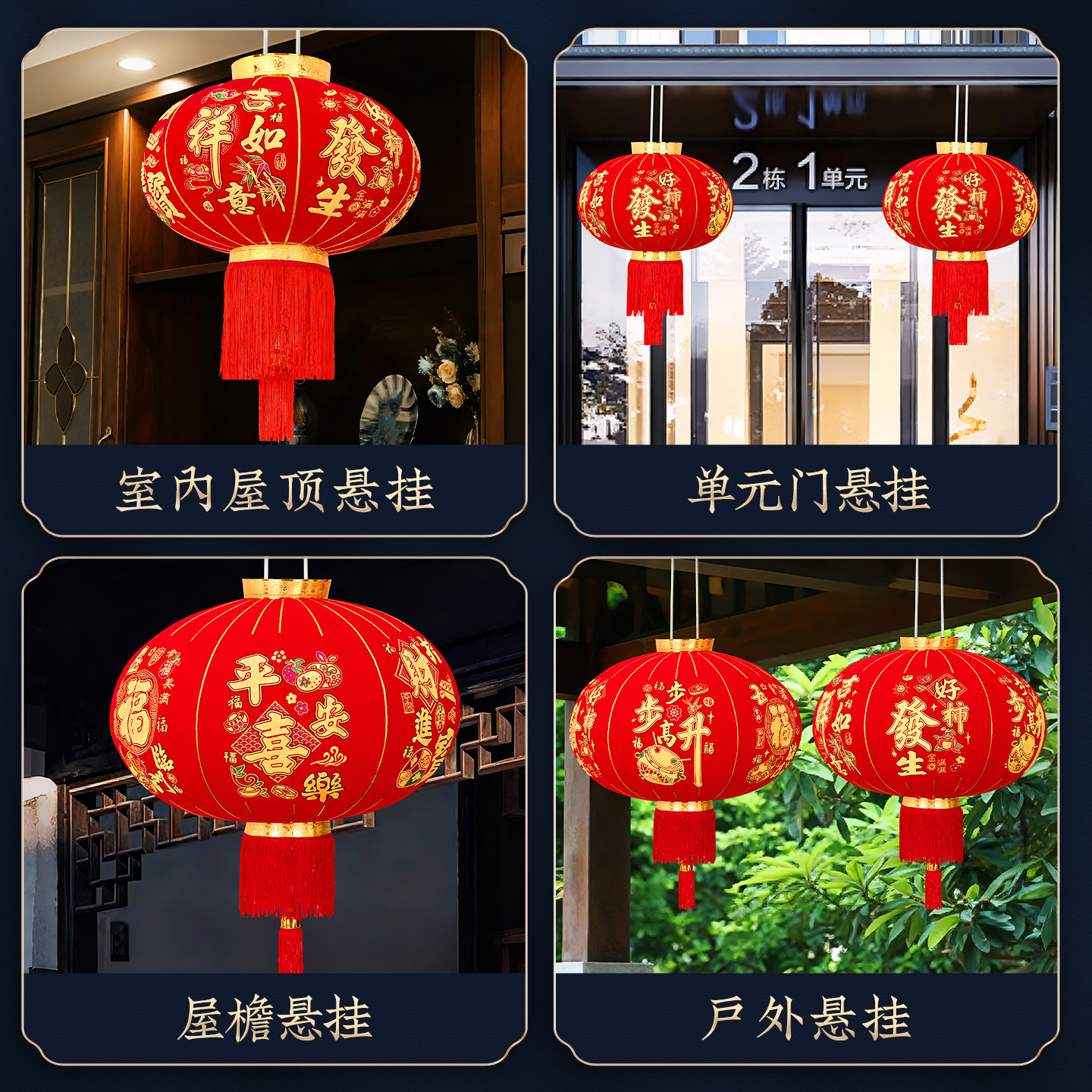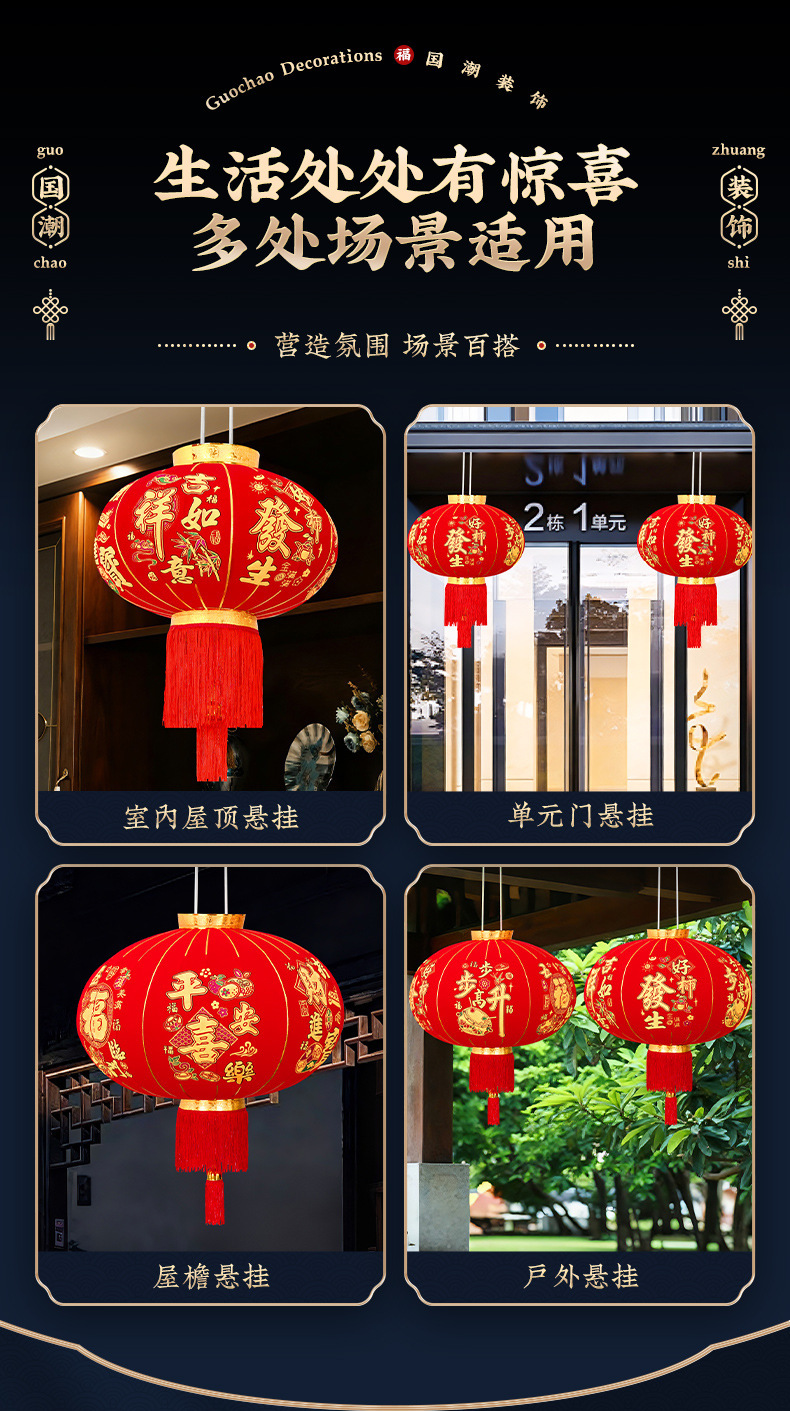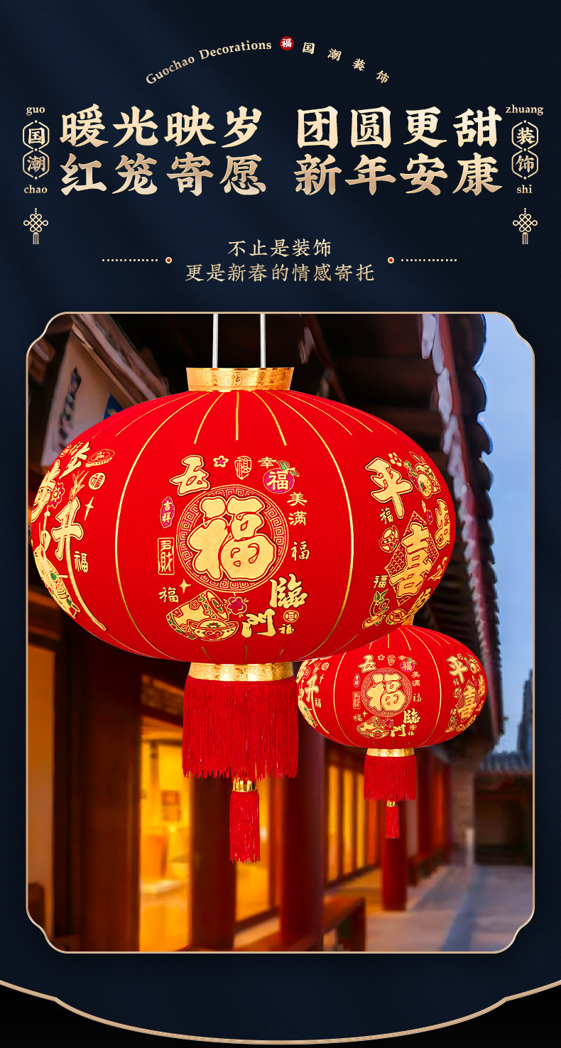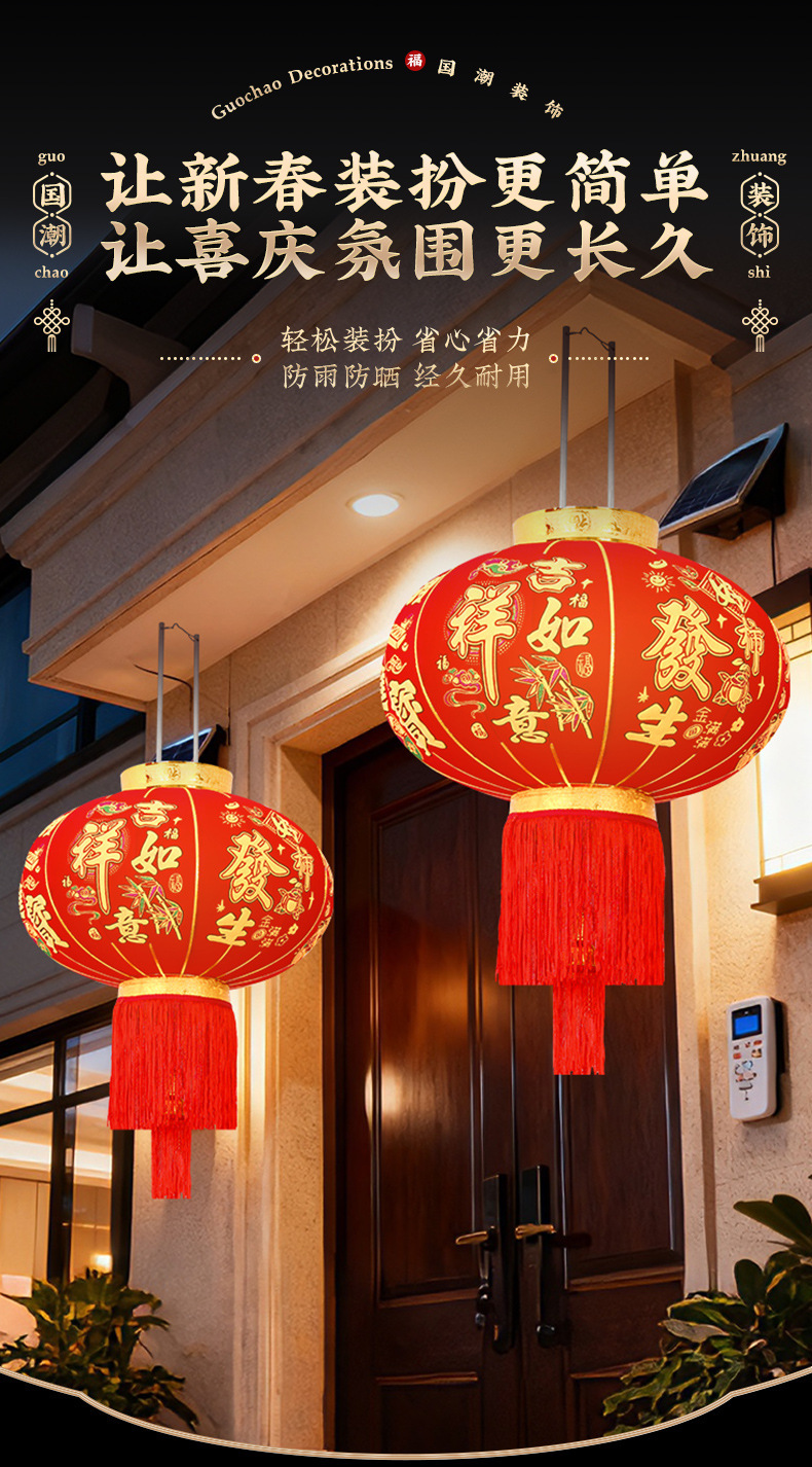 2026大红笼灯吊灯春节新年挂饰自建房大门口装饰一对阳台宫灯布置