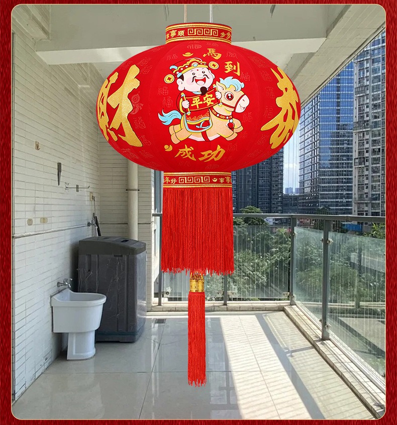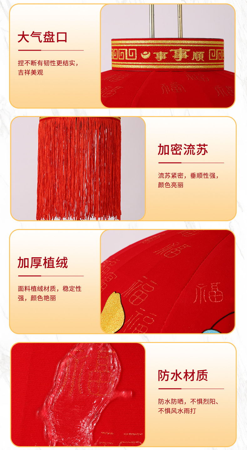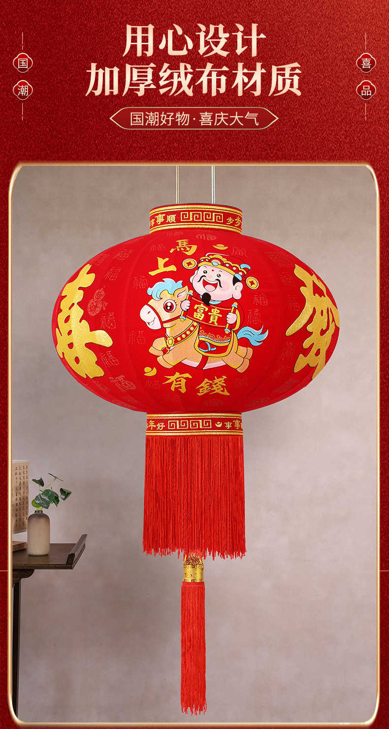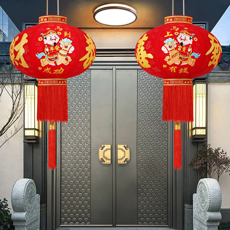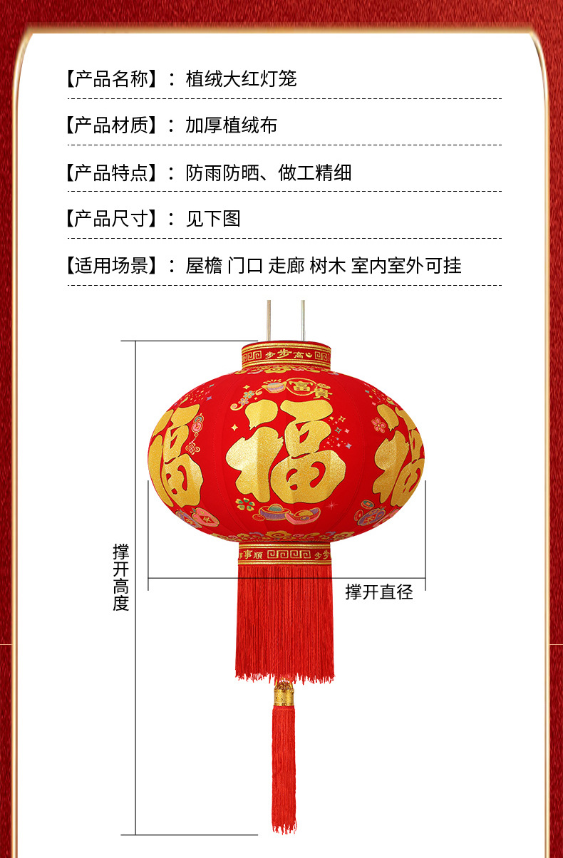 新款大红福字长杆灯笼马年灯笼喜庆装饰一对新年灯笼植绒大门口红