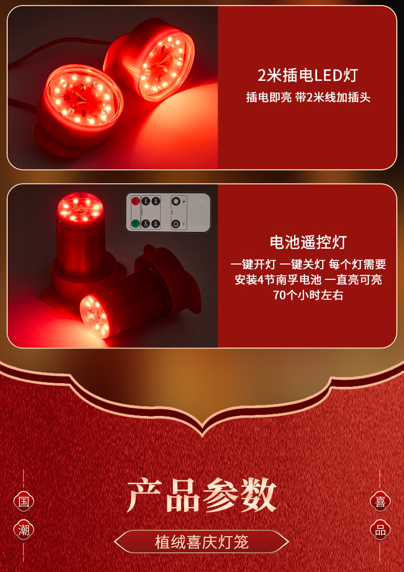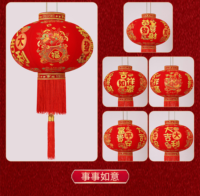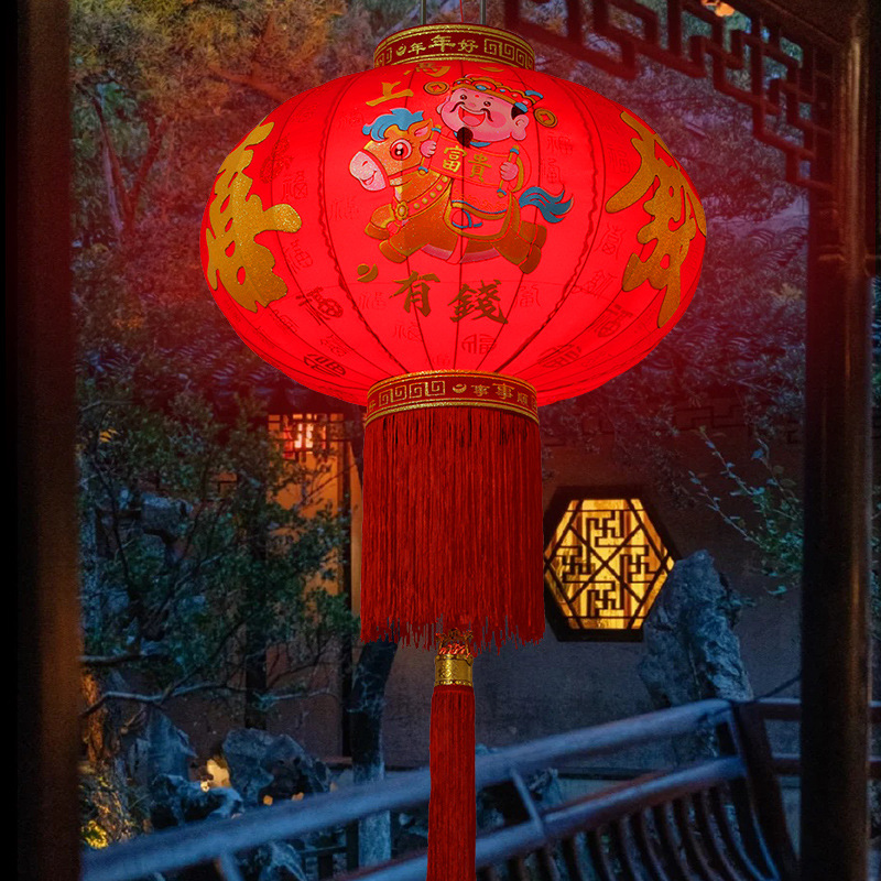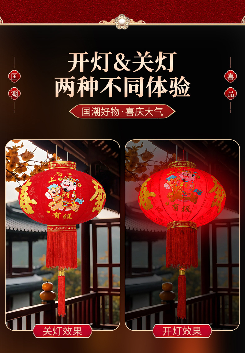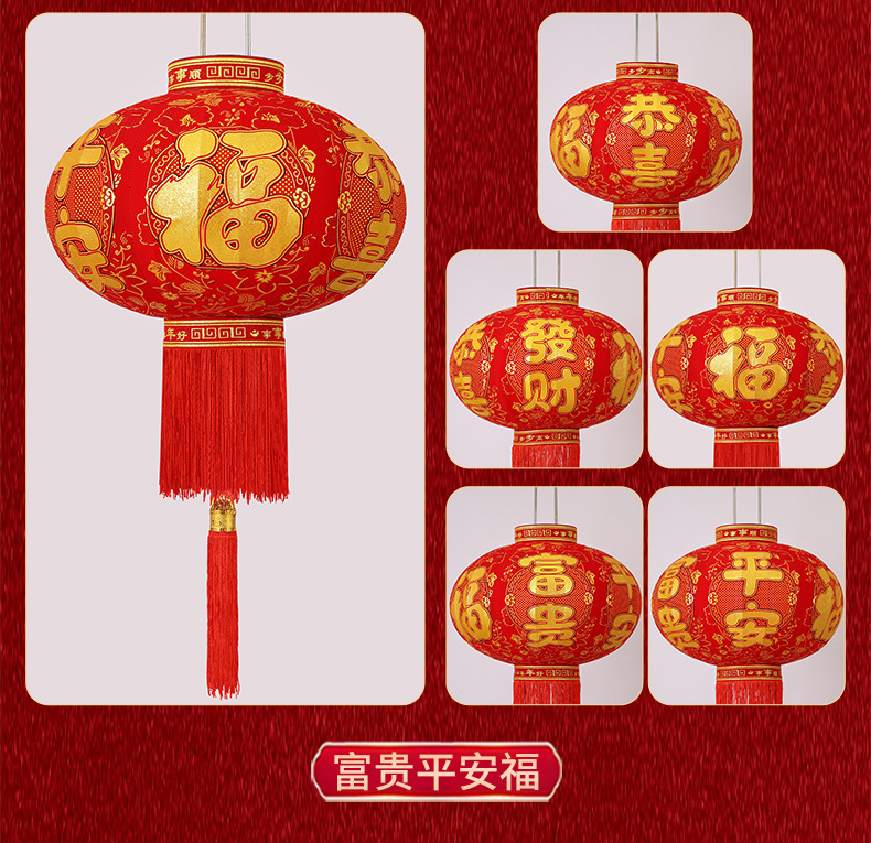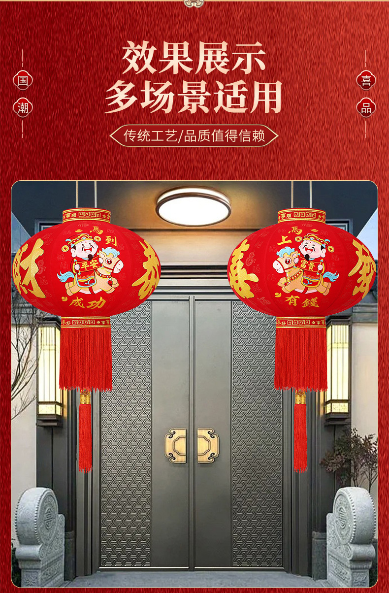 新款大红福字长杆灯笼马年灯笼喜庆装饰一对新年灯笼植绒大门口红