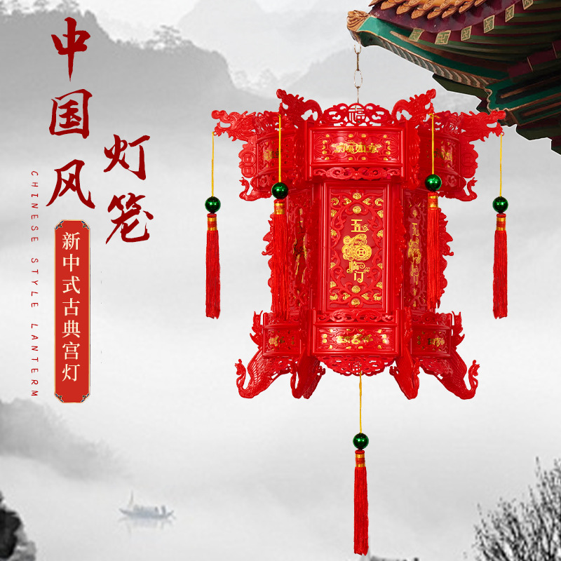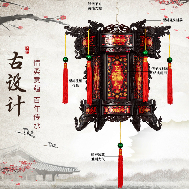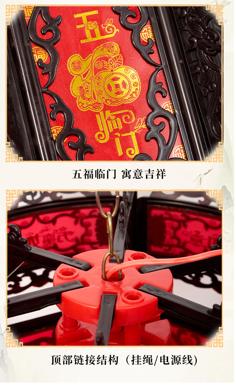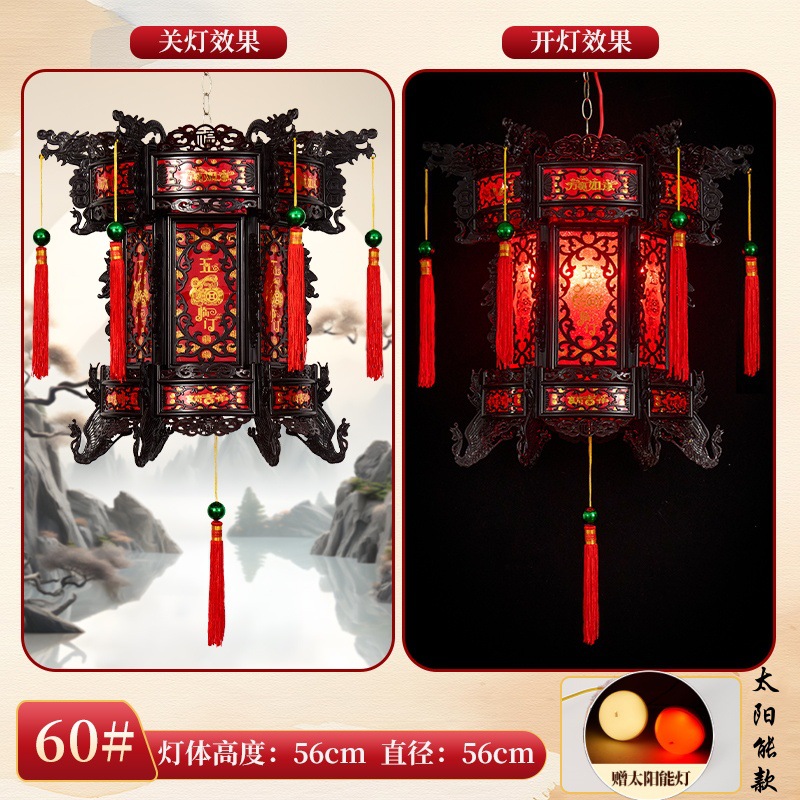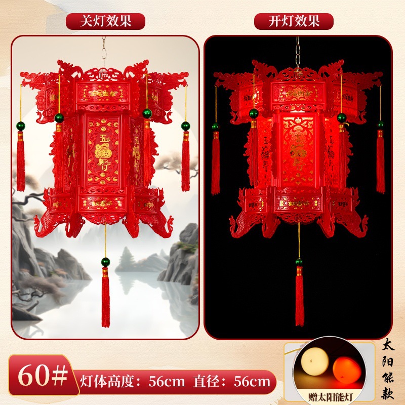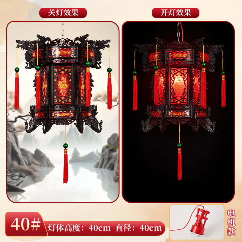 2026新款走马灯仿古宫灯中式七彩led旋转大门口一对阳台六角灯笼