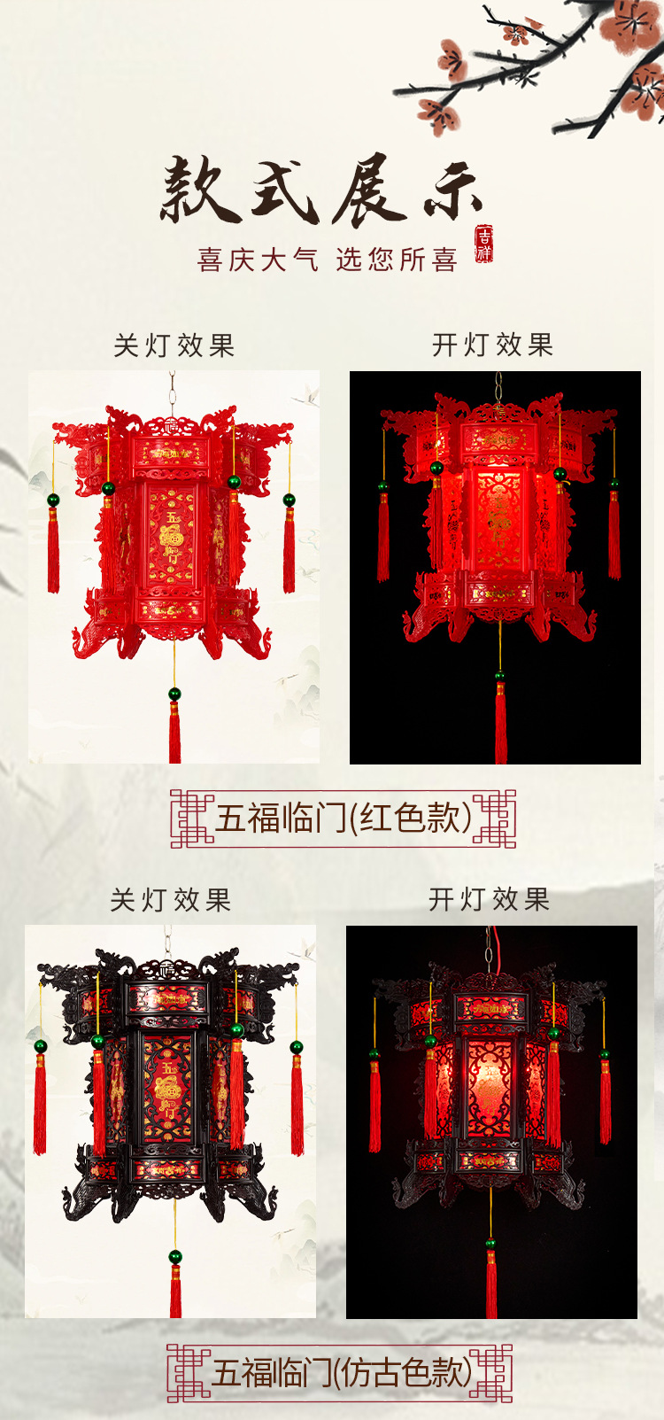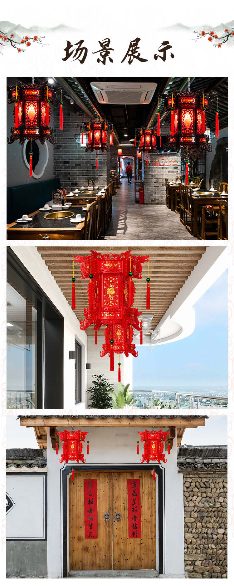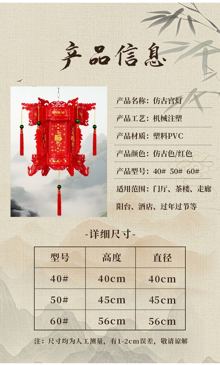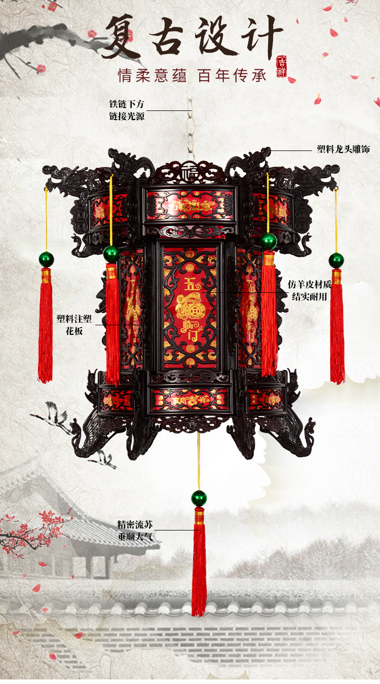 2026新款走马灯仿古宫灯中式七彩led旋转大门口一对阳台六角灯笼