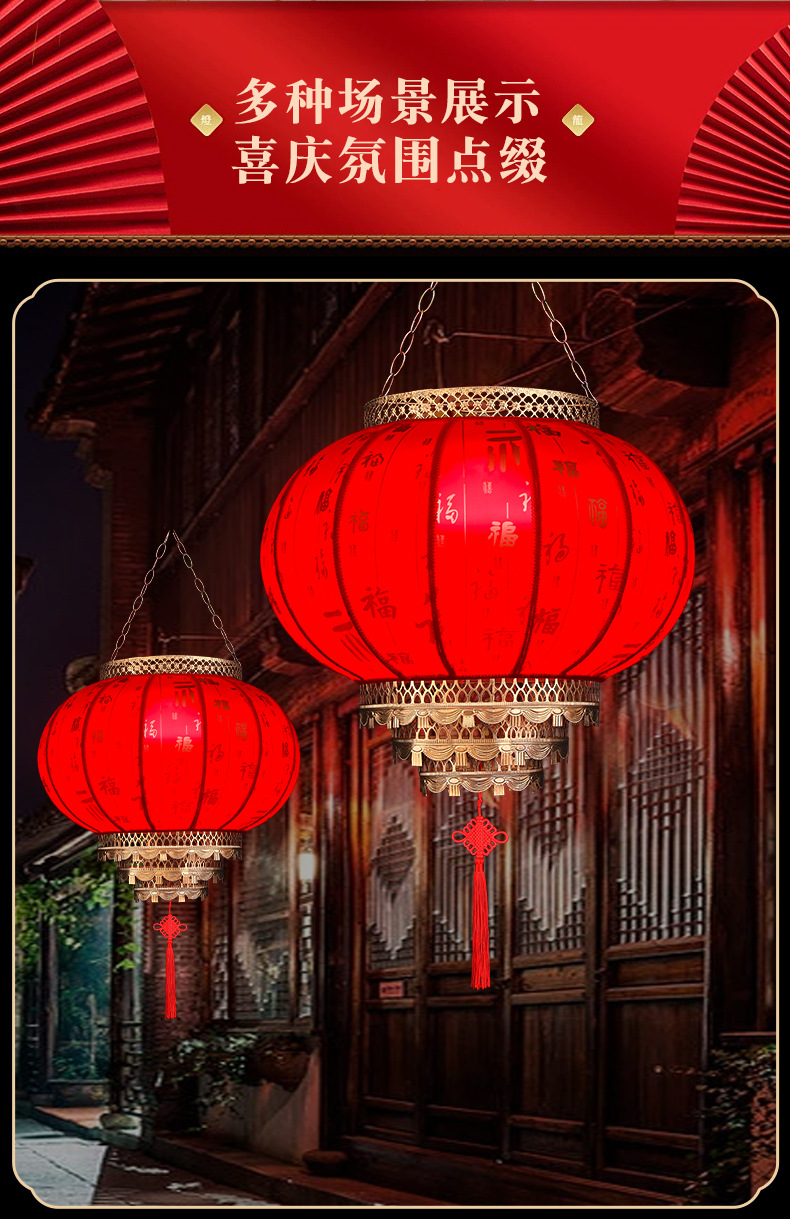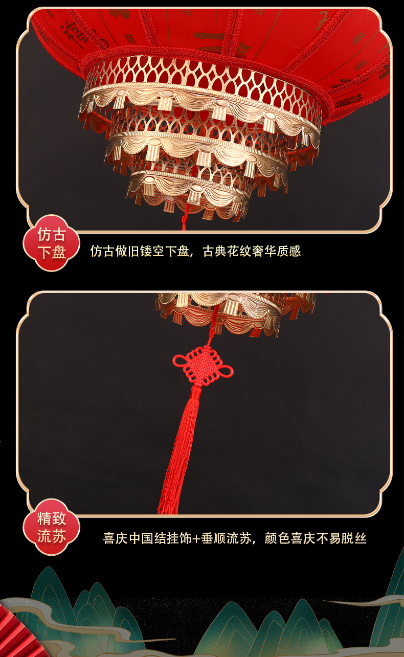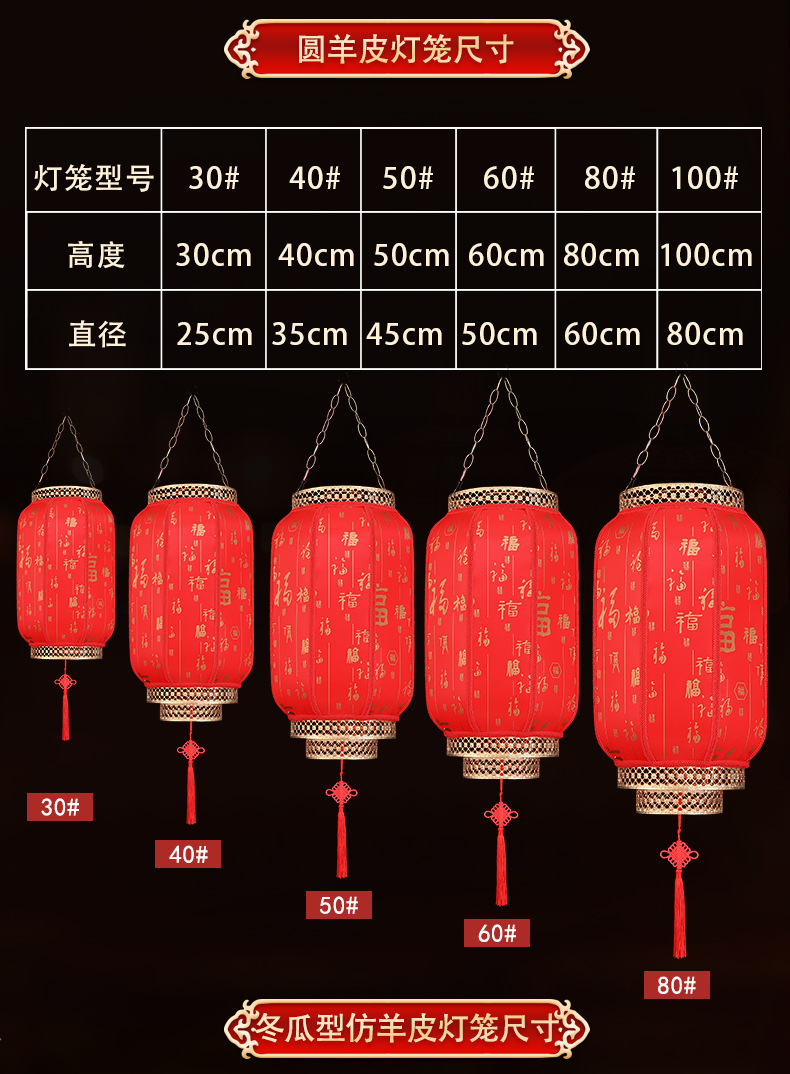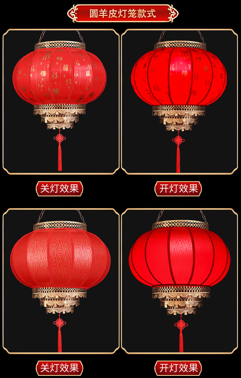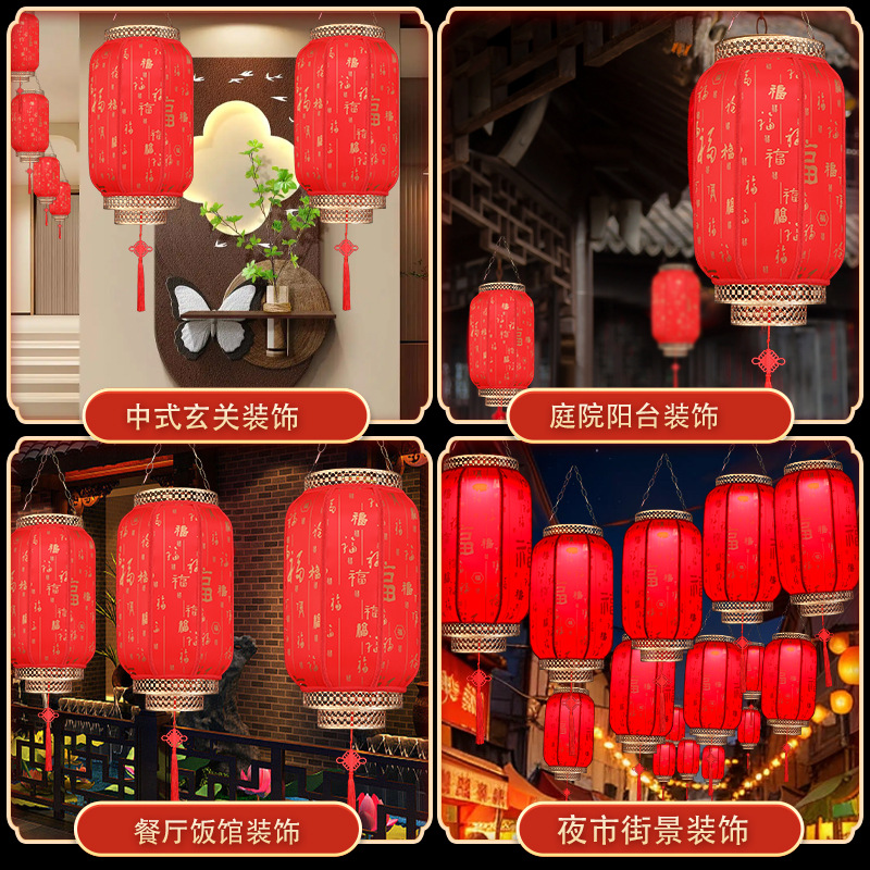 2025新款大红仿古羊皮灯笼户外春节新年大门口免插电庭院阳台挂饰