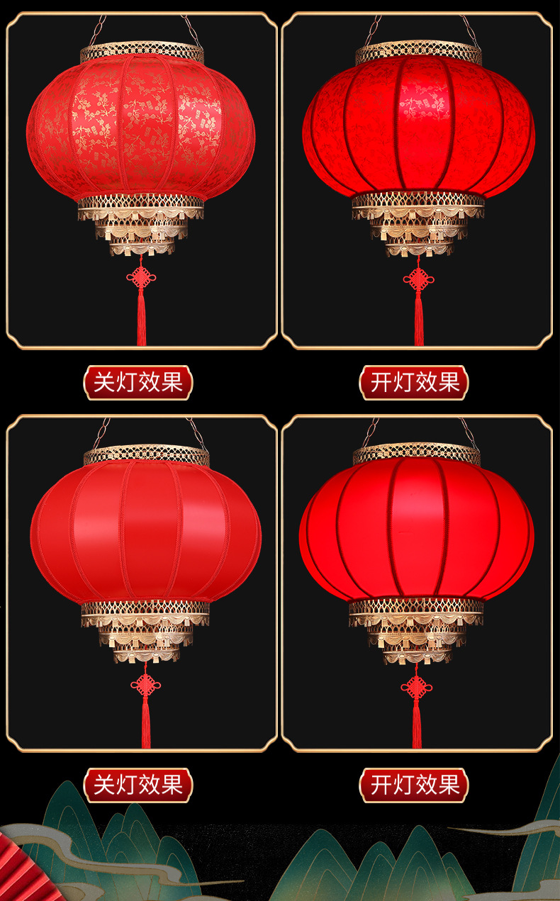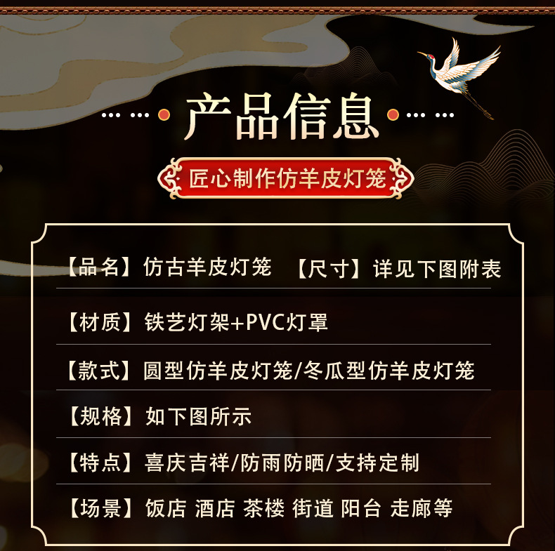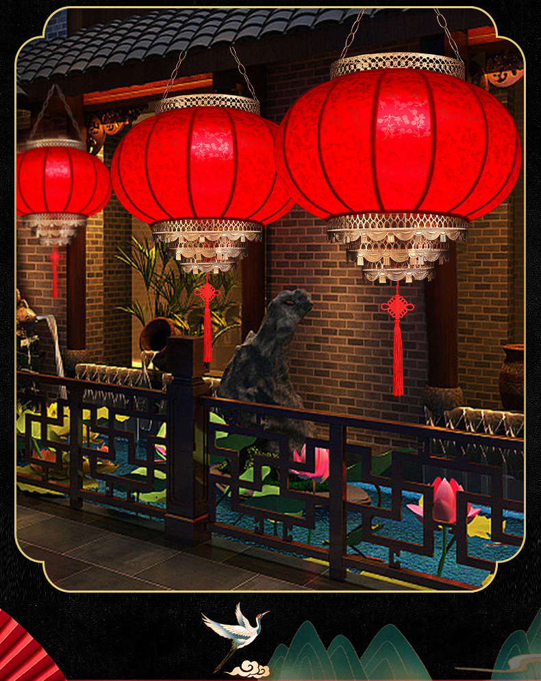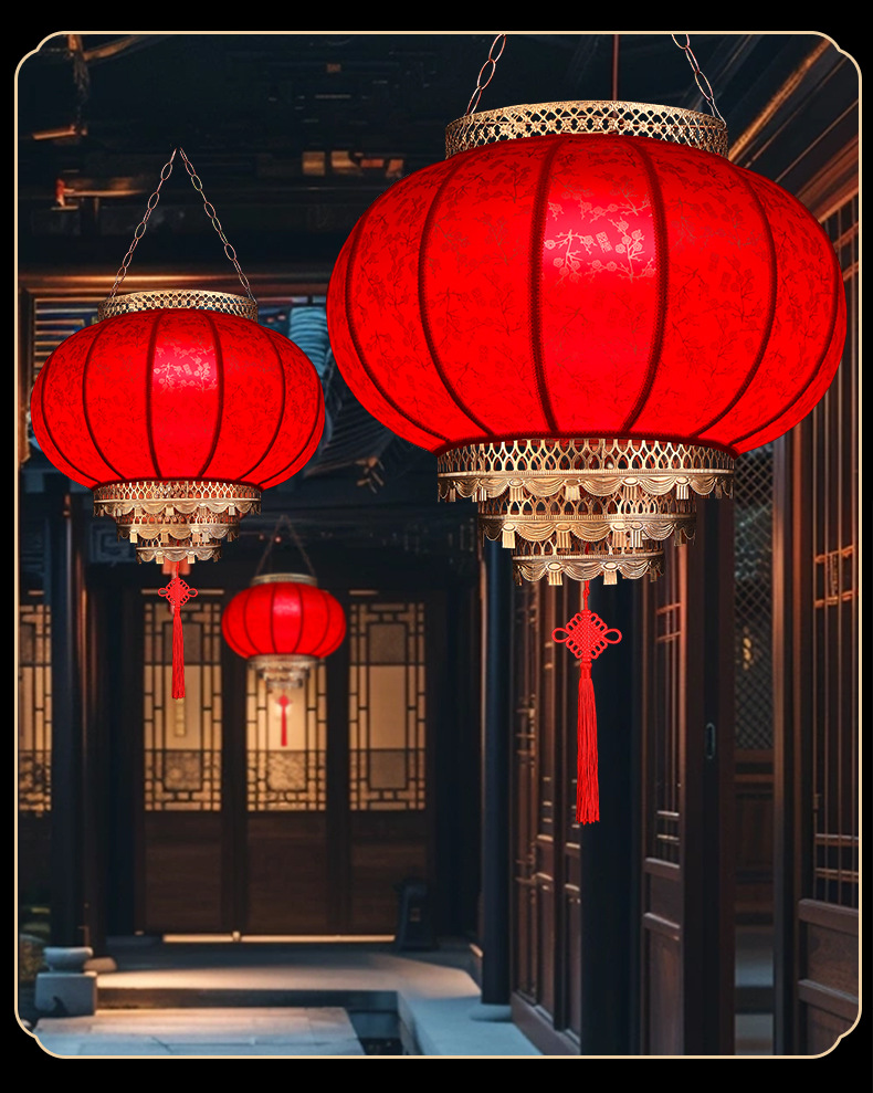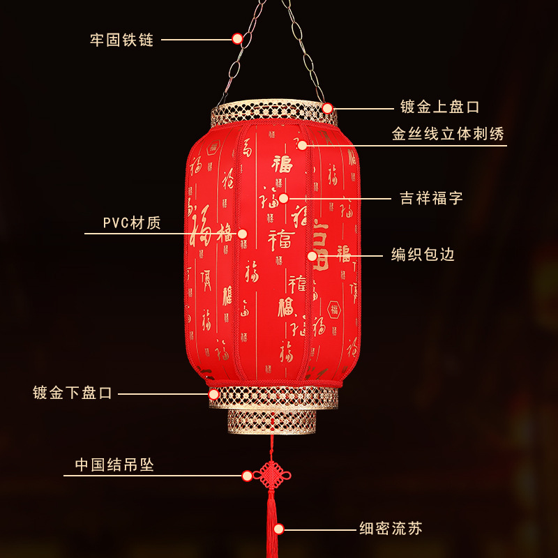 2025新款大红仿古羊皮灯笼户外春节新年大门口免插电庭院阳台挂饰