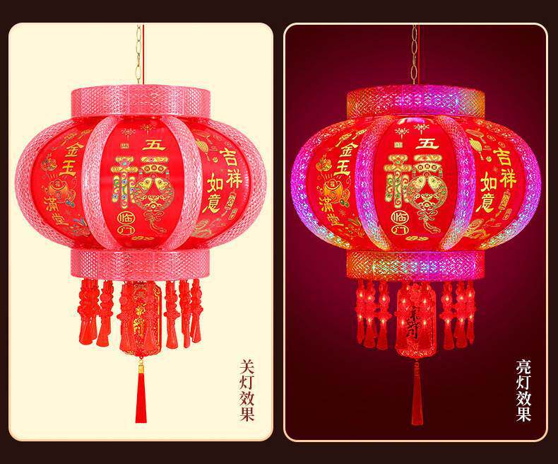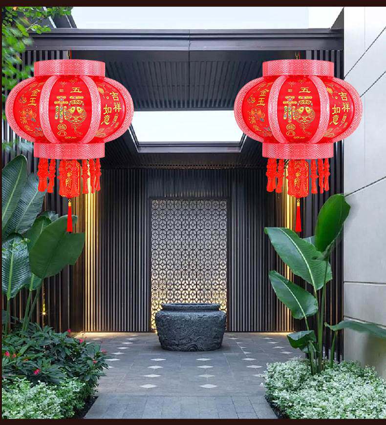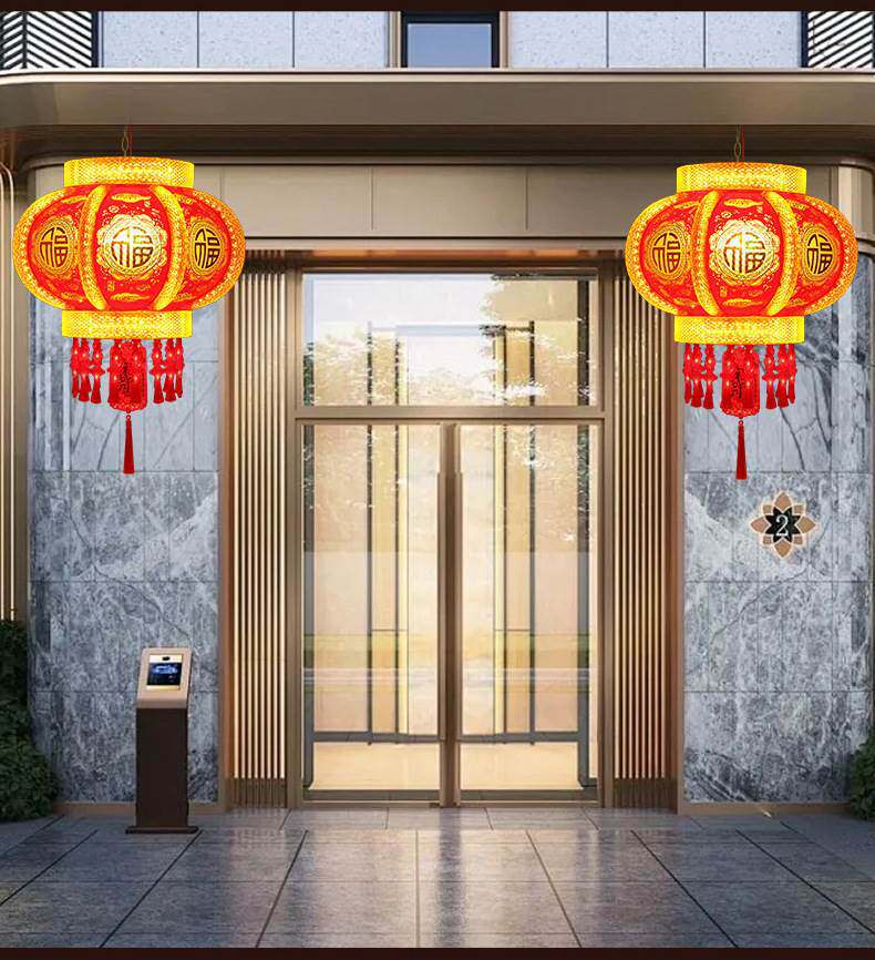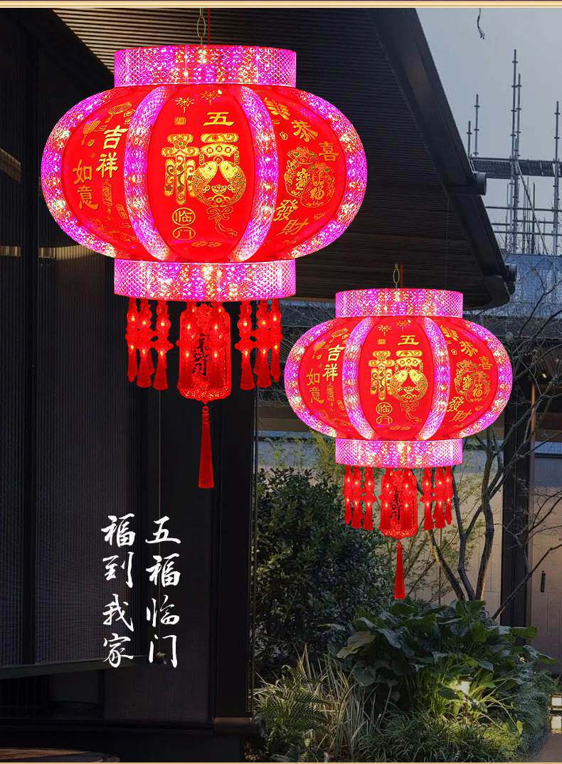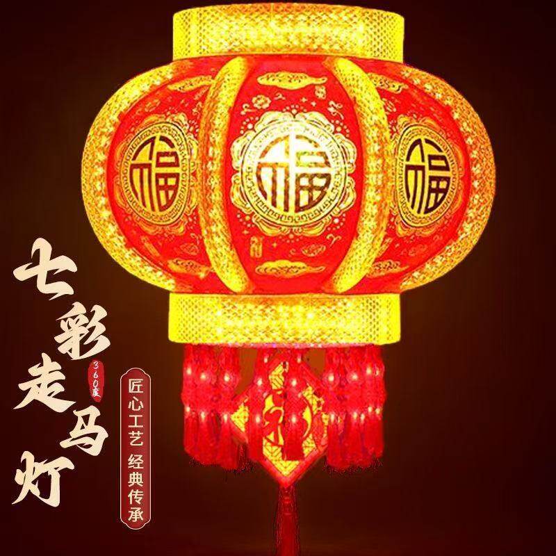 2025新款大门口灯笼七彩旋转LED走马灯一对阳台春节新年挂饰彩灯