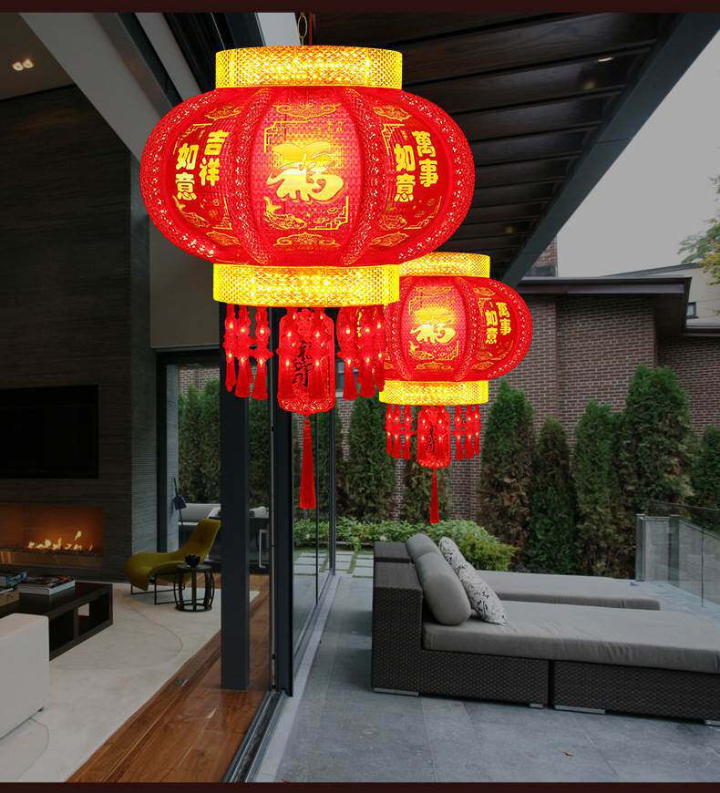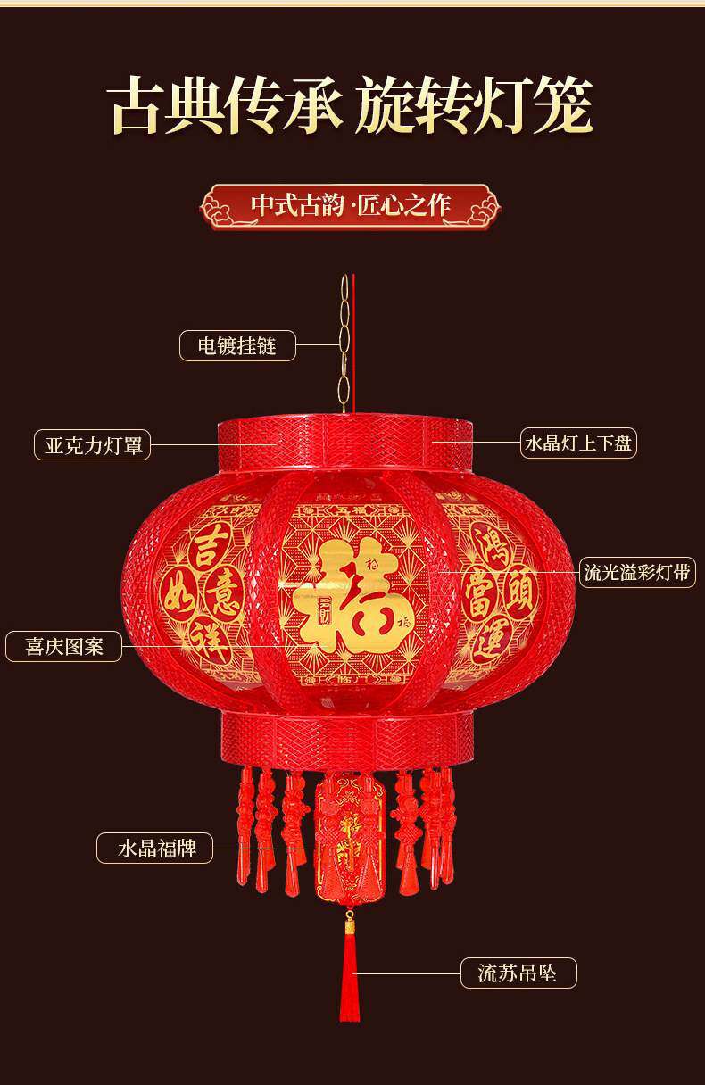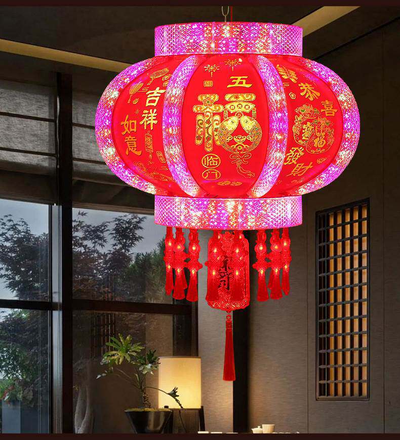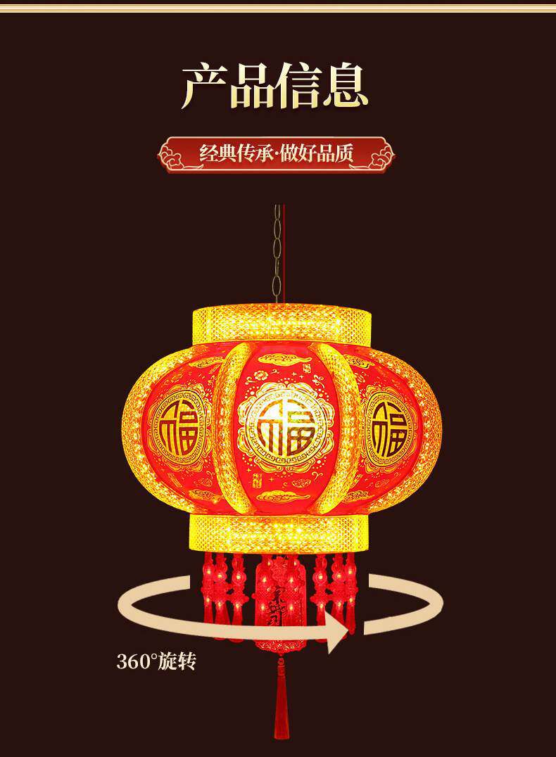 2025新款大门口灯笼七彩旋转LED走马灯一对阳台春节新年挂饰彩灯