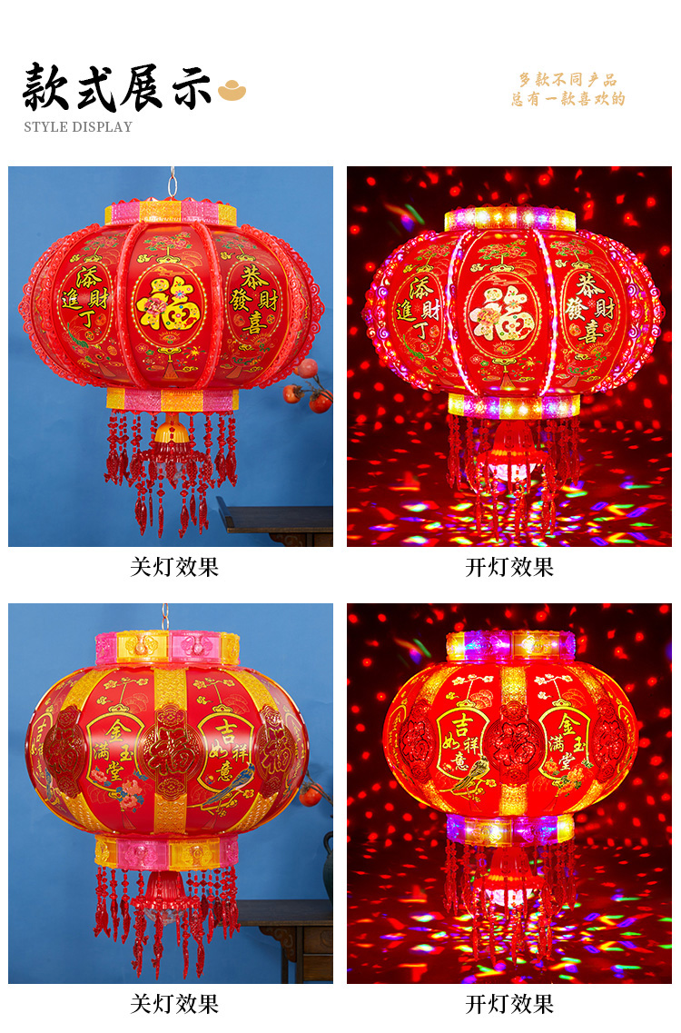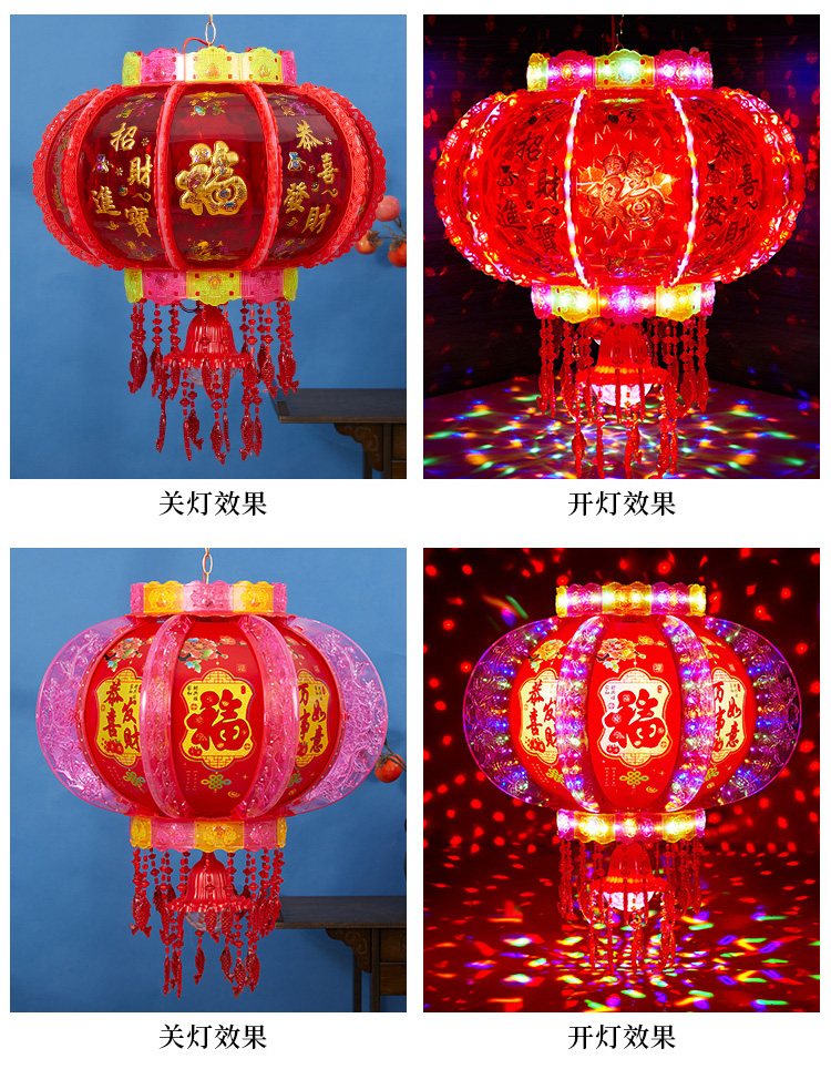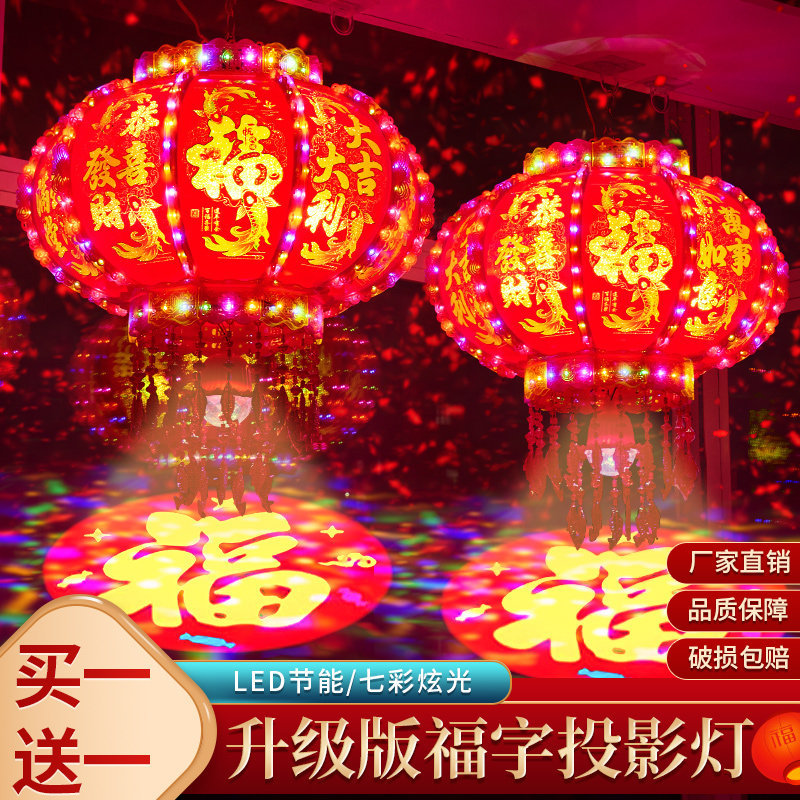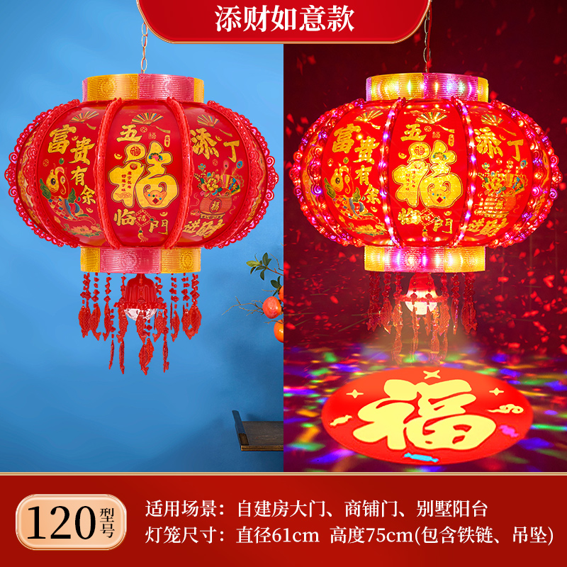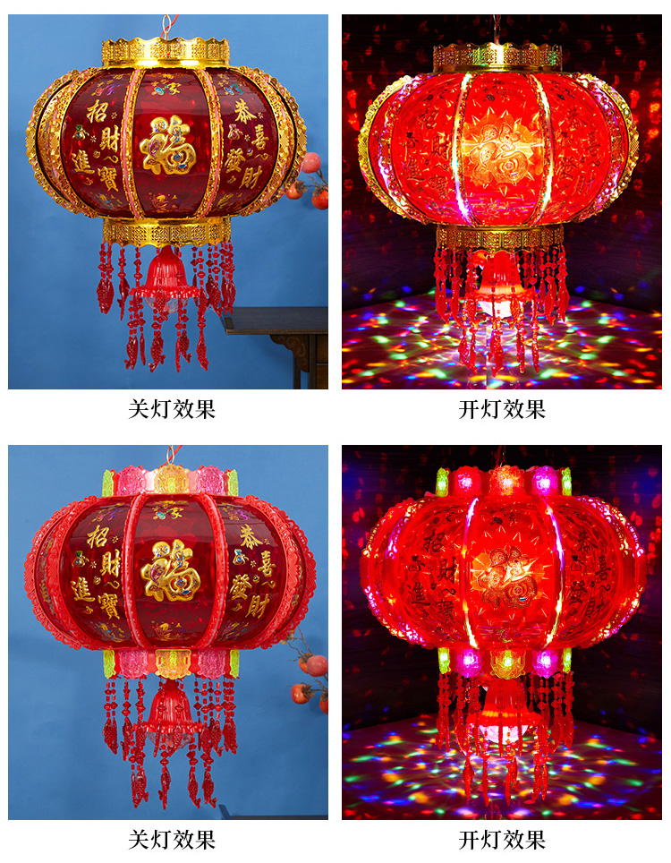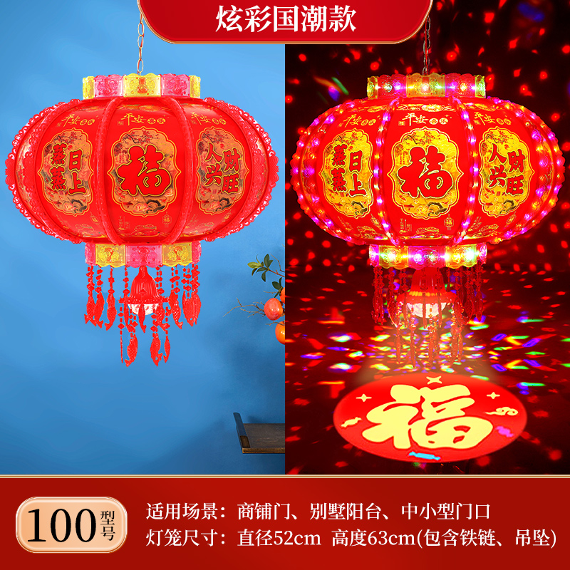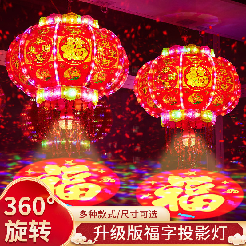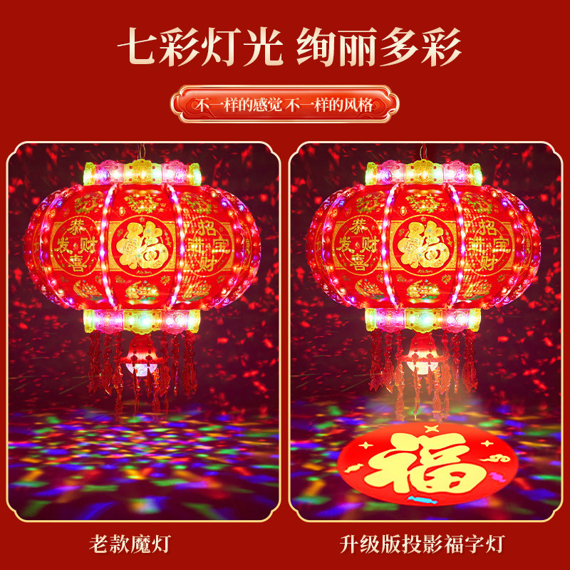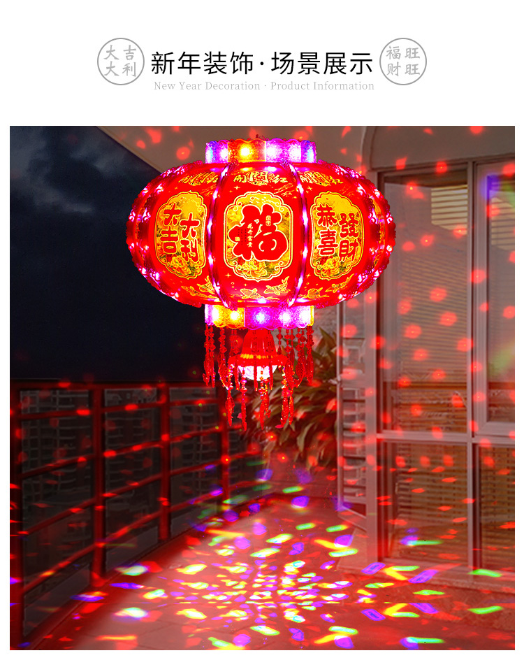 2025新款led电动七彩旋转走马灯笼春节大门口小阳台灯笼挂饰一对