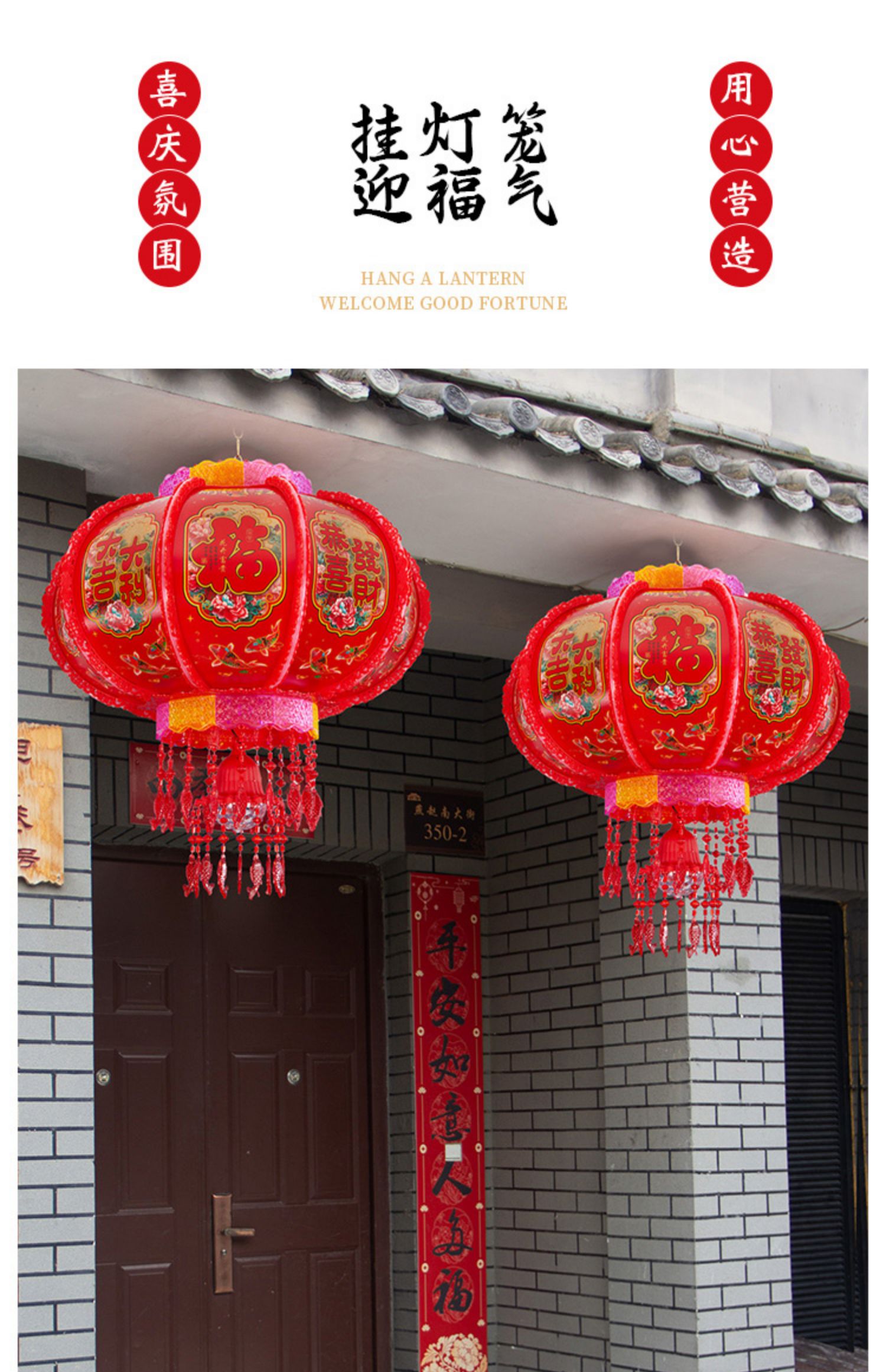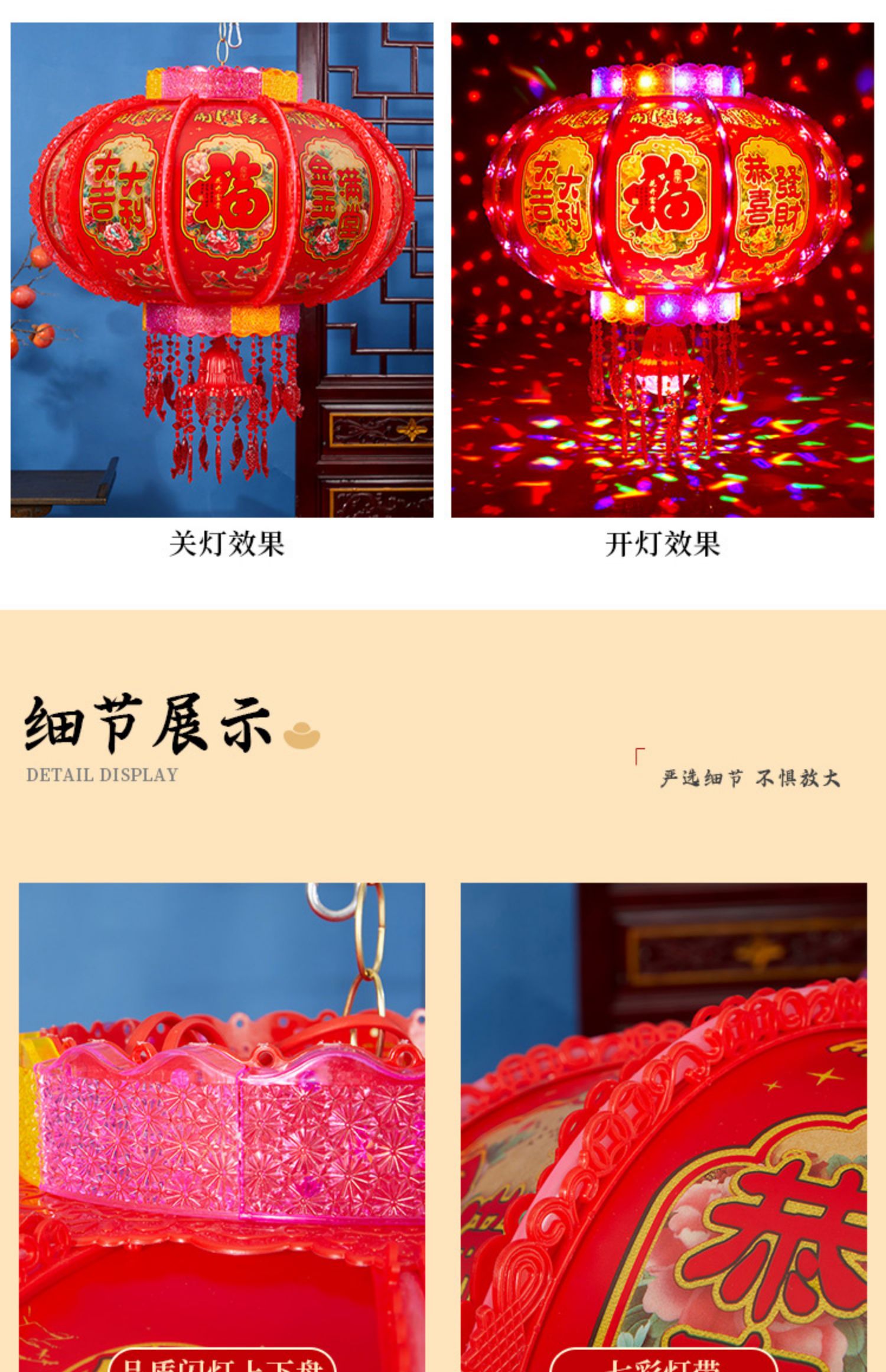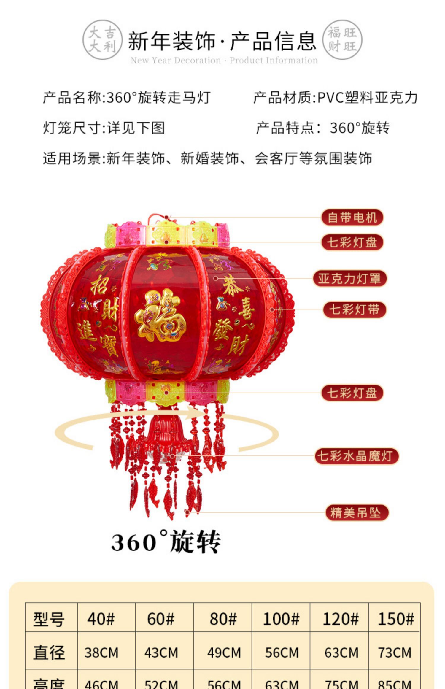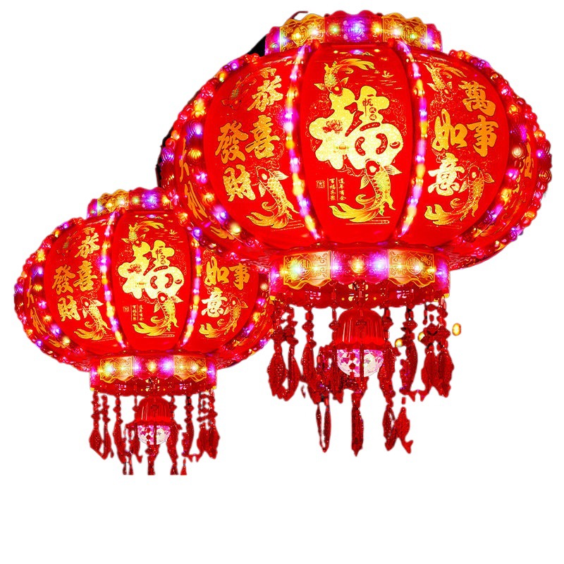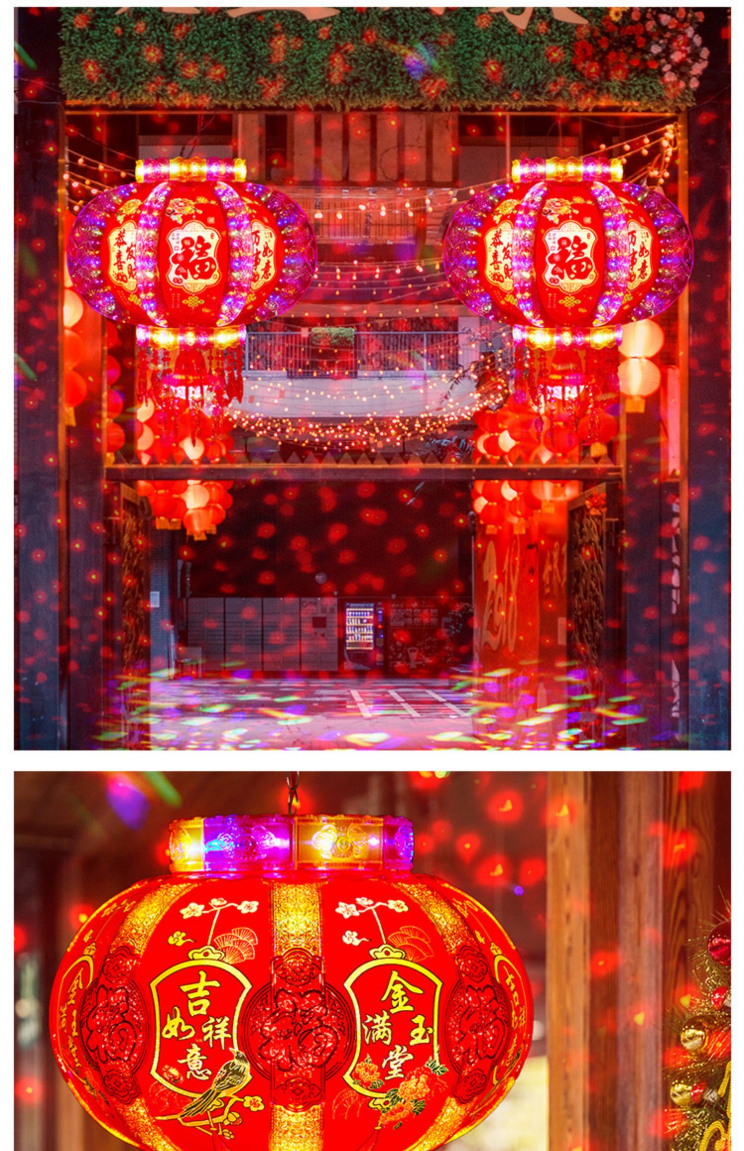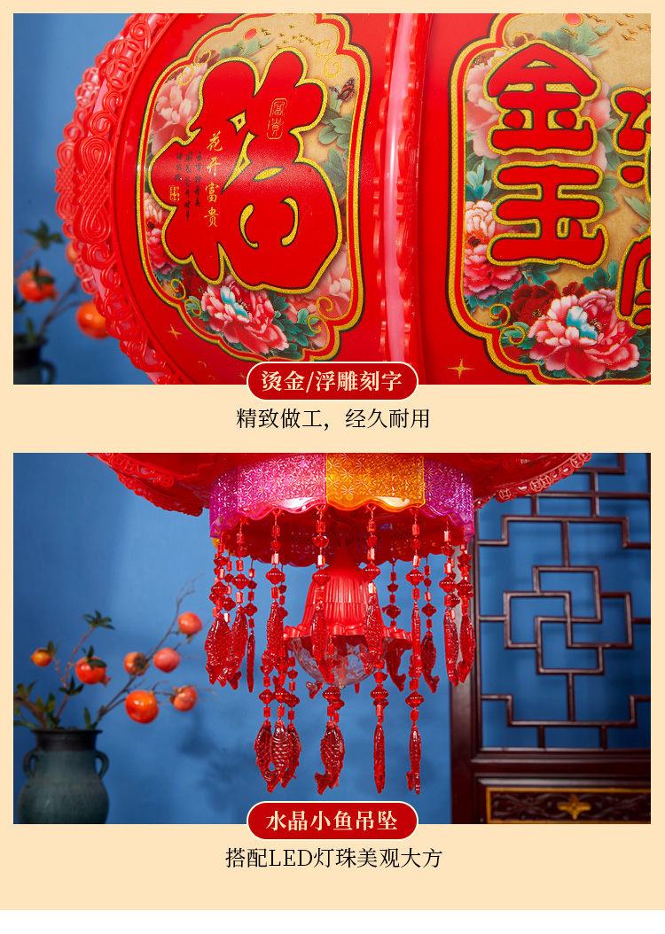 2025新款led电动七彩旋转走马灯笼春节大门口小阳台灯笼挂饰一对