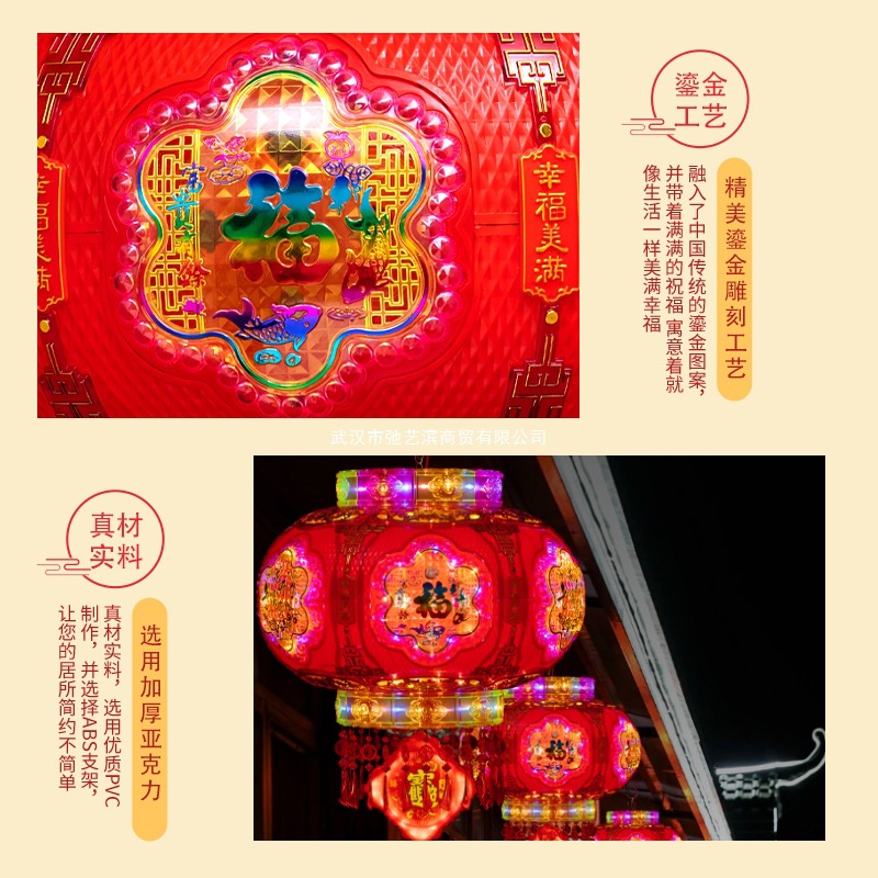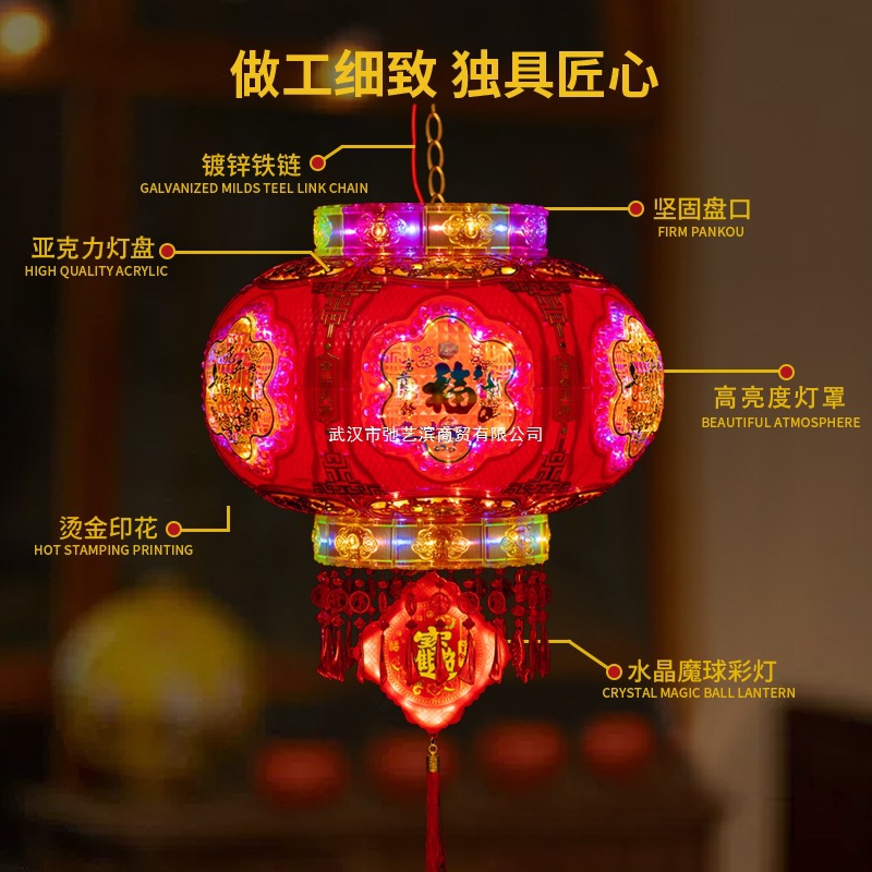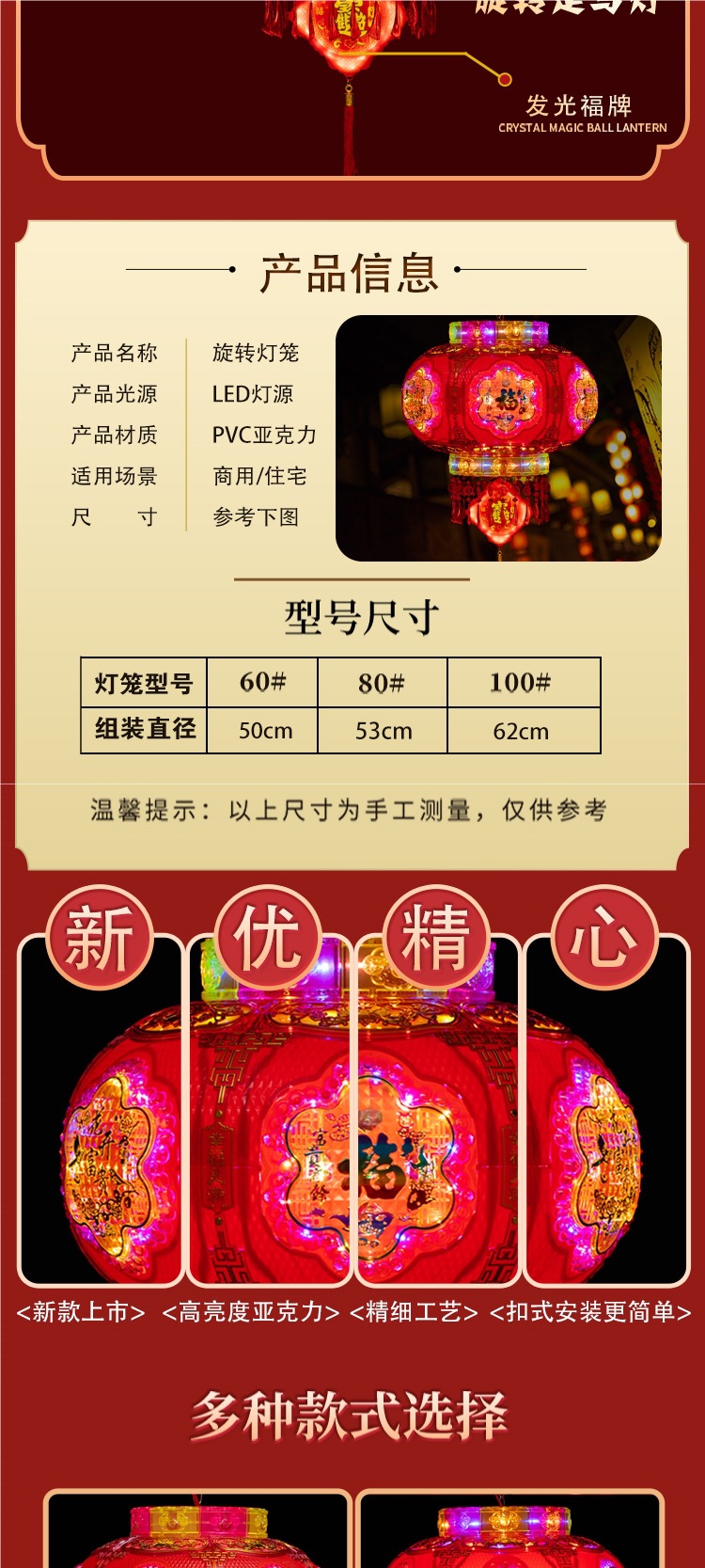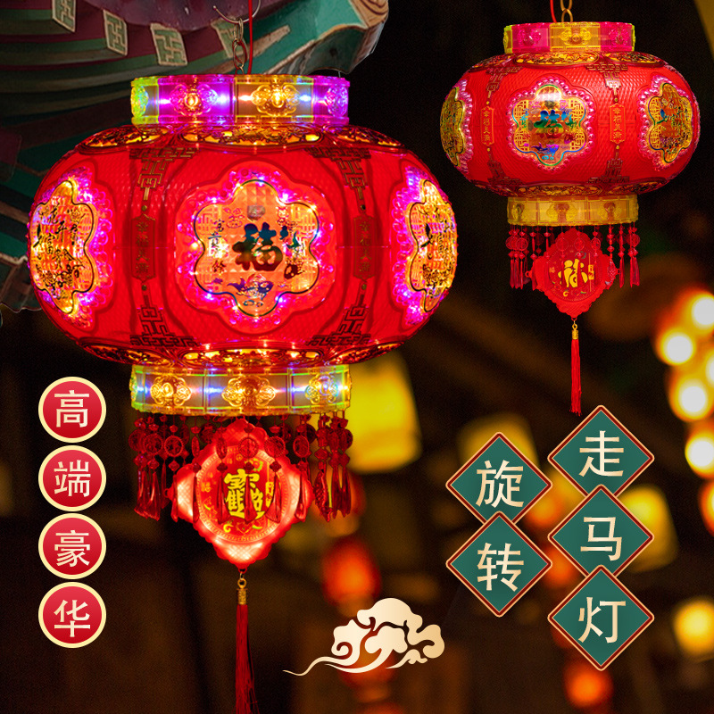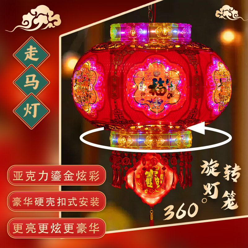 2026新款旋转灯笼一对硬壳七彩led走马灯阳台大门口春节新年装饰