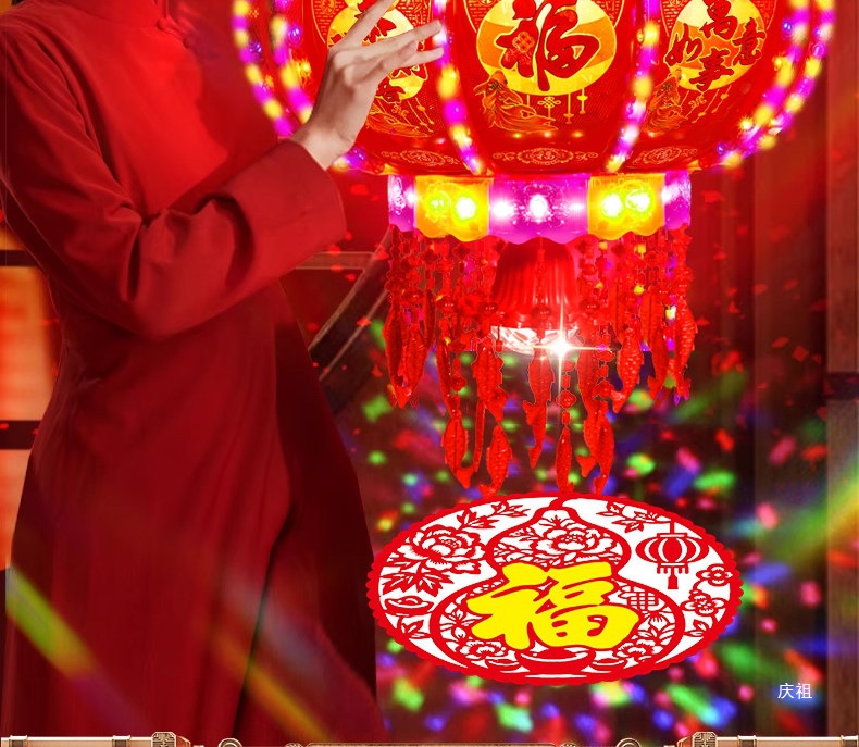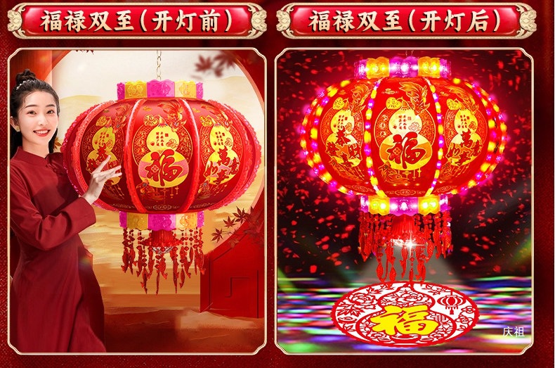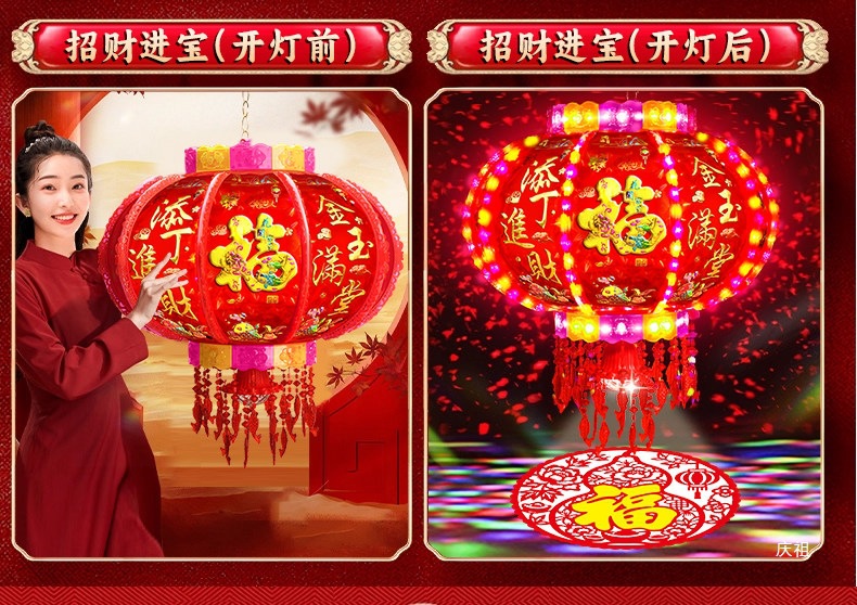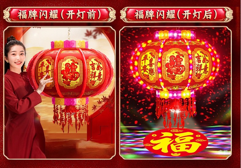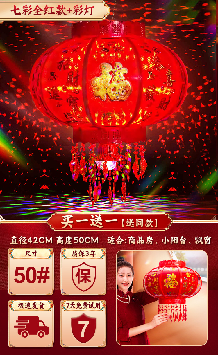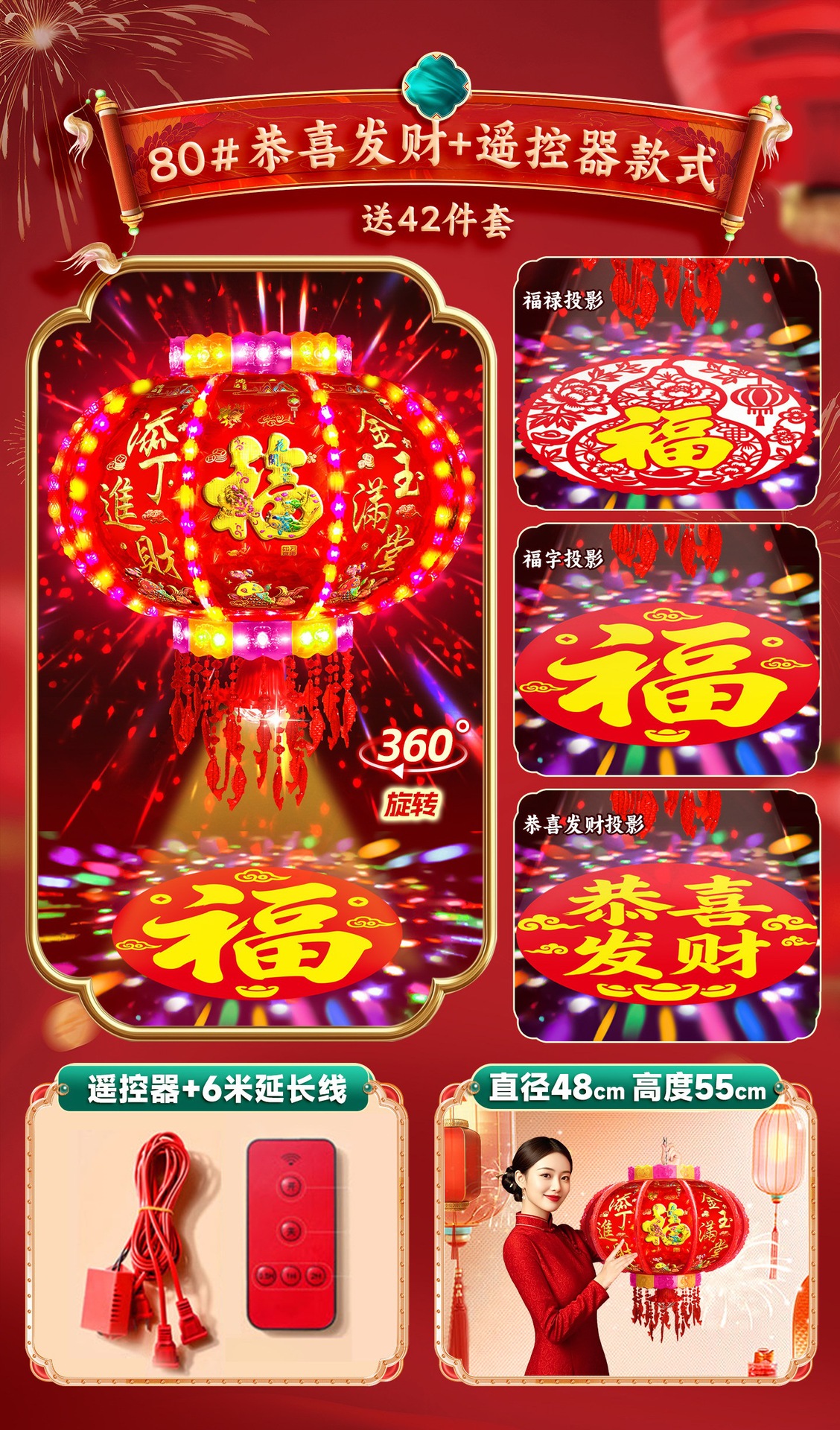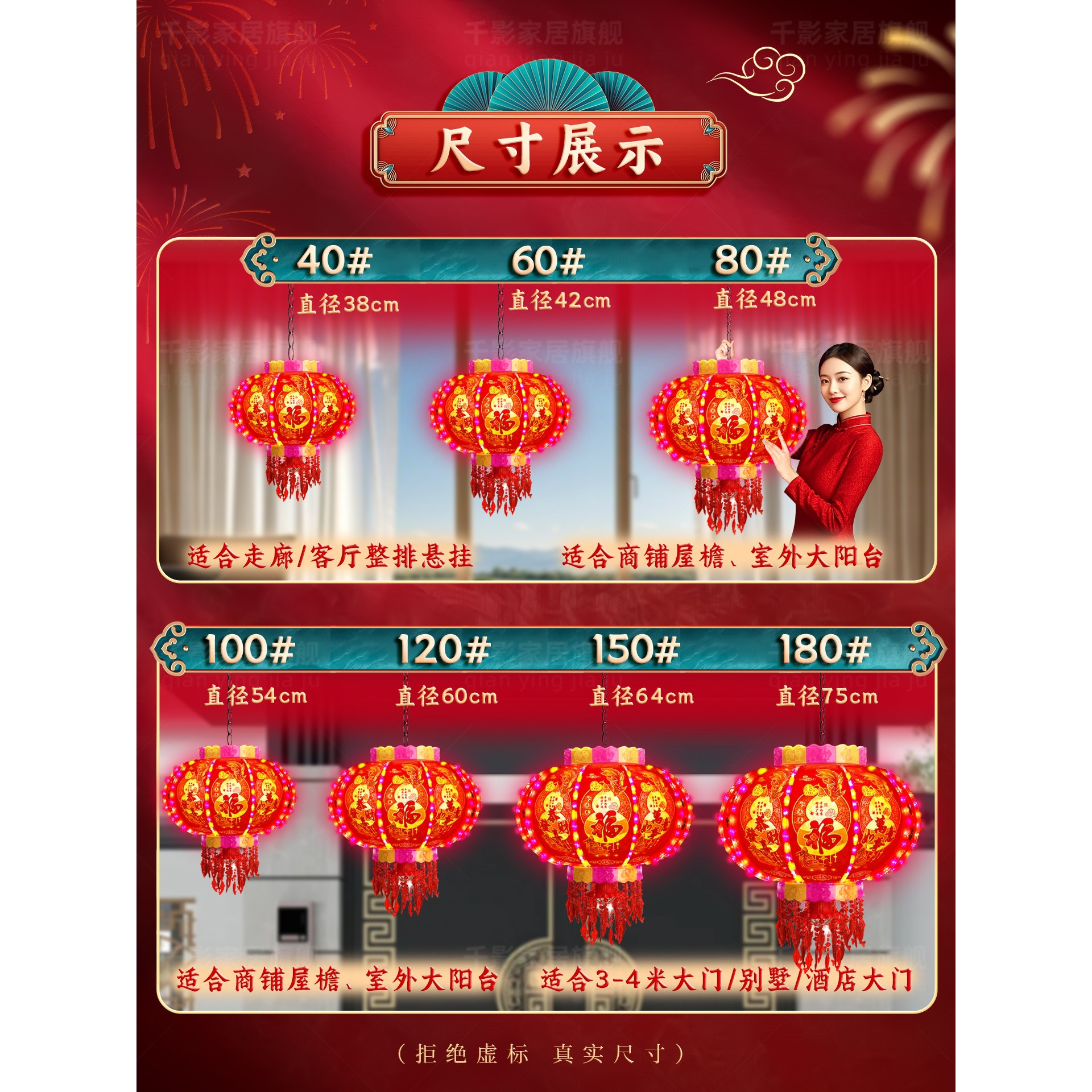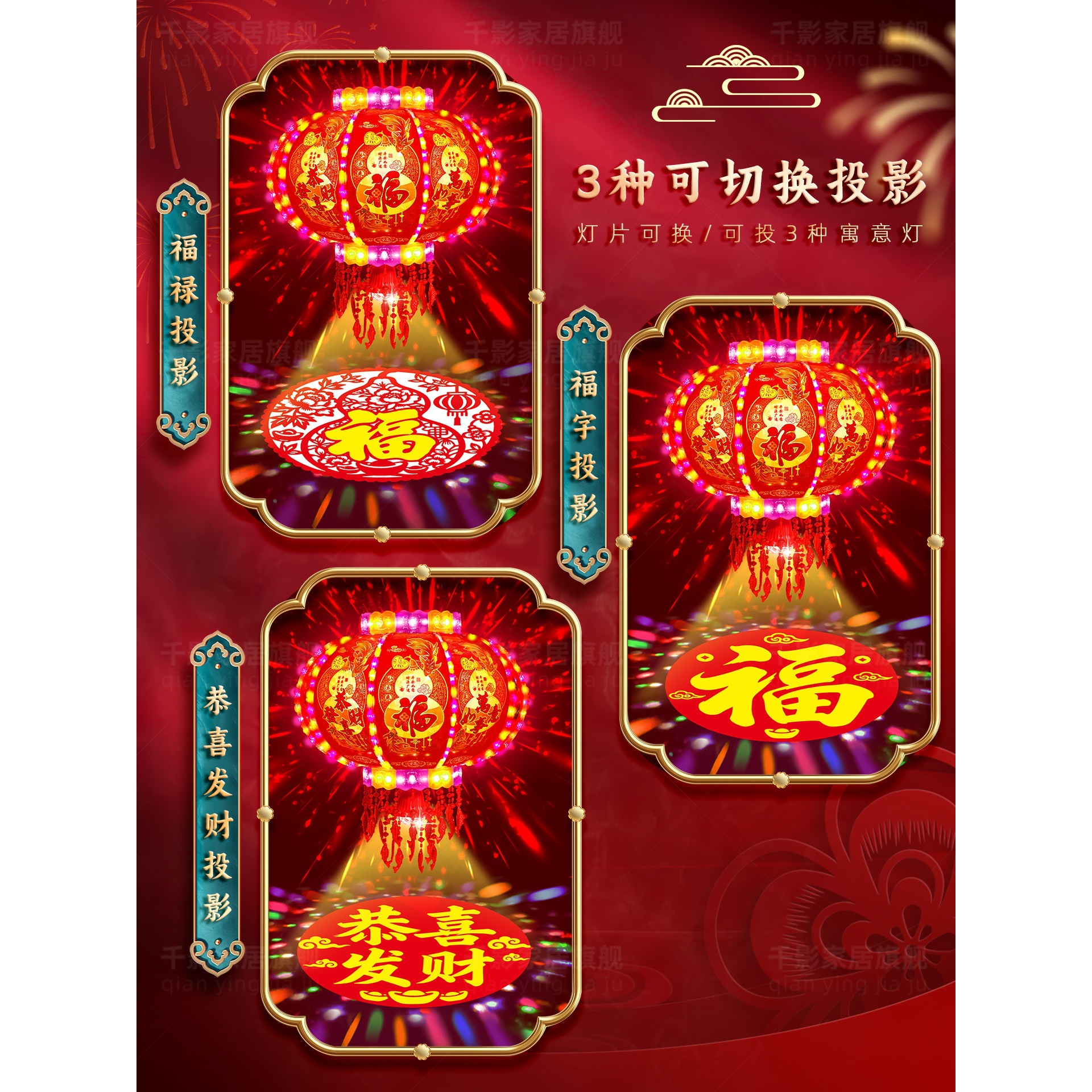 2026年新款旋转灯笼大门口一对彩灯春节七彩福字走马灯阳台2025