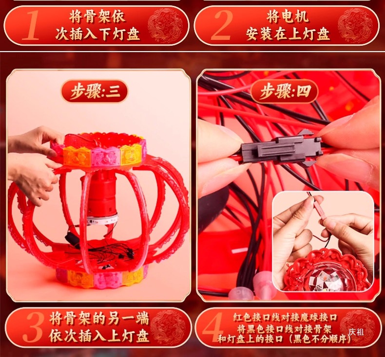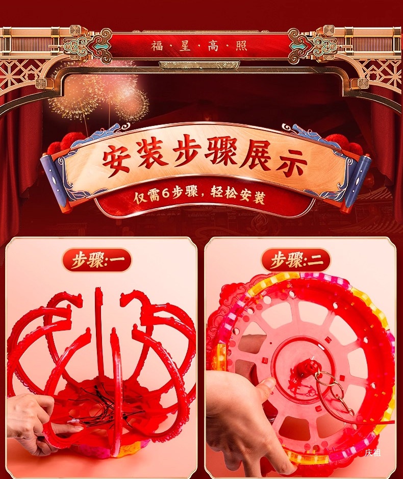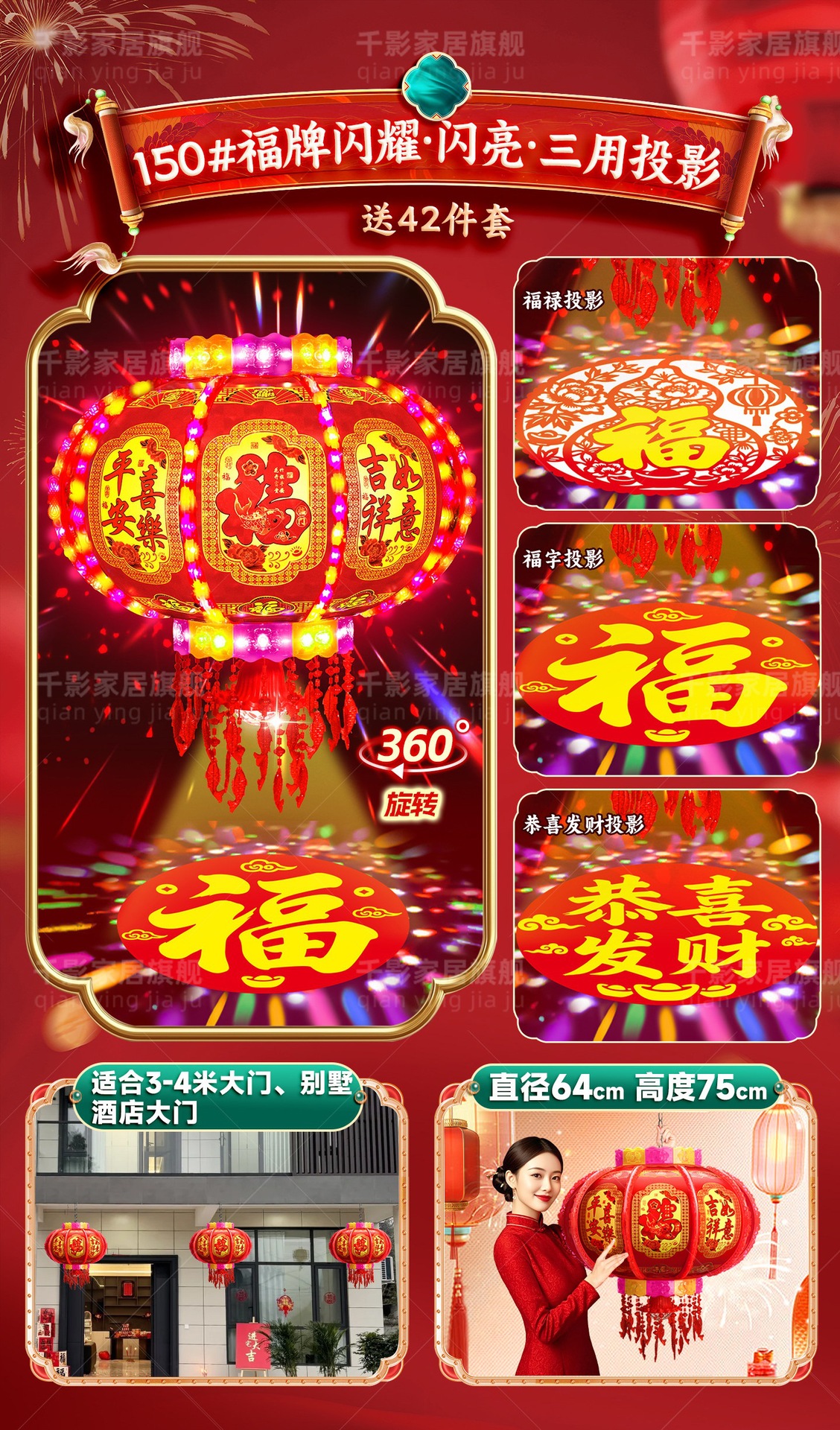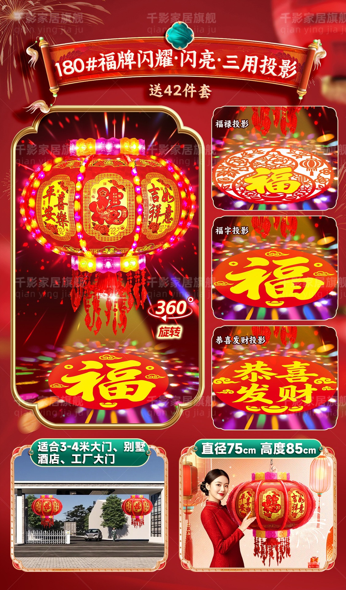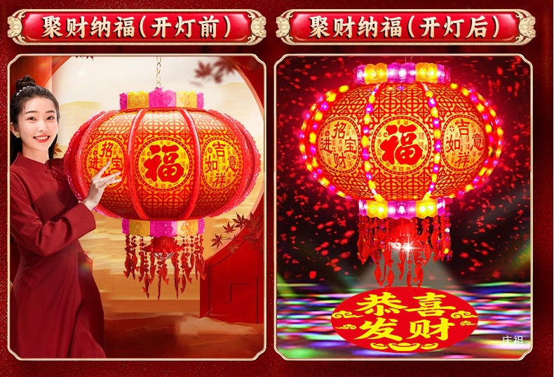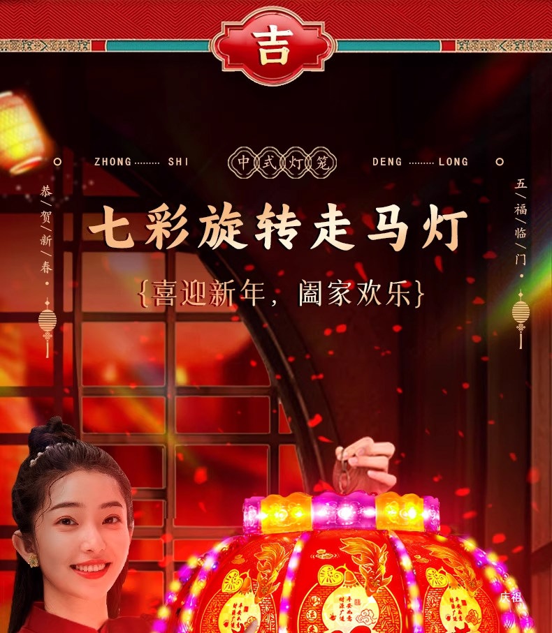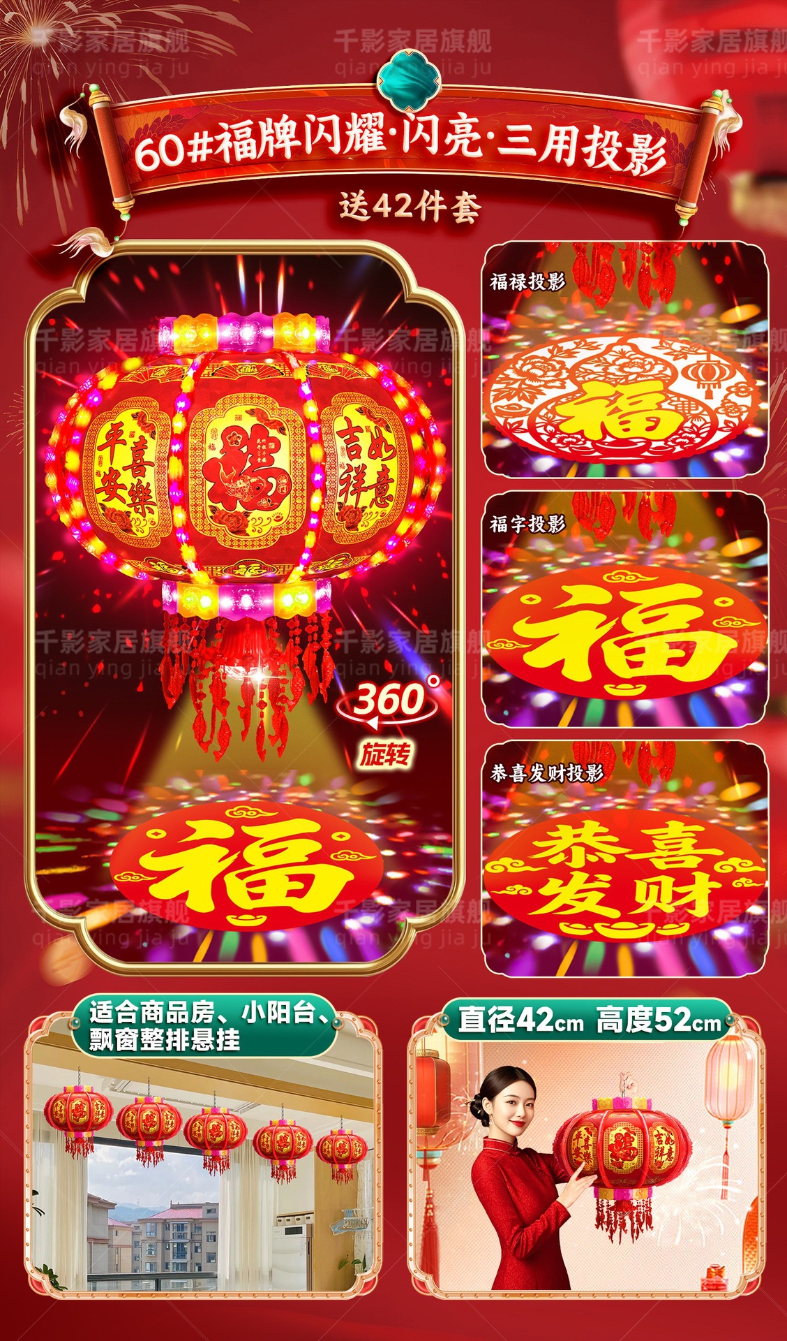 2026年新款旋转灯笼大门口一对彩灯春节七彩福字走马灯阳台2025