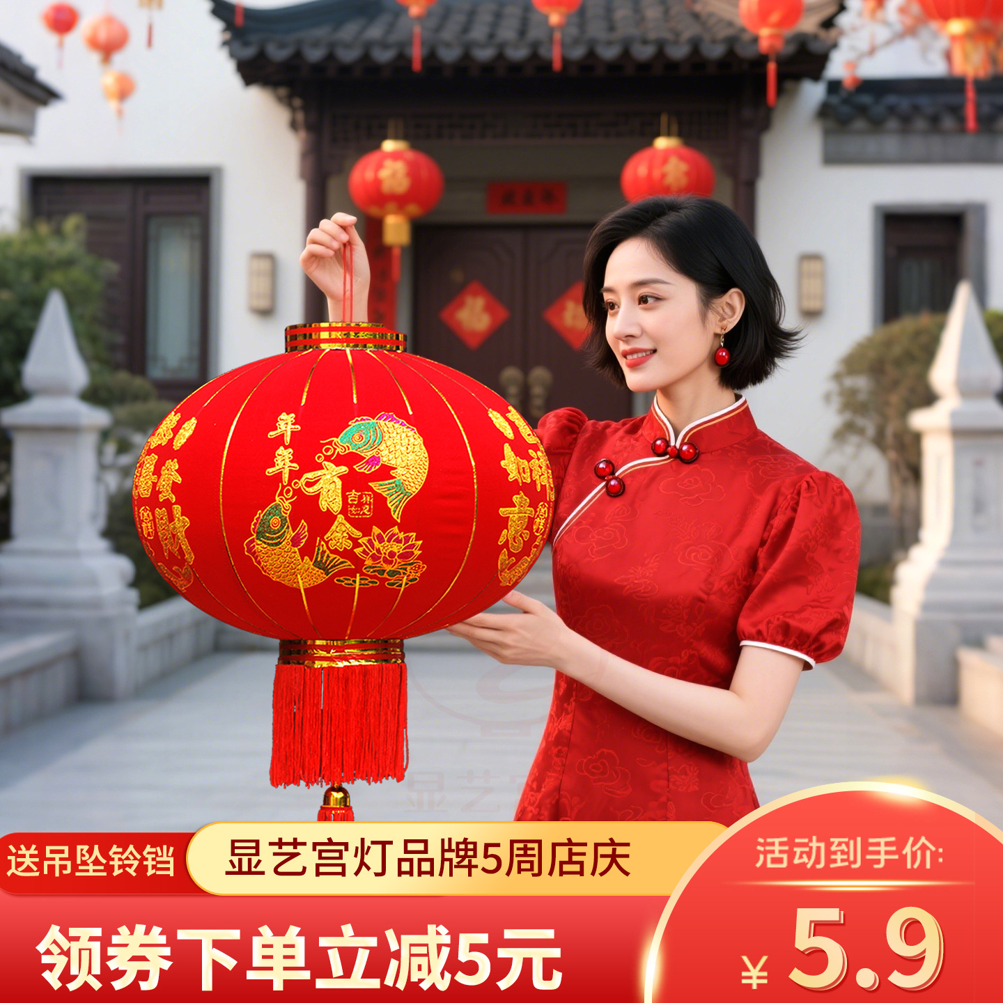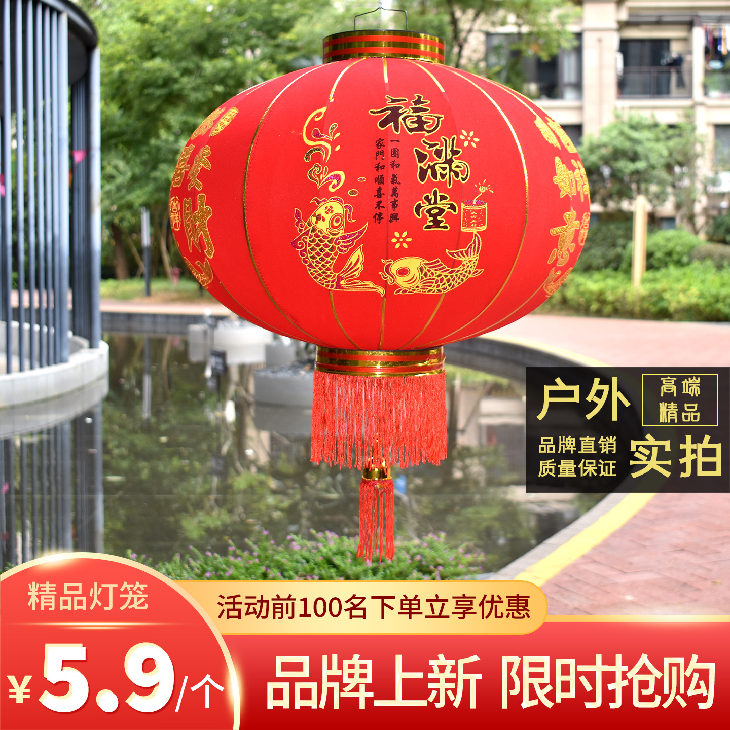 大红植绒灯笼大门口挂件广告灯笼户外防水春节新年灯笼过年装饰品