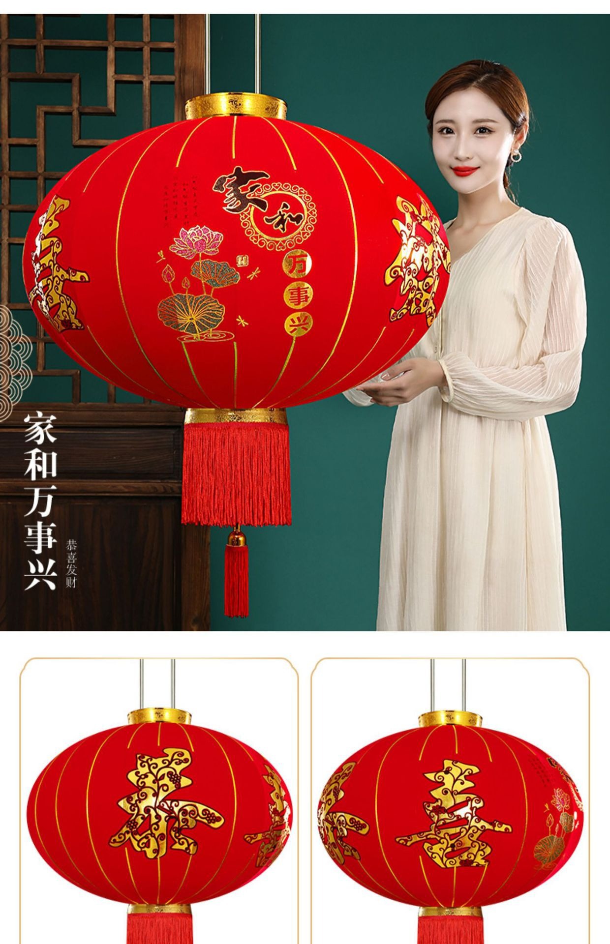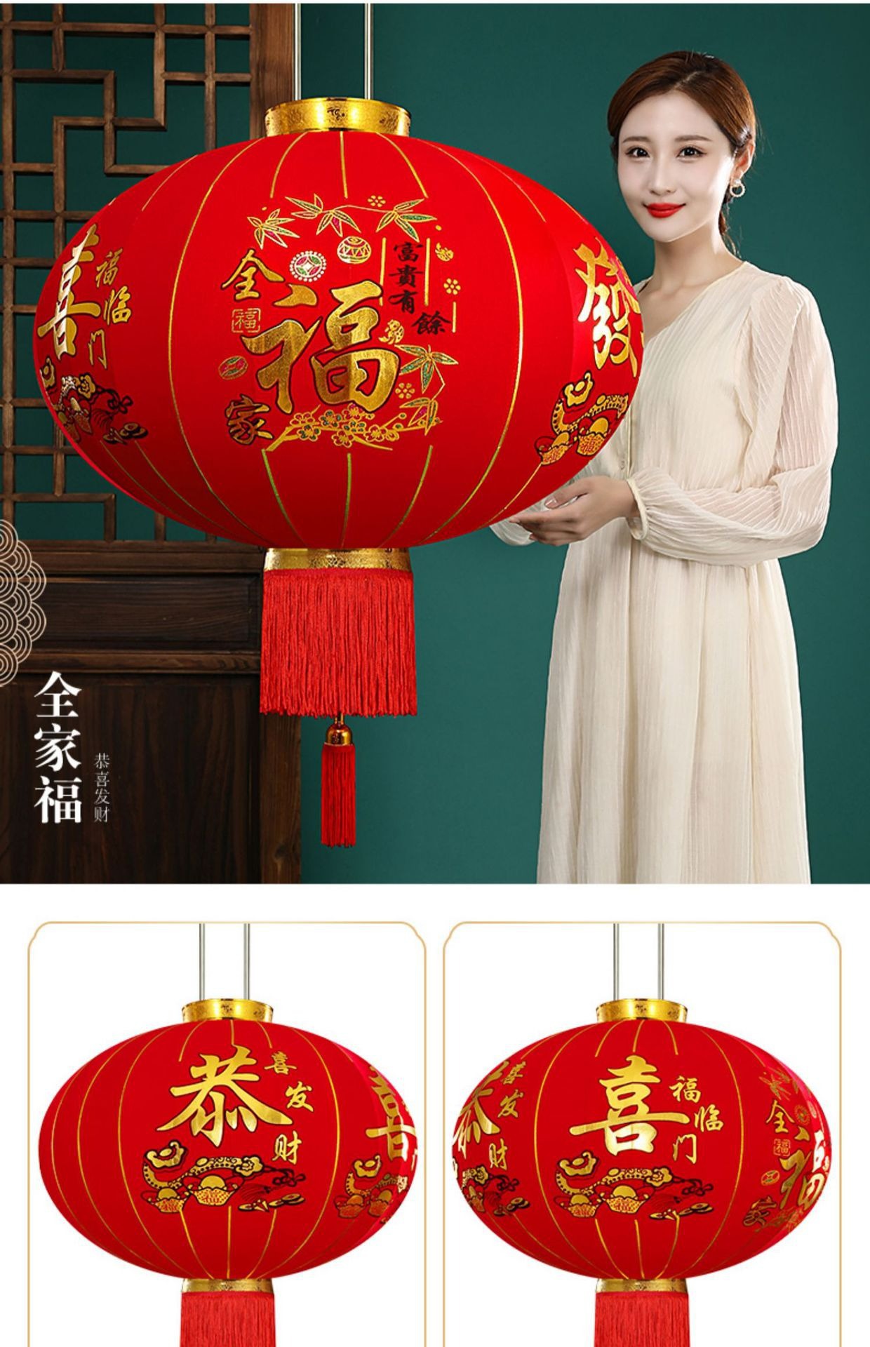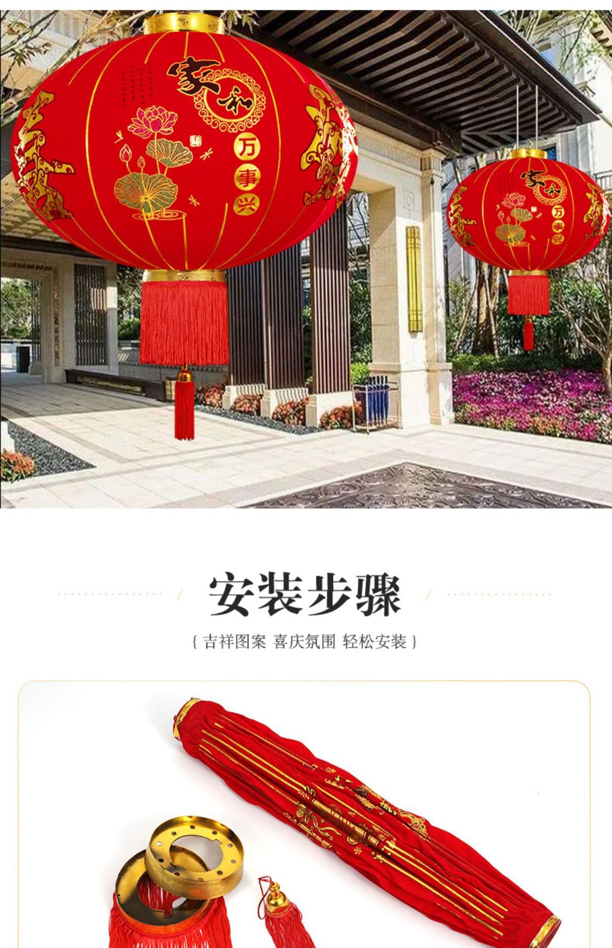 春节植绒批发户外阳台过年2025年新款灯笼大红大门口一对新年喜庆