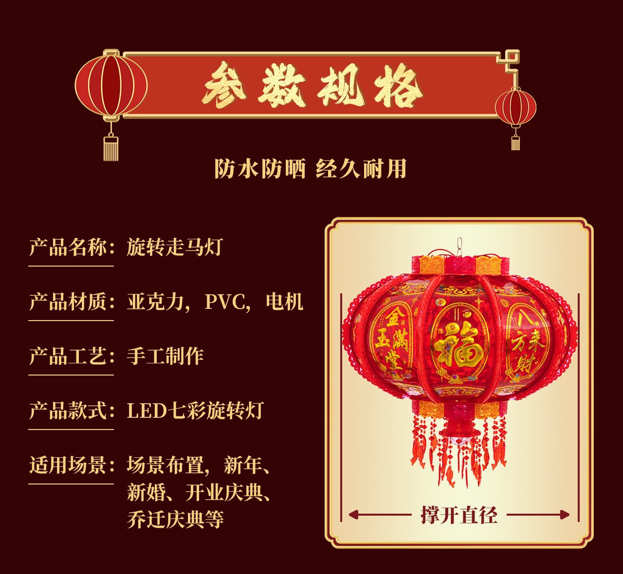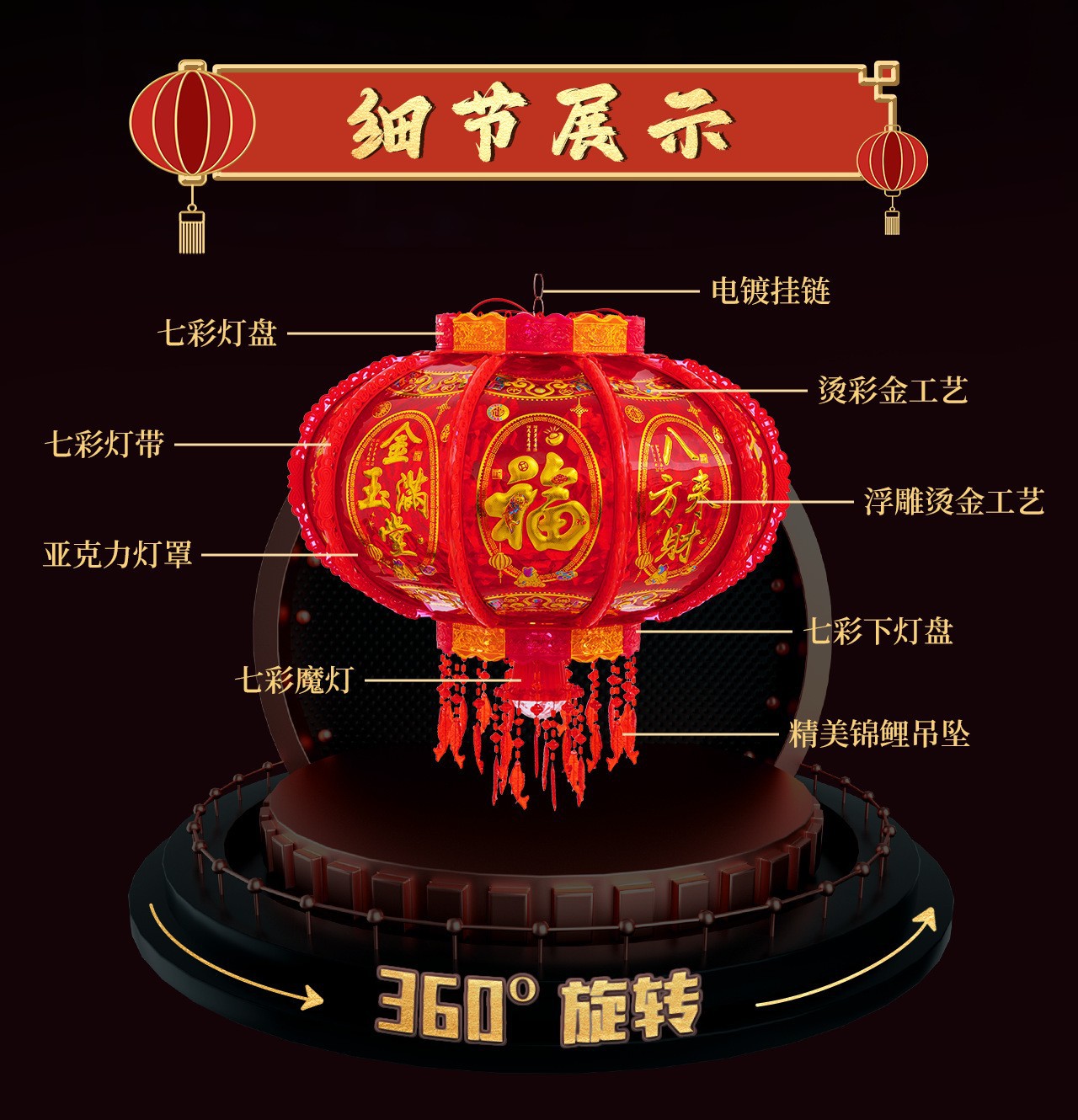 投影福字七彩旋转走马灯八方来财灯乔迁春节福字魔球灯笼阳台装饰