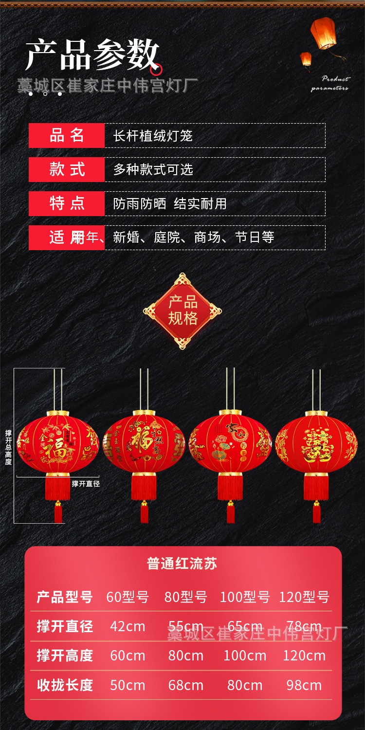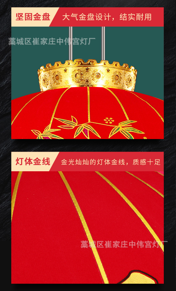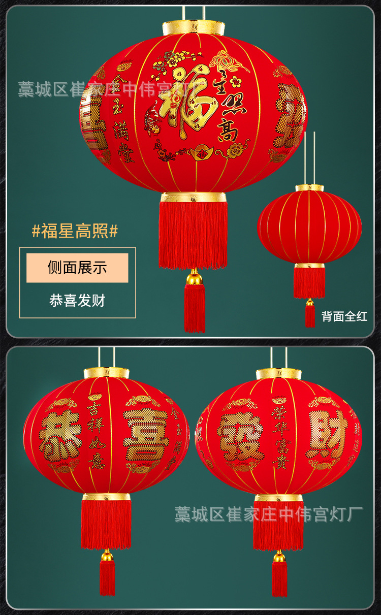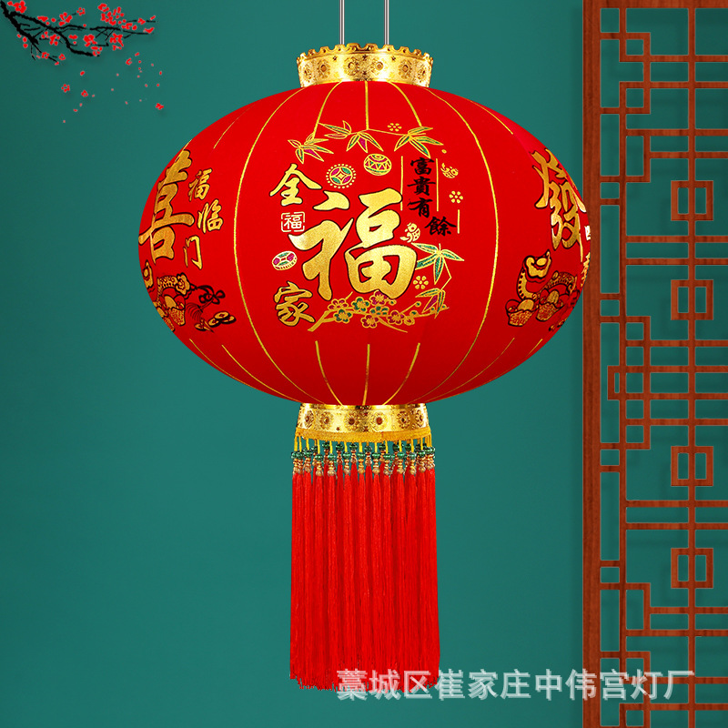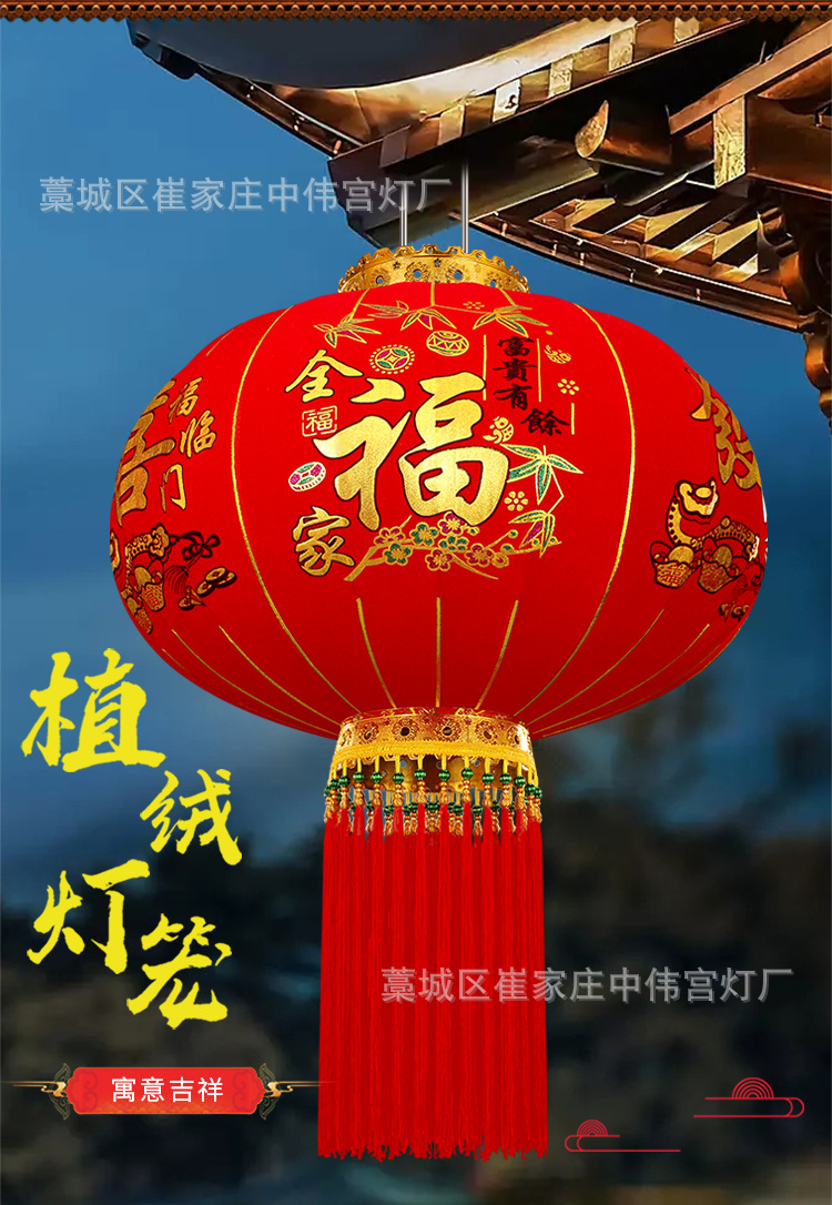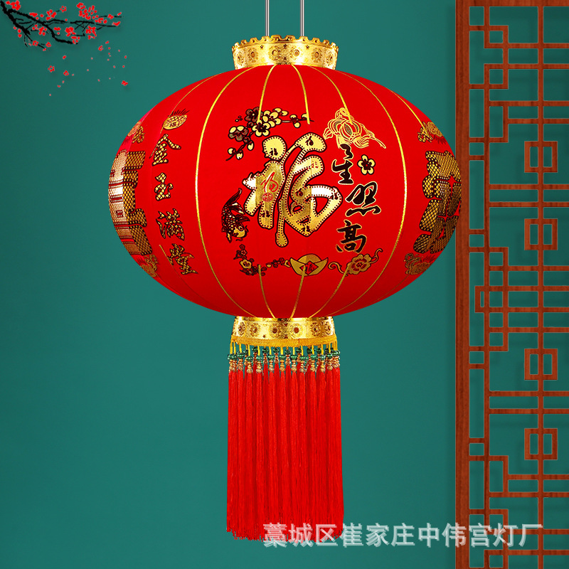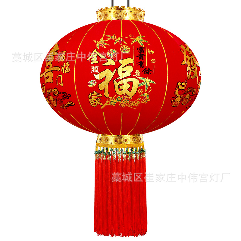 【长杆灯笼批发】加厚绒布烫金发泡新年春节装饰高档植绒大红灯笼
