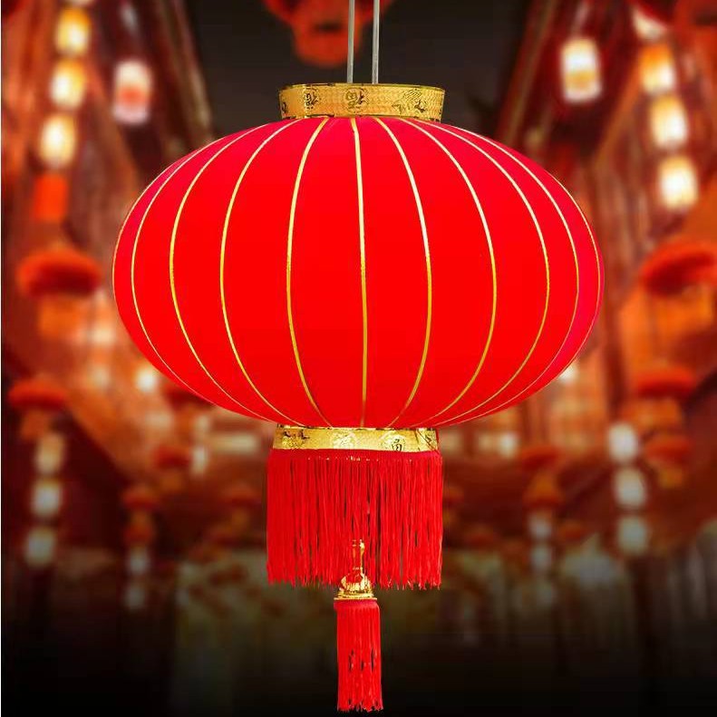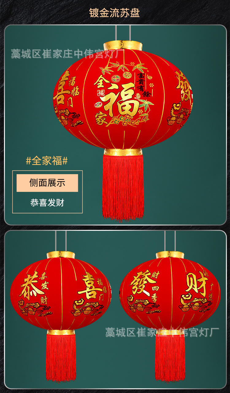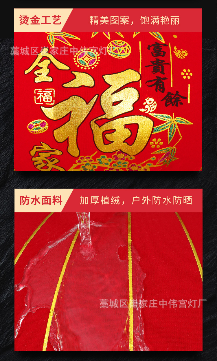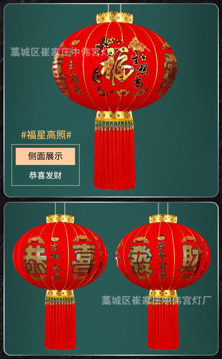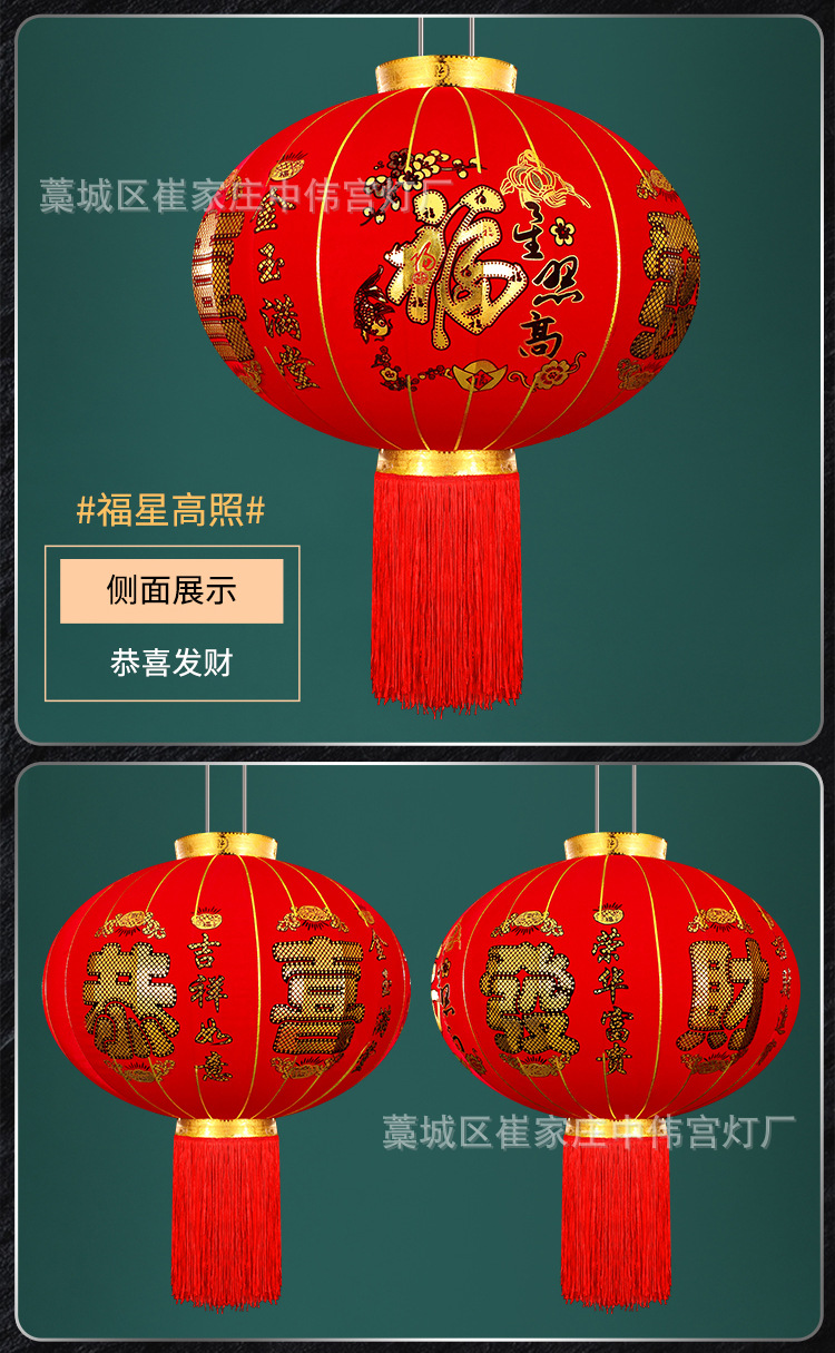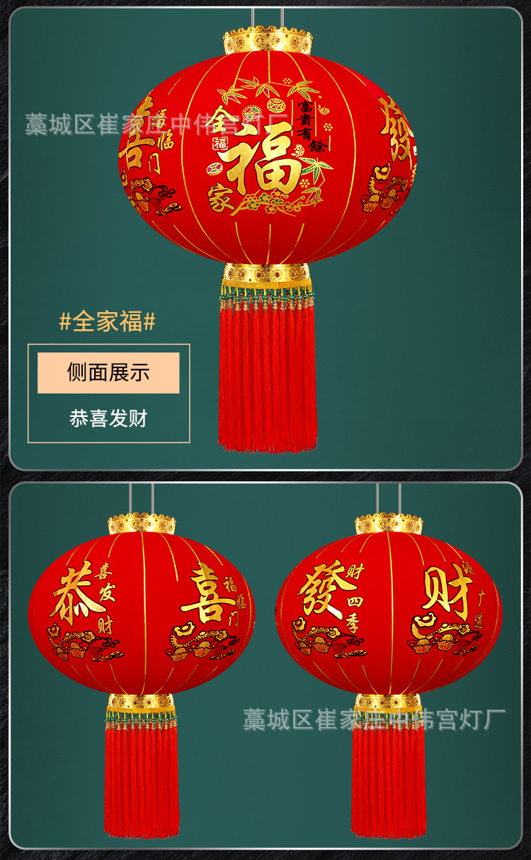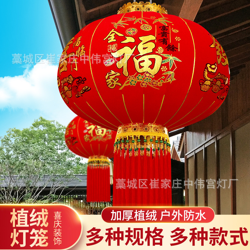 【长杆灯笼批发】加厚绒布烫金发泡新年春节装饰高档植绒大红灯笼