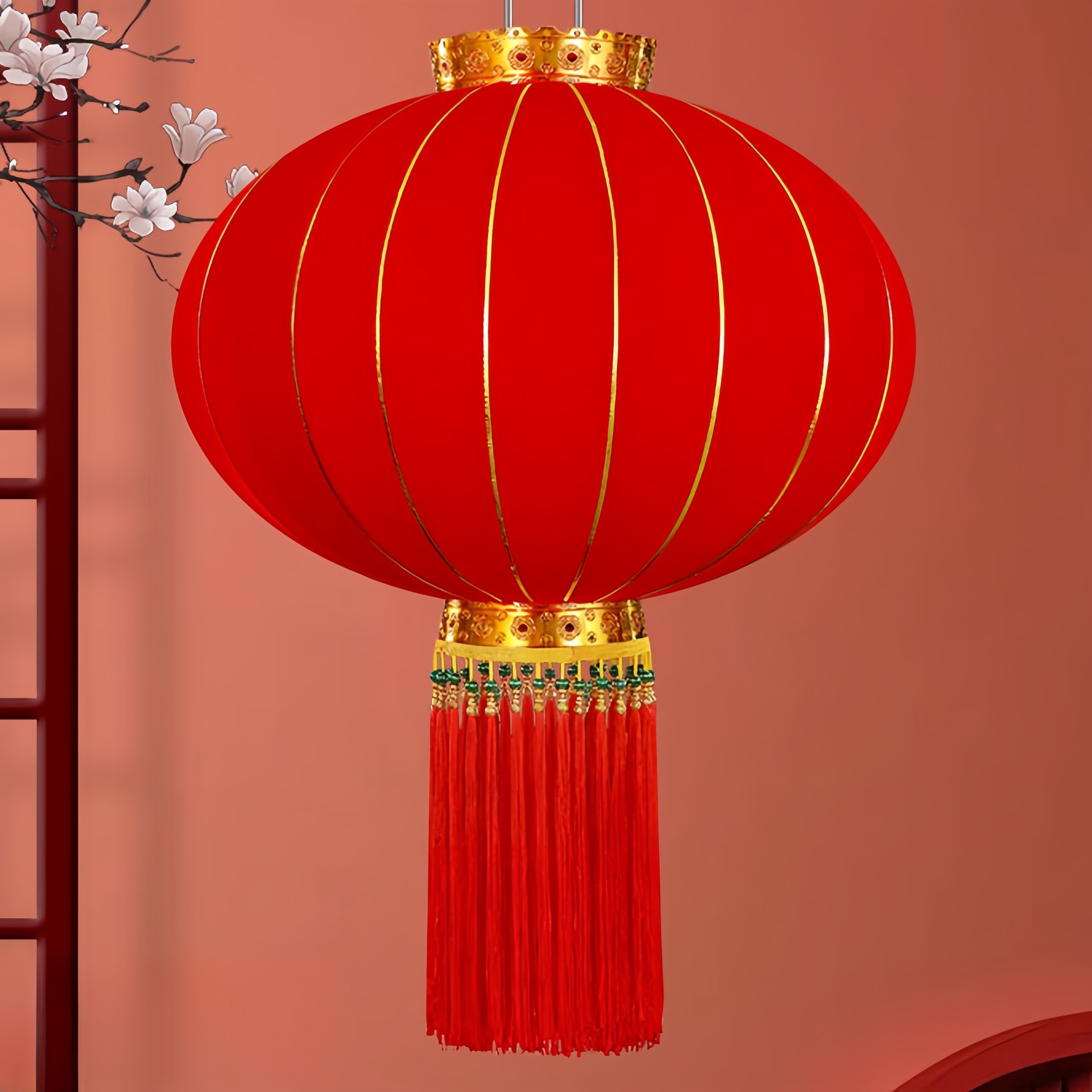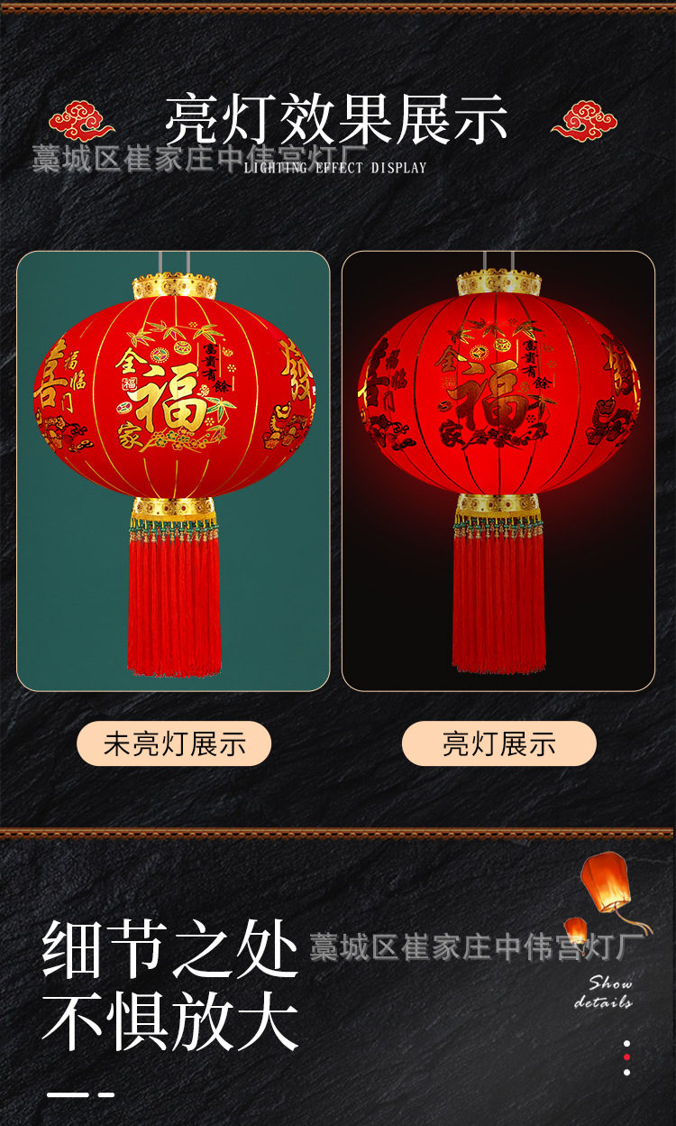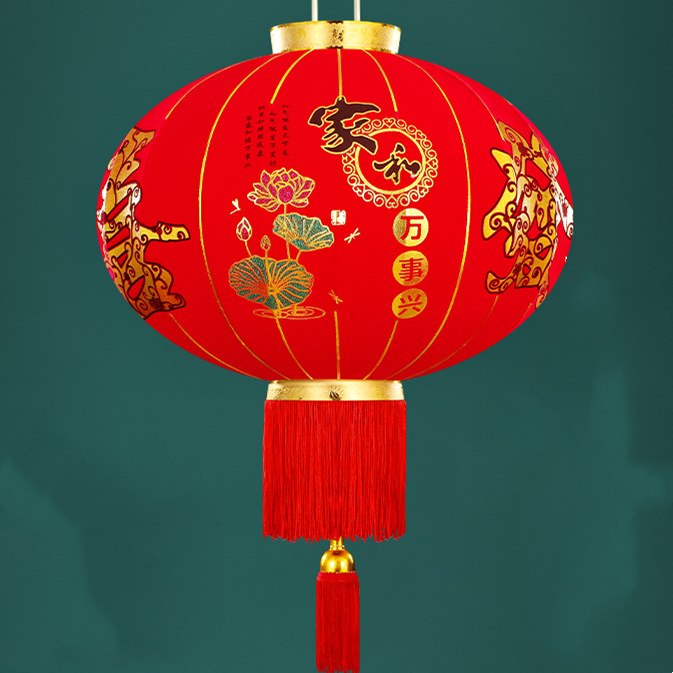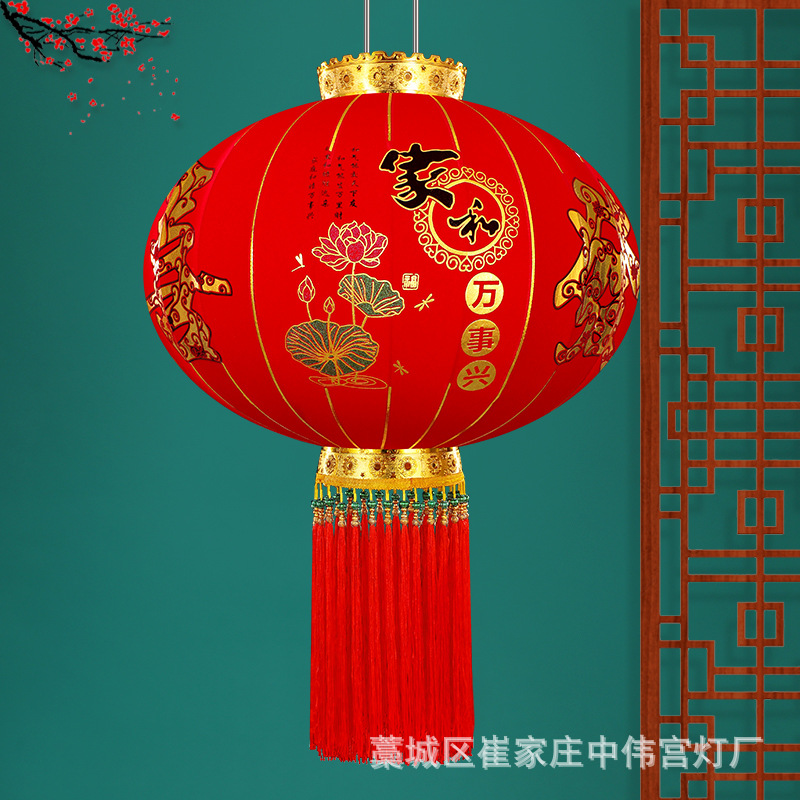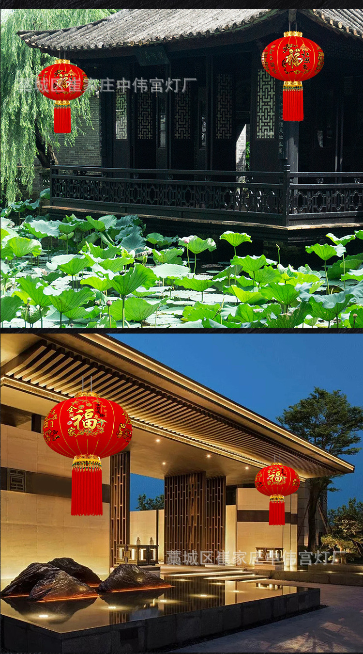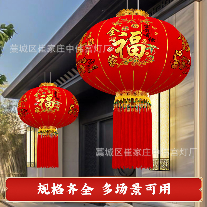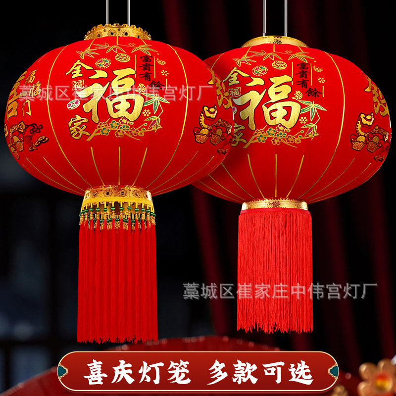 【长杆灯笼批发】加厚绒布烫金发泡新年春节装饰高档植绒大红灯笼