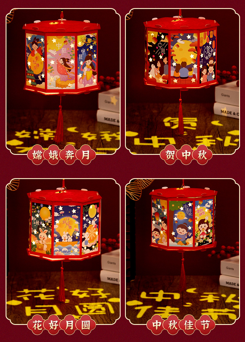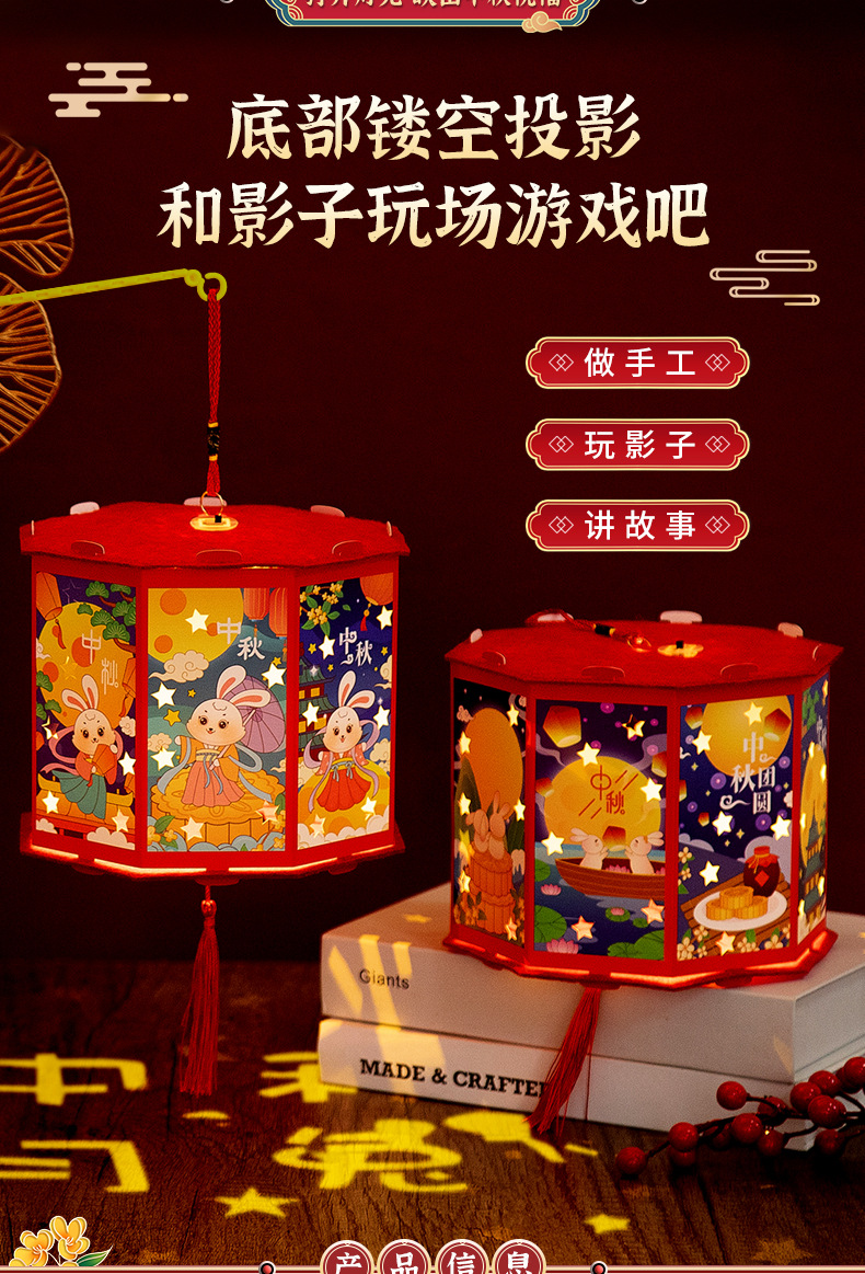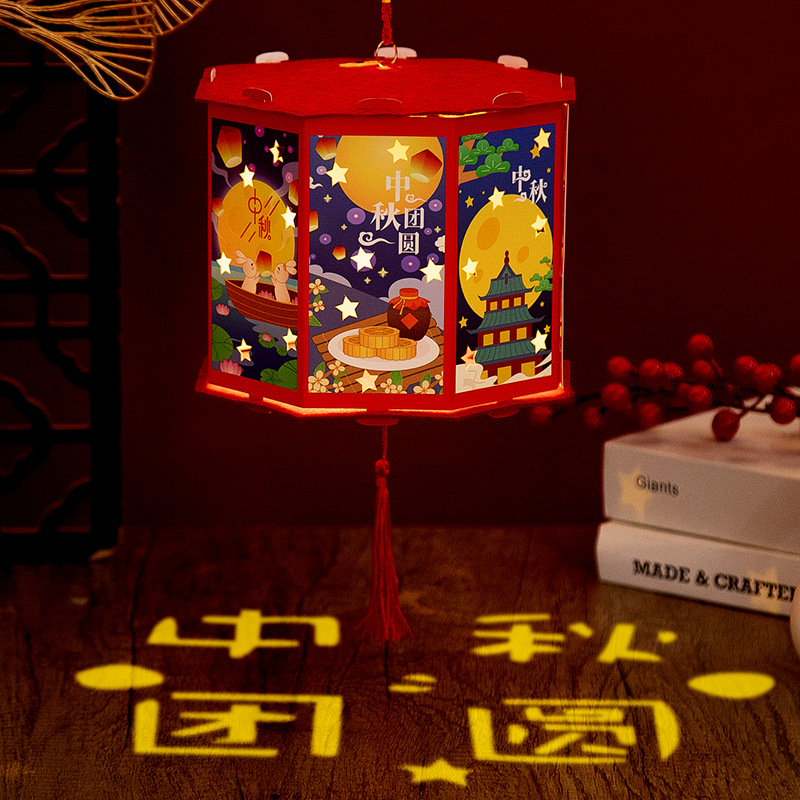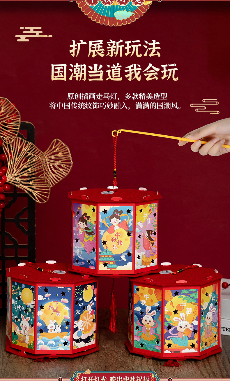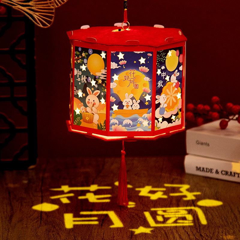 新年灯笼手工diy儿童手提发光投影走马灯幼儿园亲子手工玩具益智