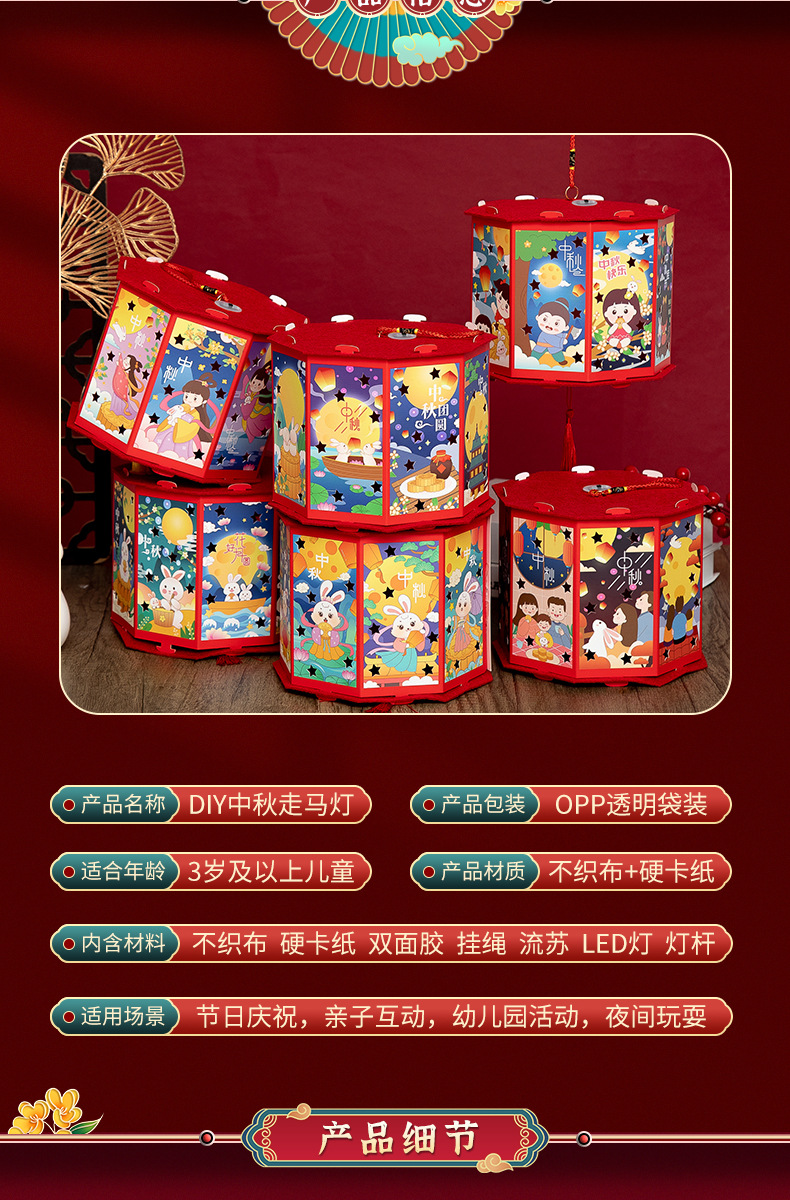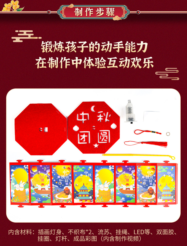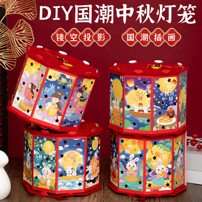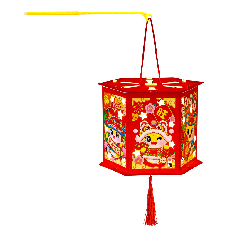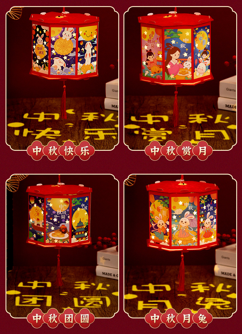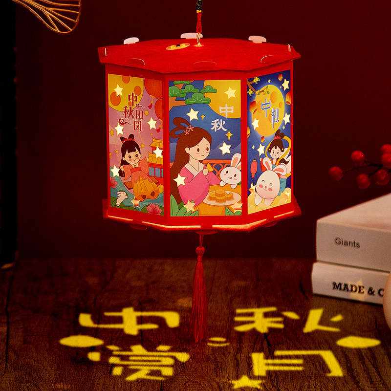 新年灯笼手工diy儿童手提发光投影走马灯幼儿园亲子手工玩具益智