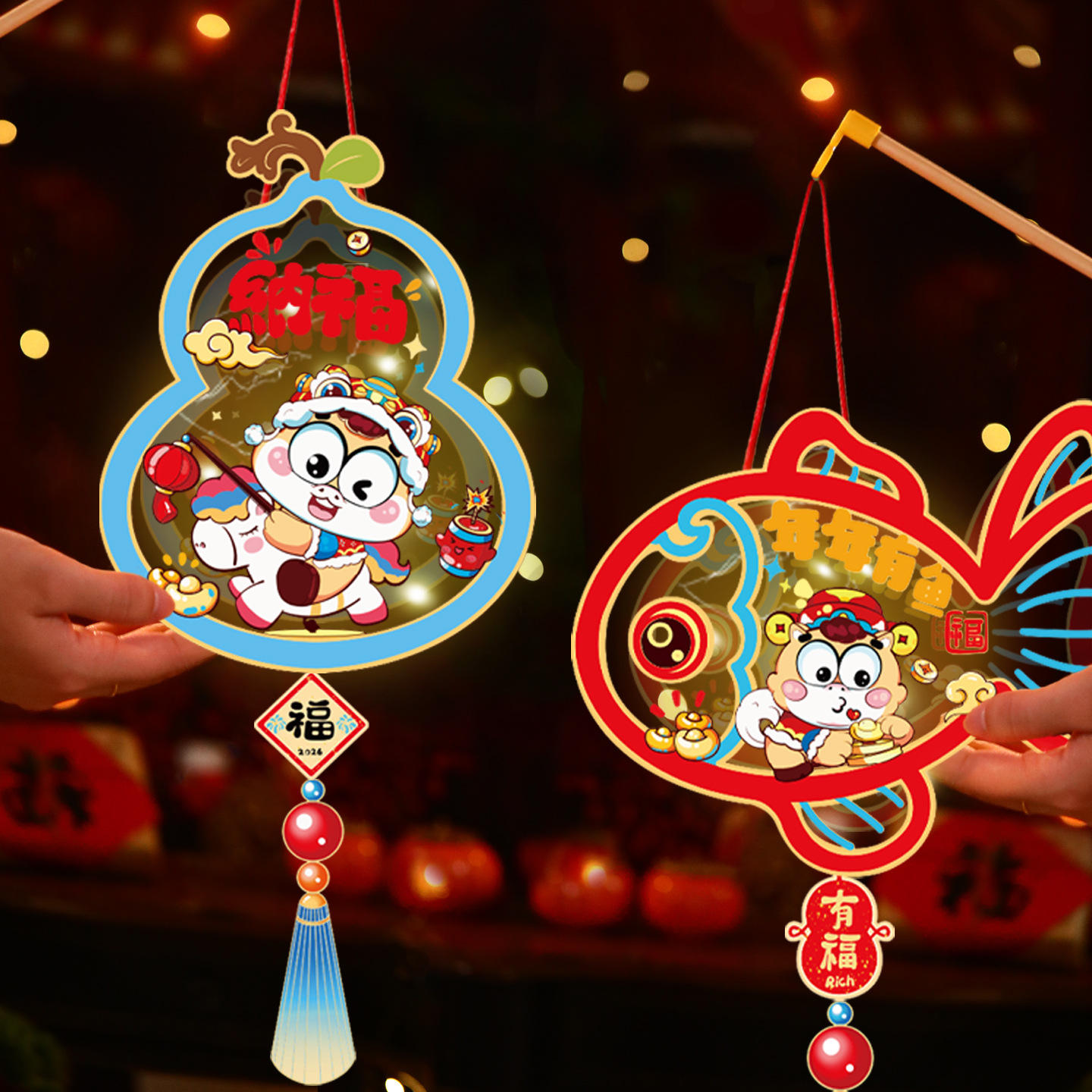 新年手提灯笼儿童手提花灯元宵新年发光diy灯笼新款透明发光灯笼