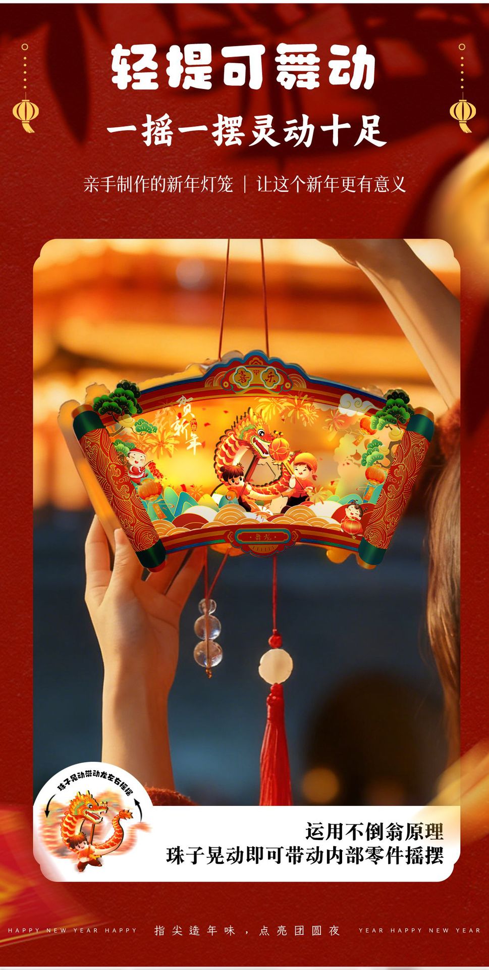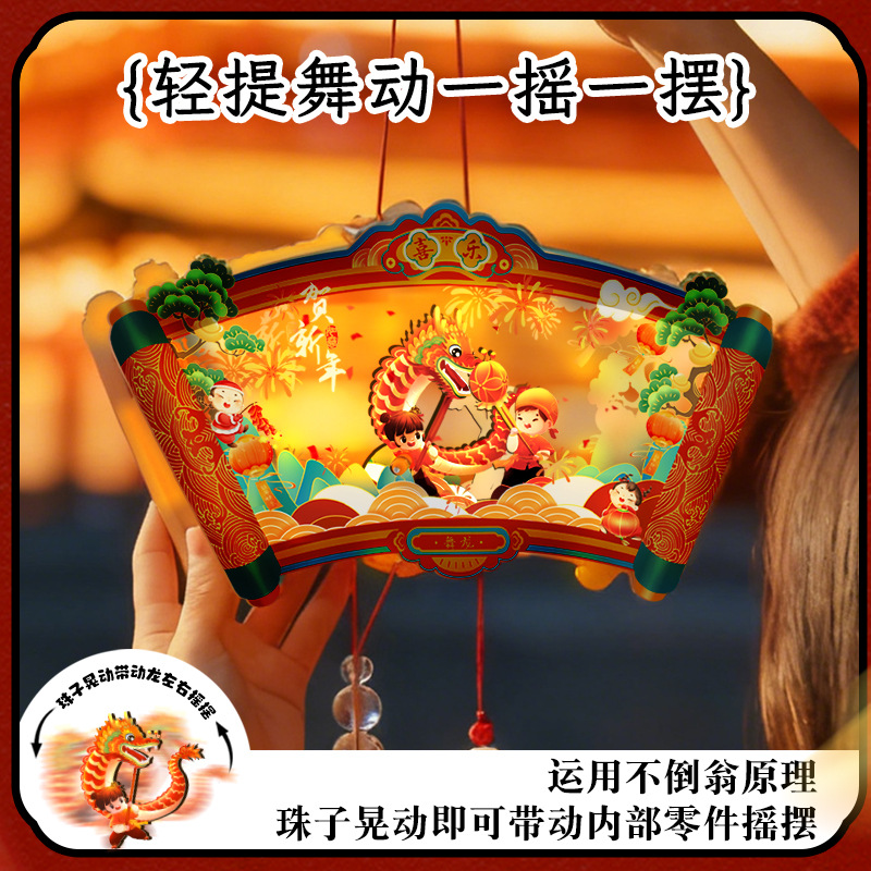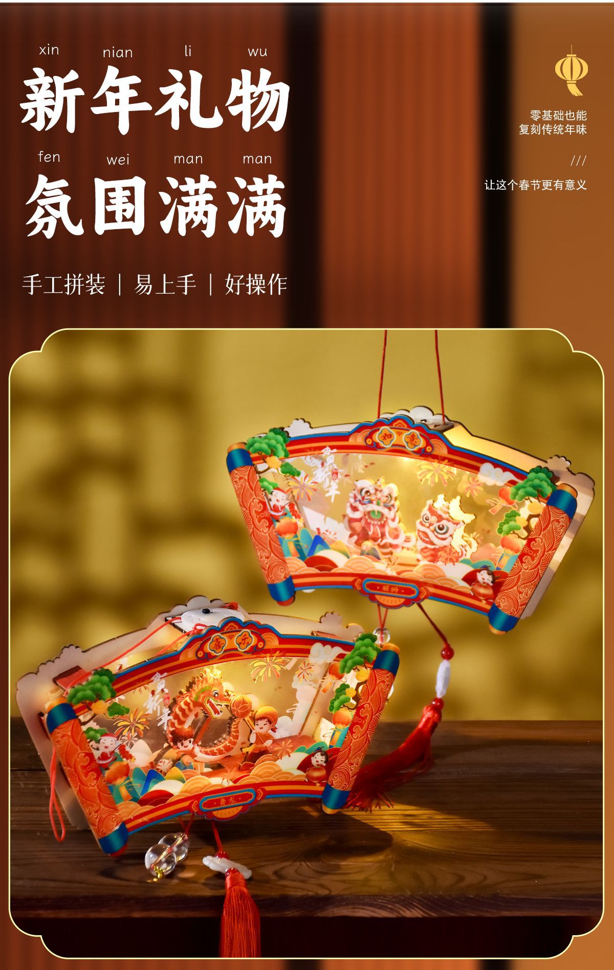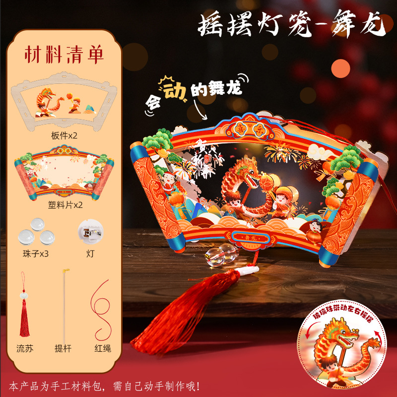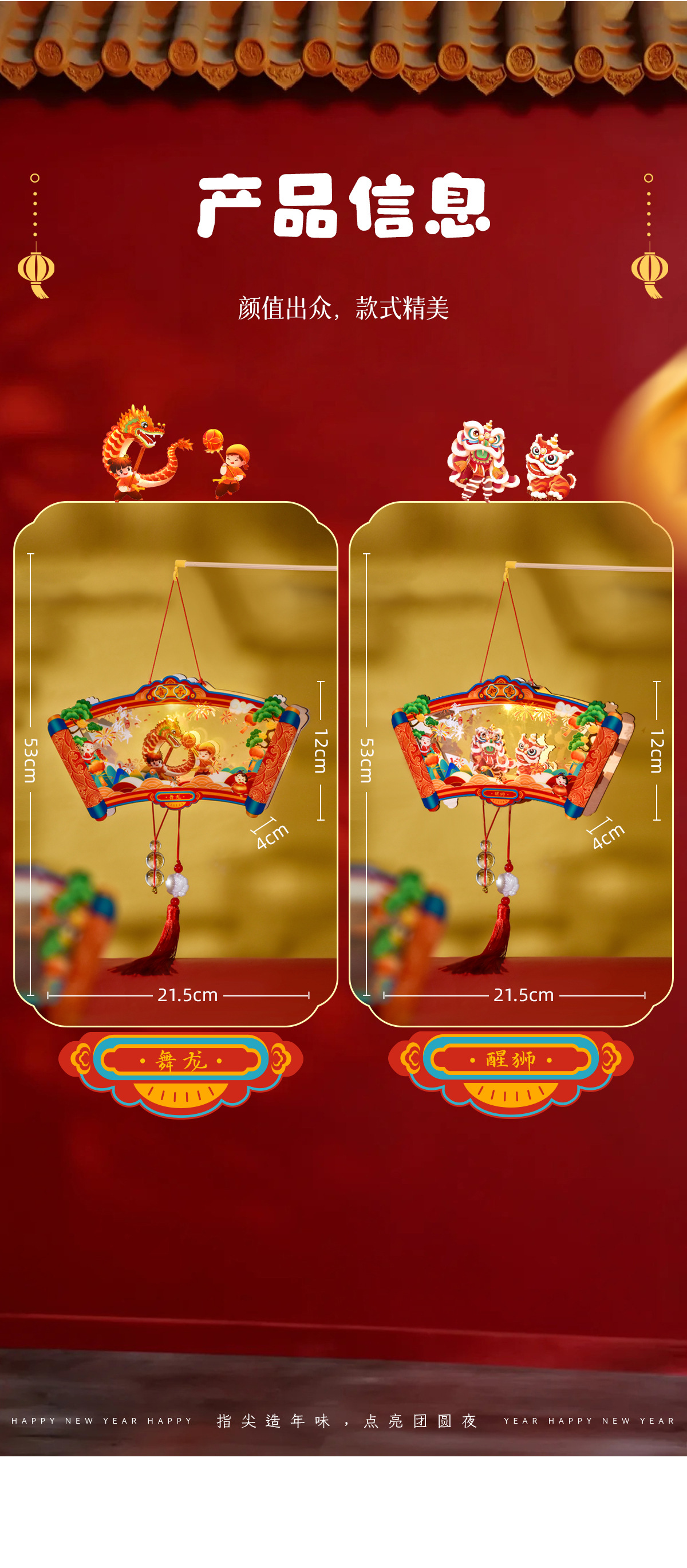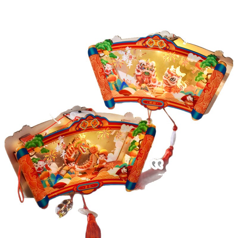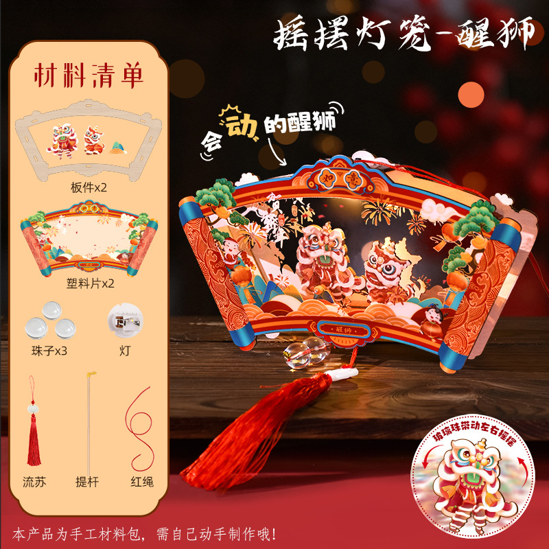 2026马年新年灯笼儿童手提发光国潮醒狮舞龙花灯diy手工材料包