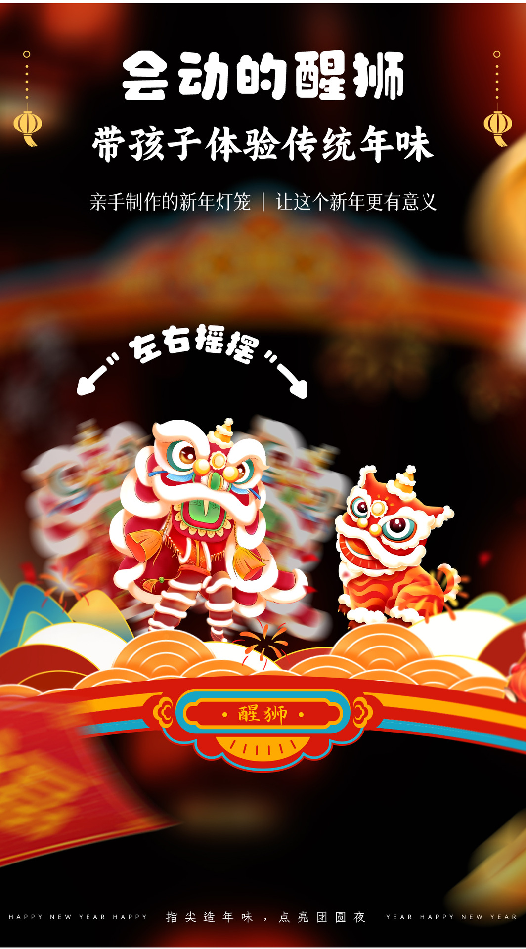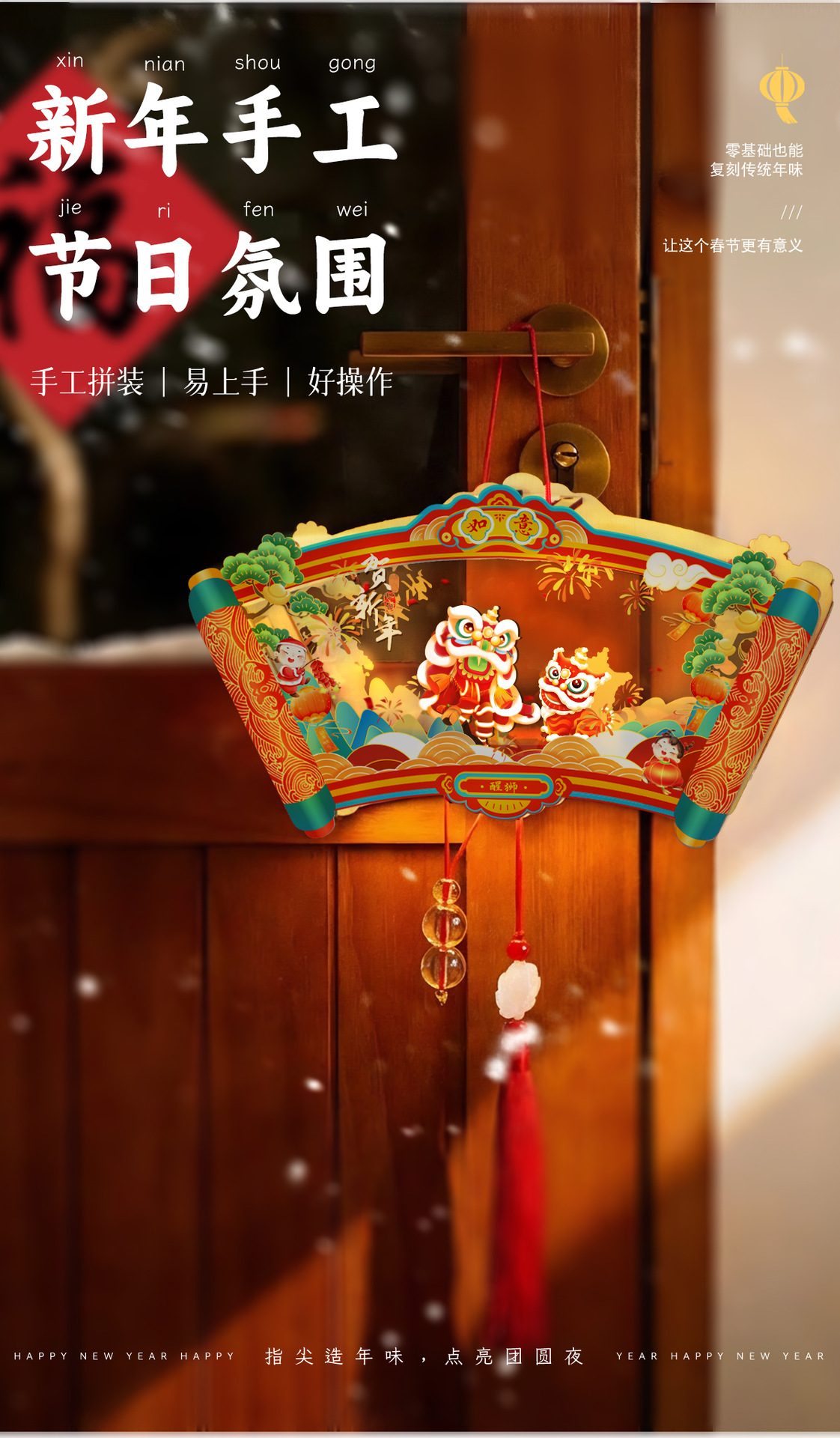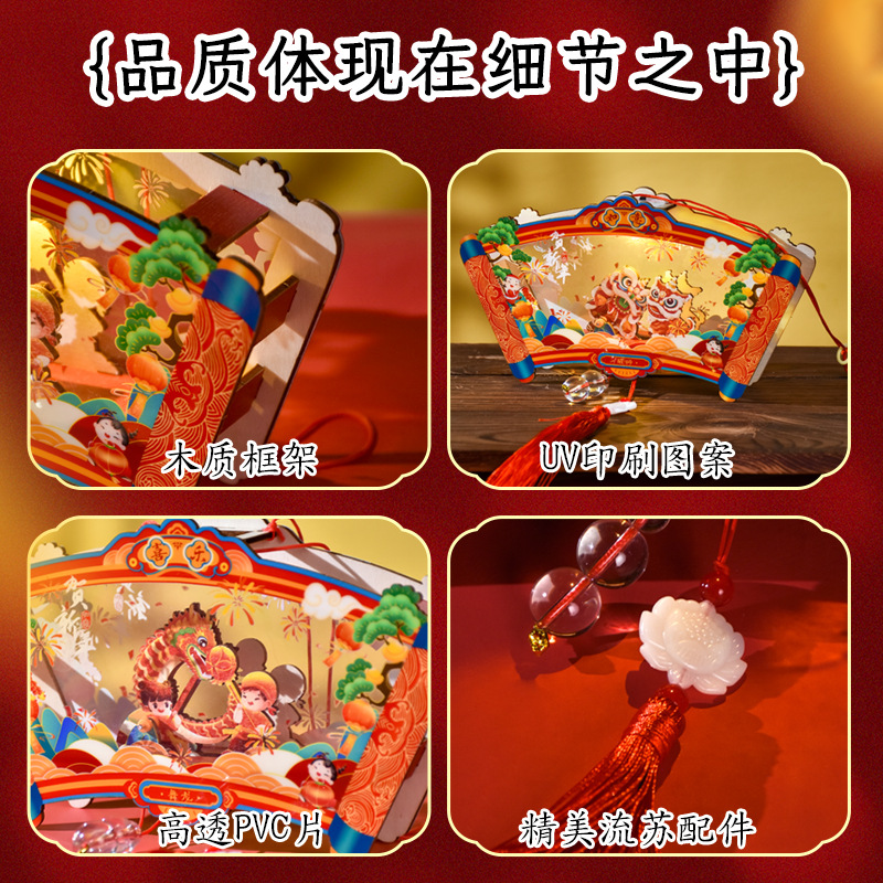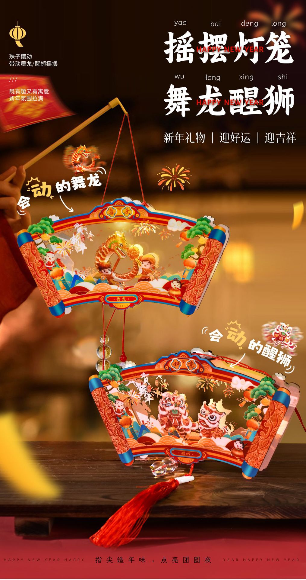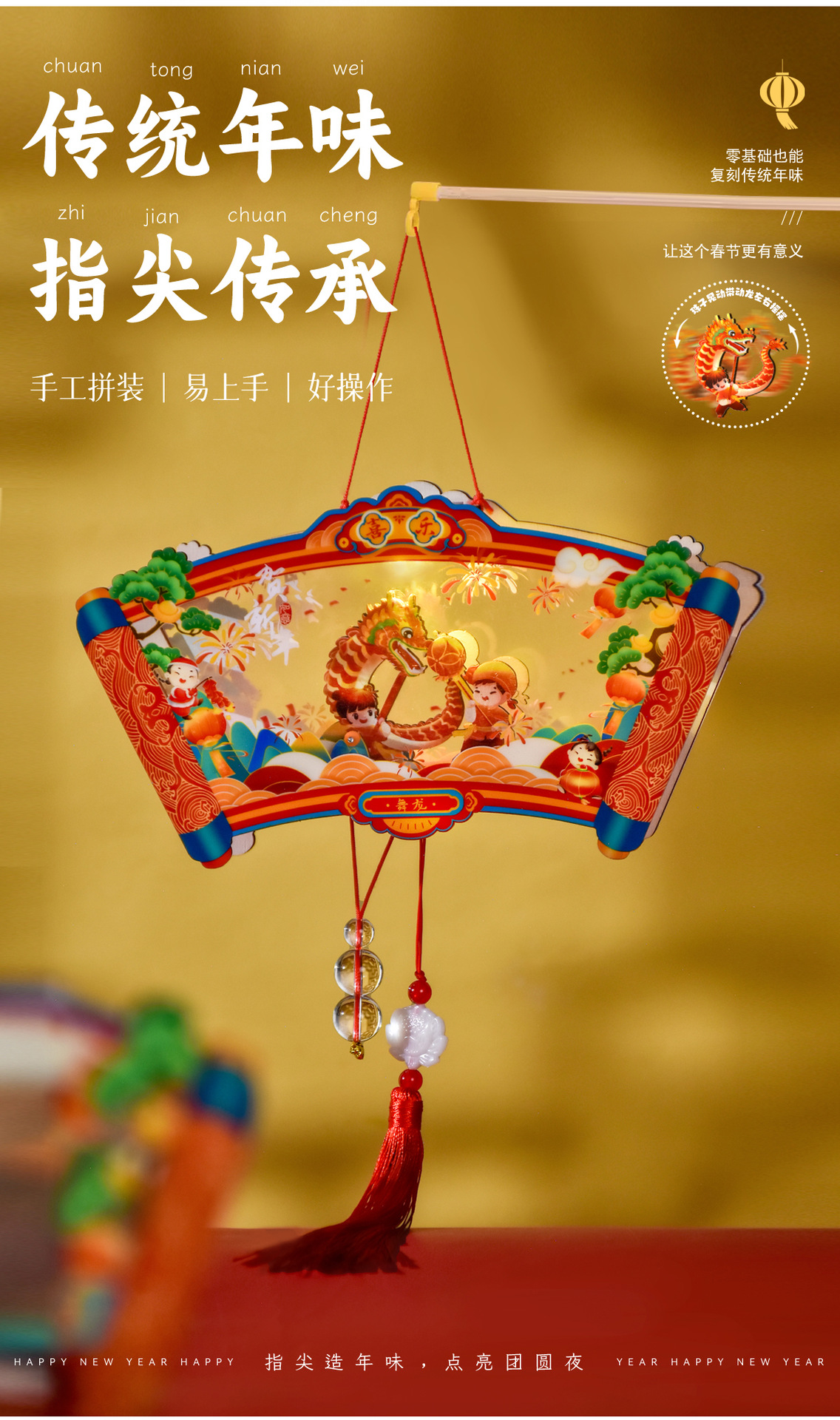 2026马年新年灯笼儿童手提发光国潮醒狮舞龙花灯diy手工材料包