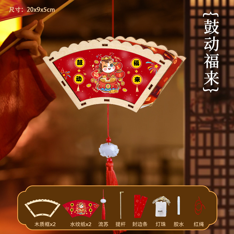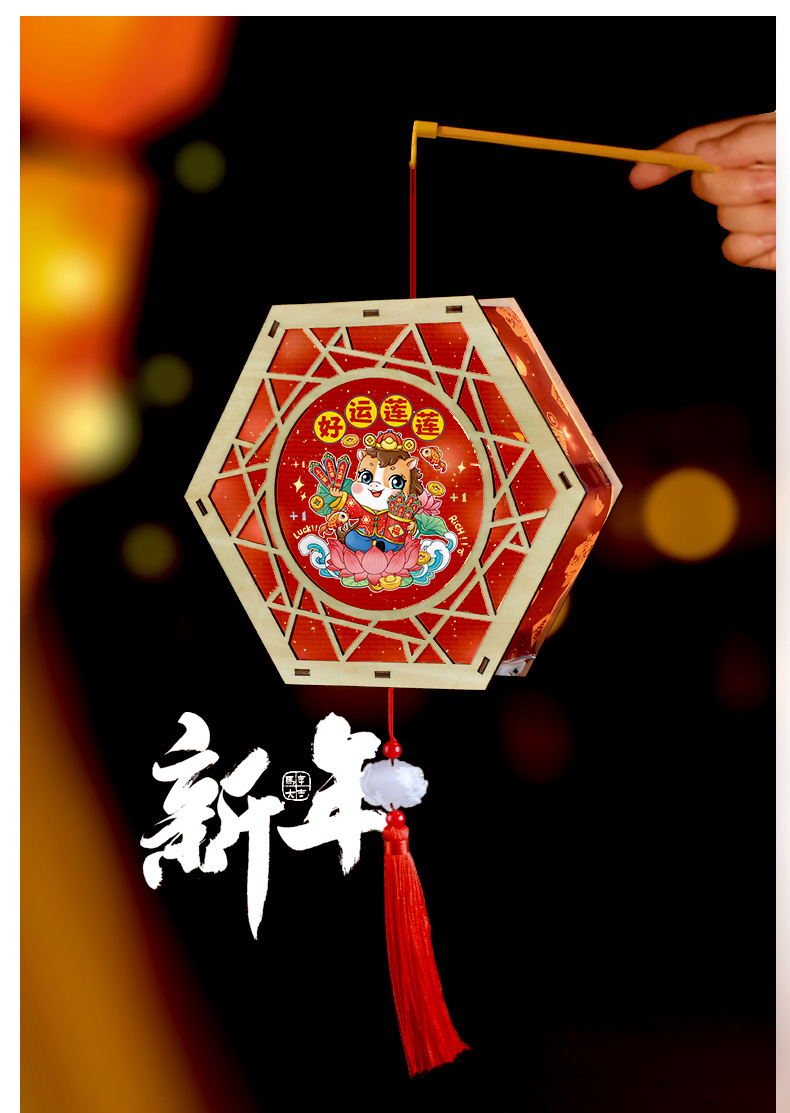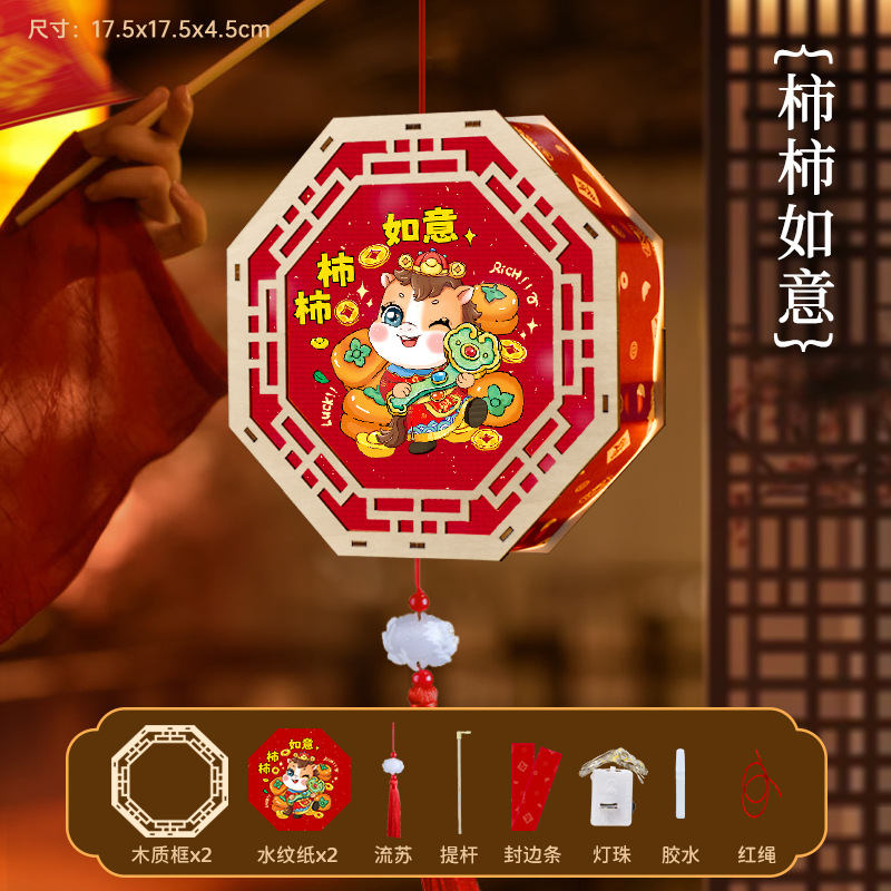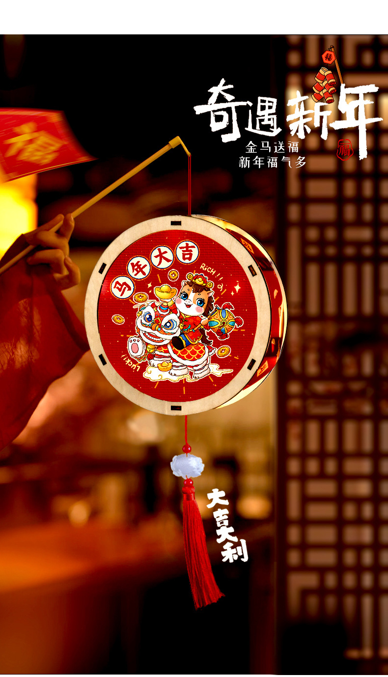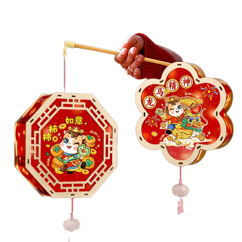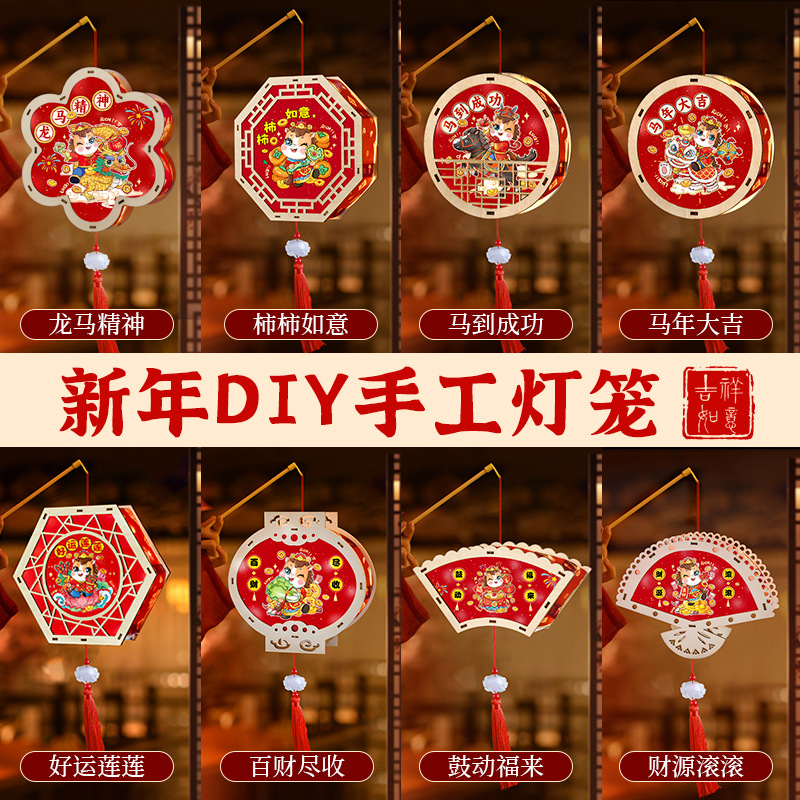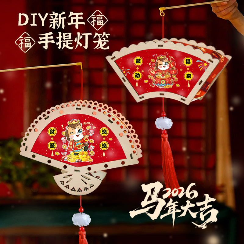 2026新年马年手提发光灯笼儿童diy手工材料包木质花灯摆摊彩灯新