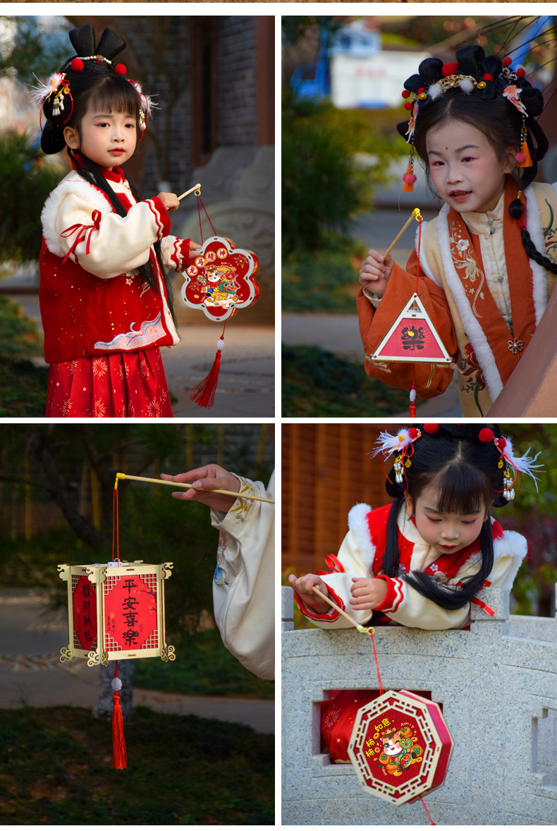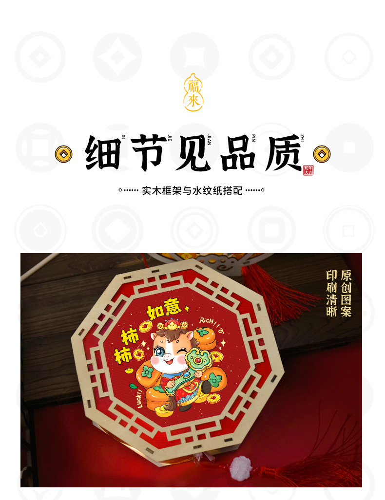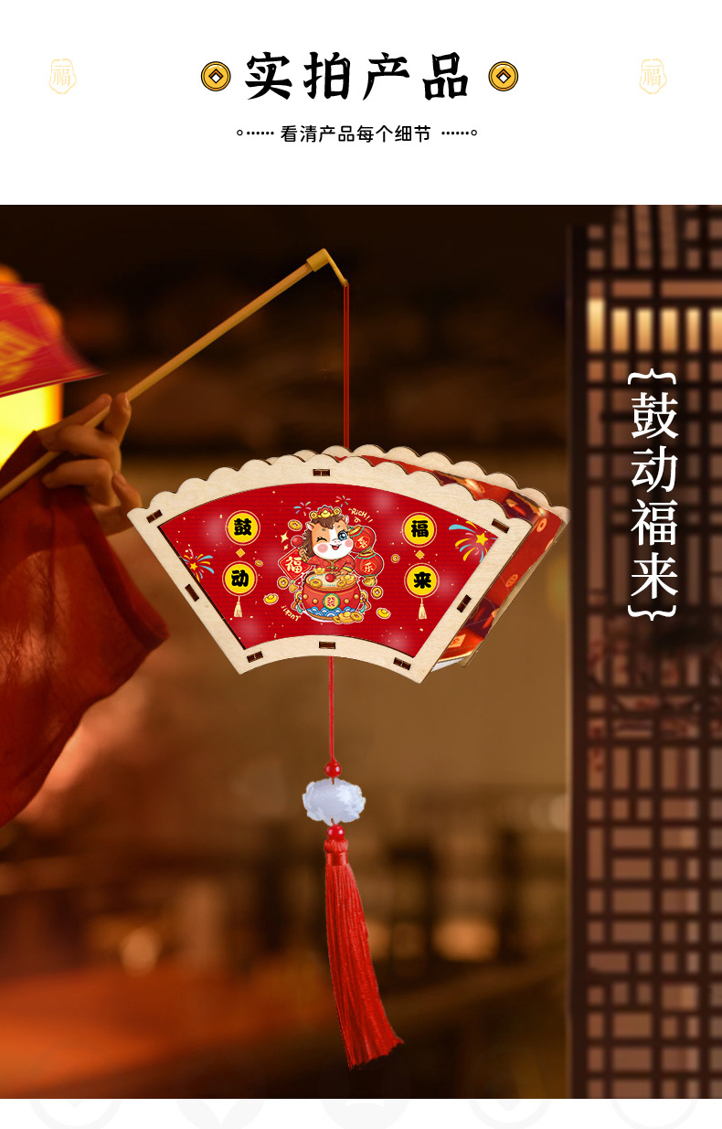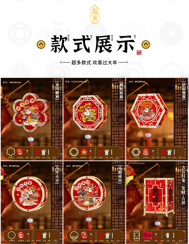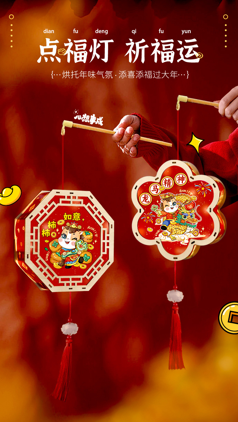 2026新年马年手提发光灯笼儿童diy手工材料包木质花灯摆摊彩灯新