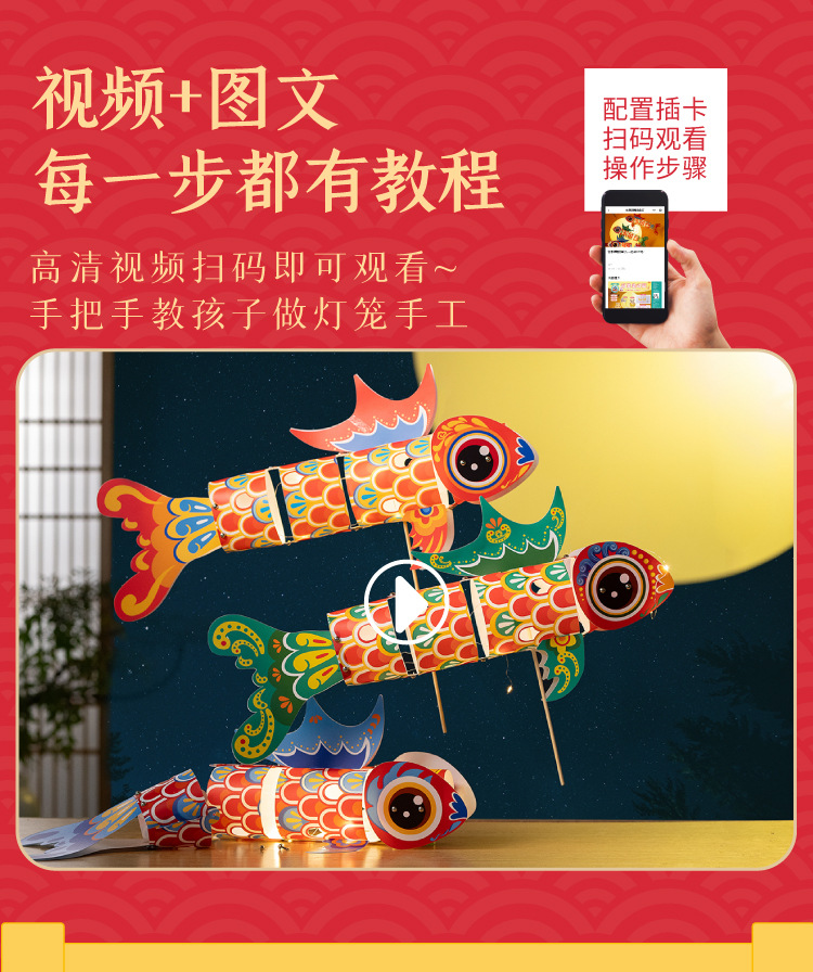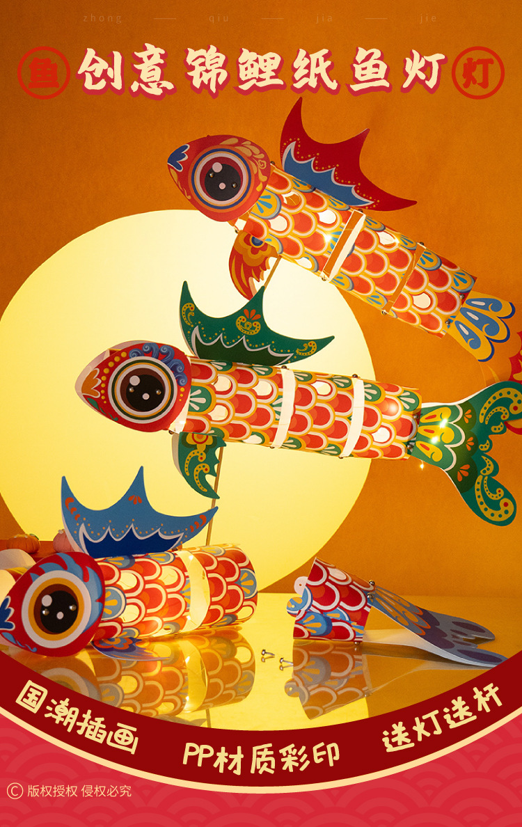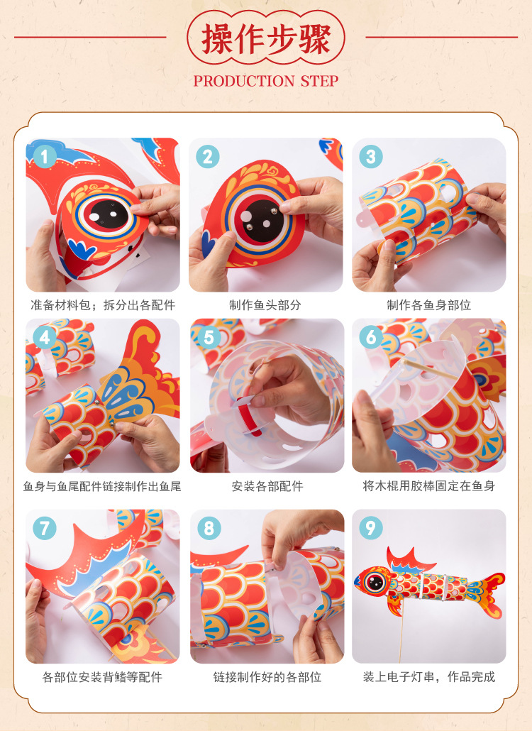 马年新春2026非遗创意锦鲤鱼灯手工diy灯笼制作儿童材料花灯手提