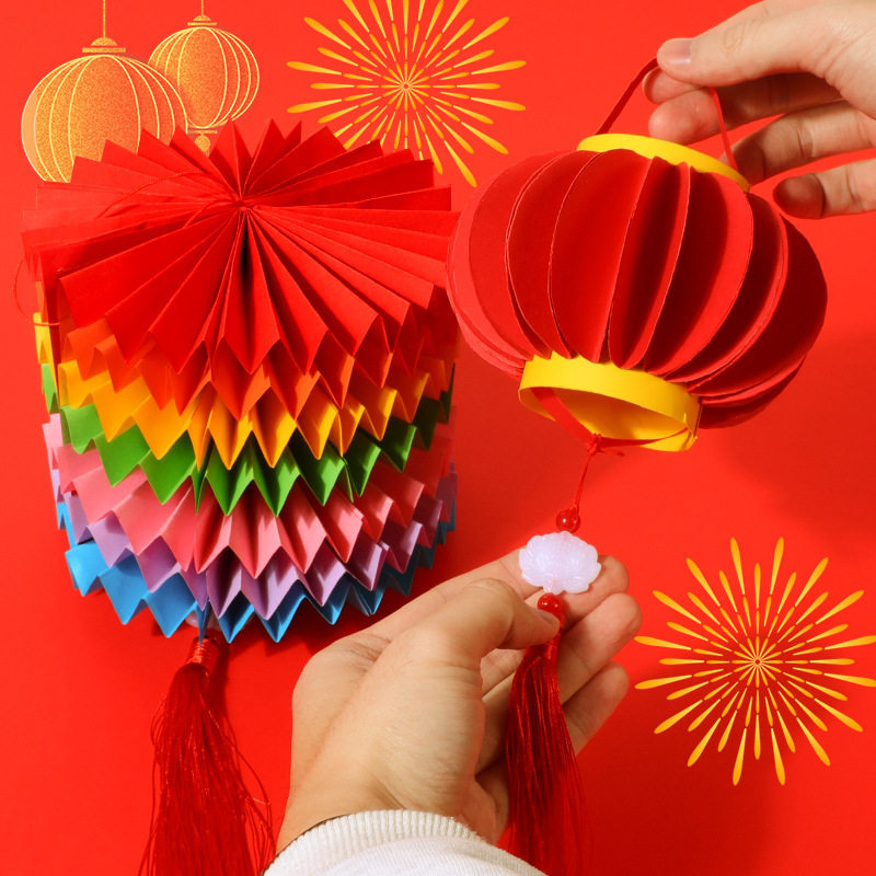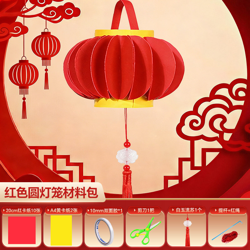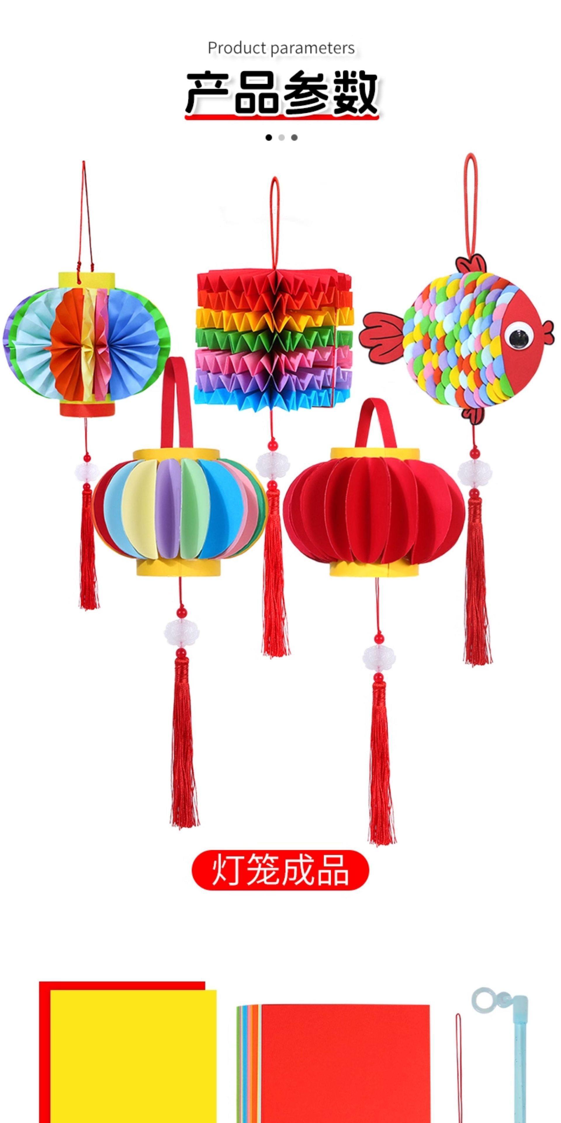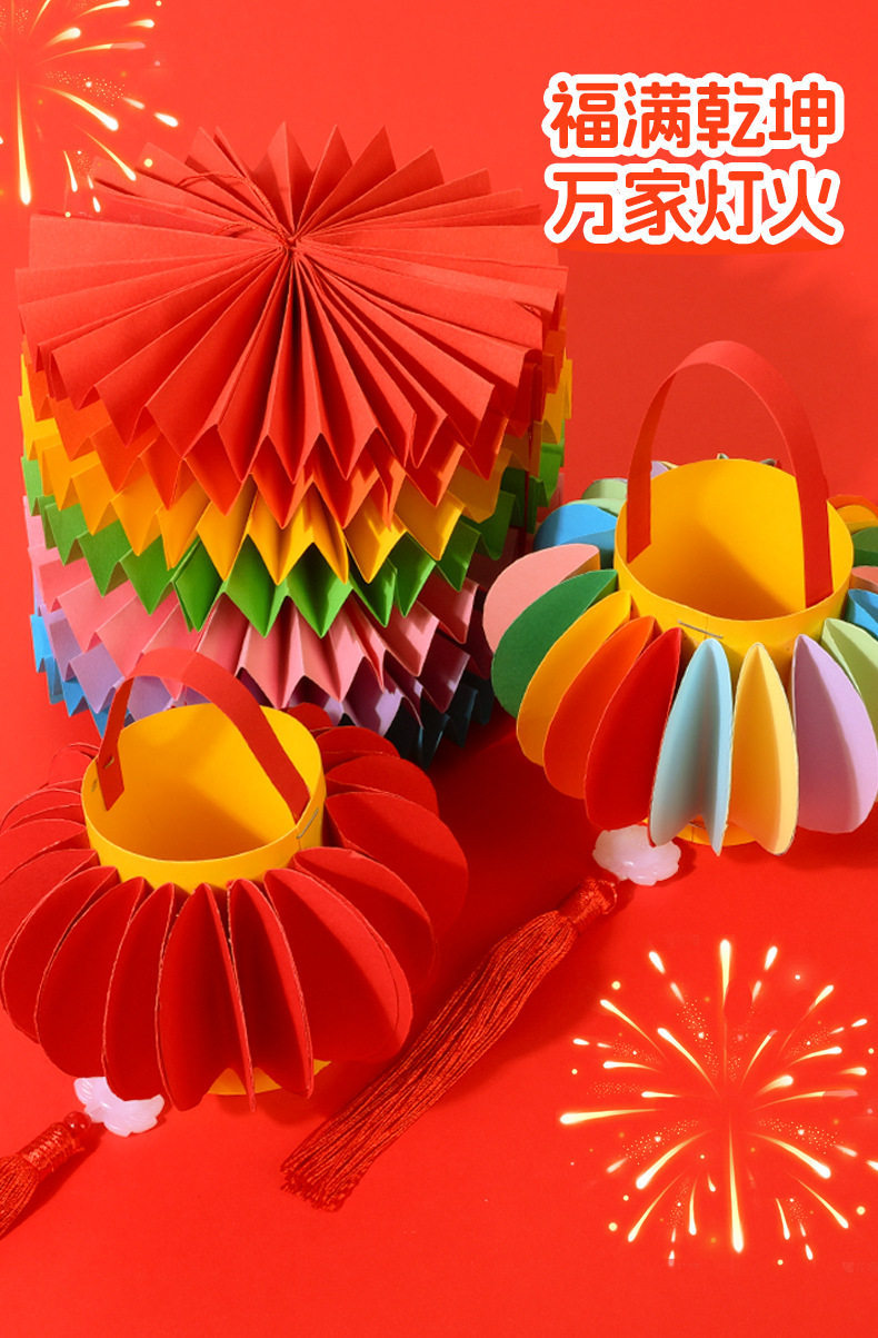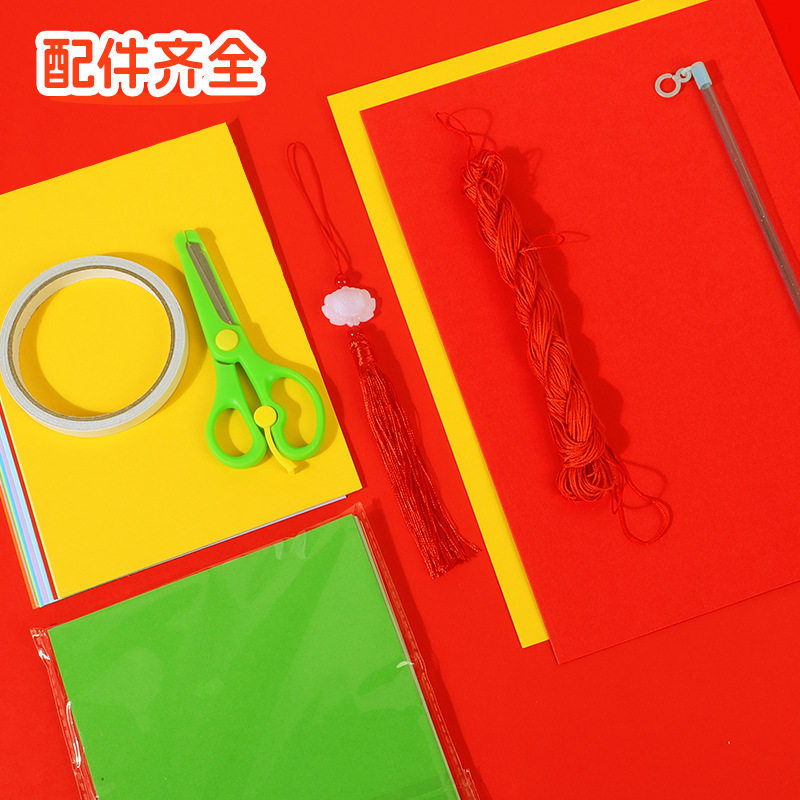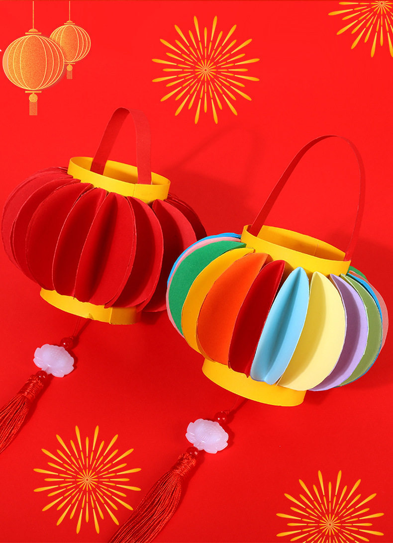 2026马年儿童手提灯笼手工diy材料包 幼儿园新年春节红色彩纸配件