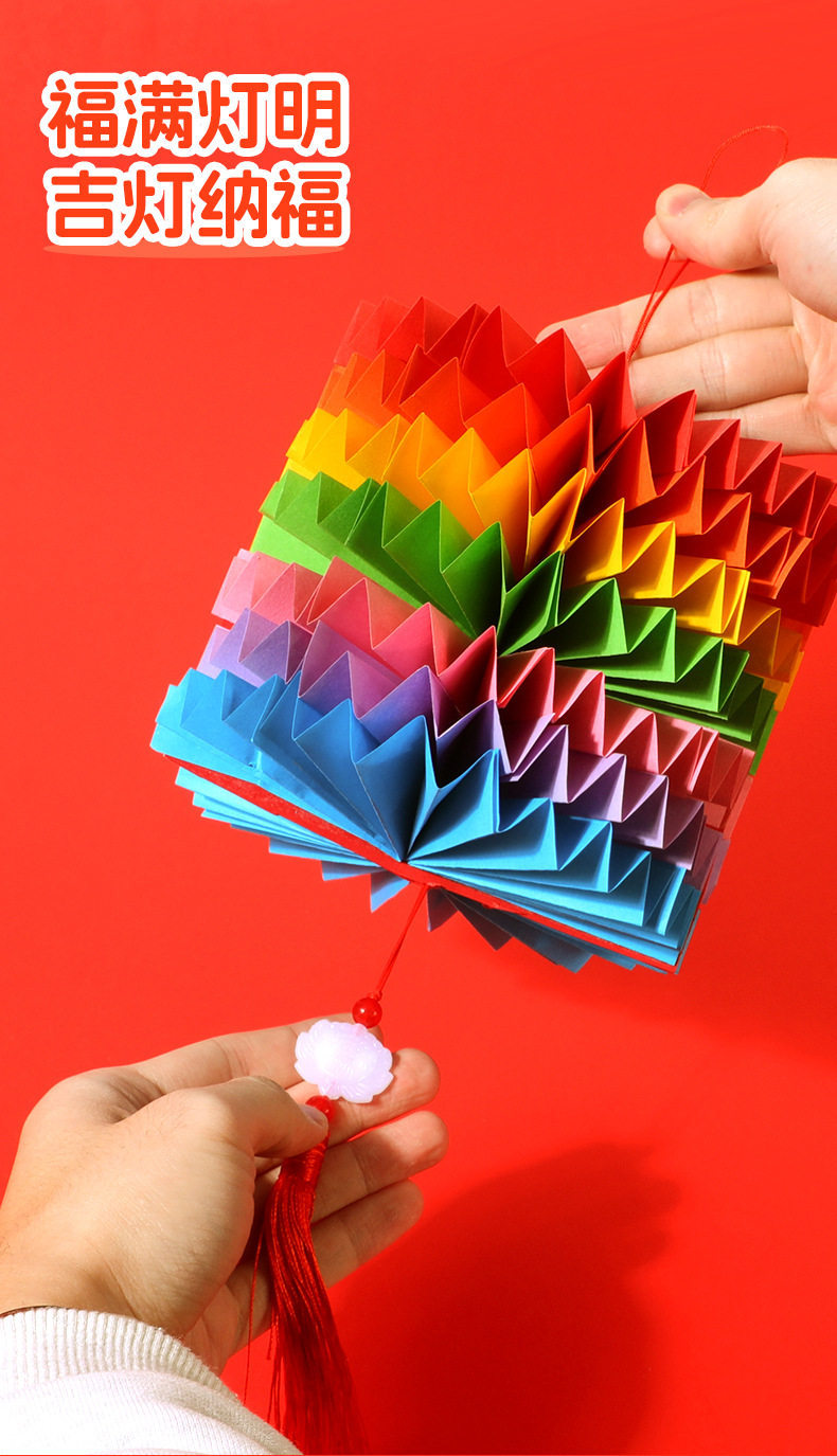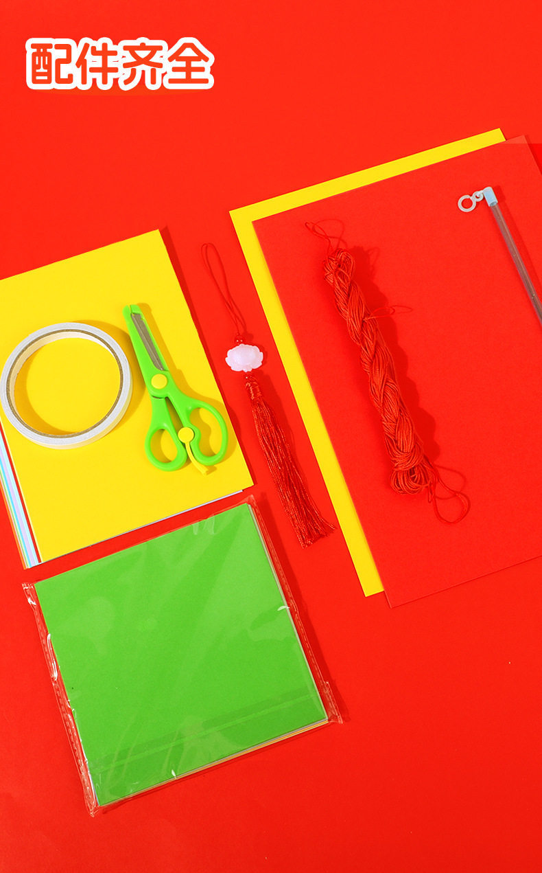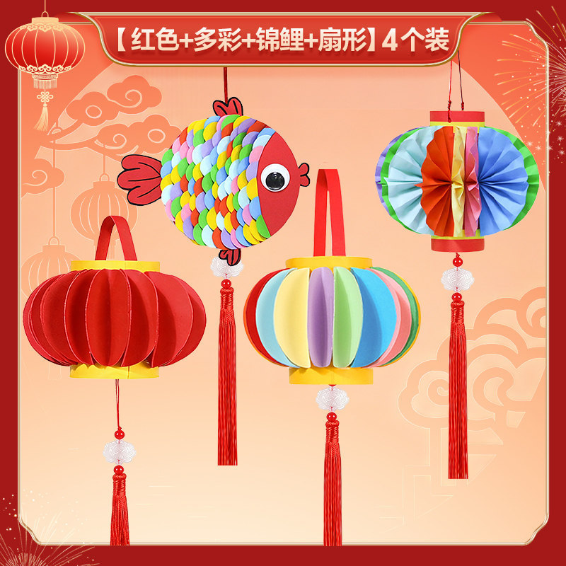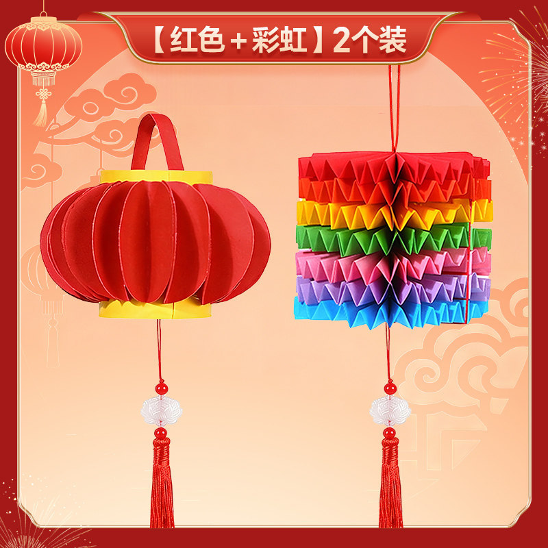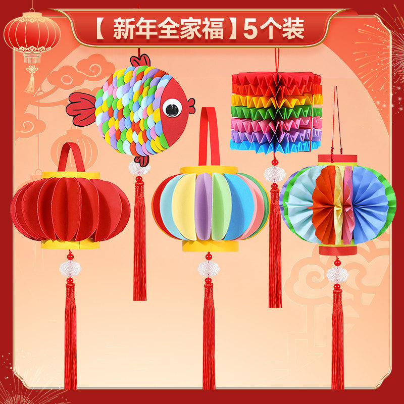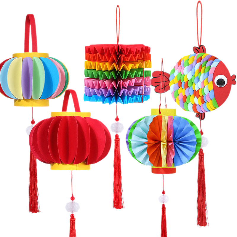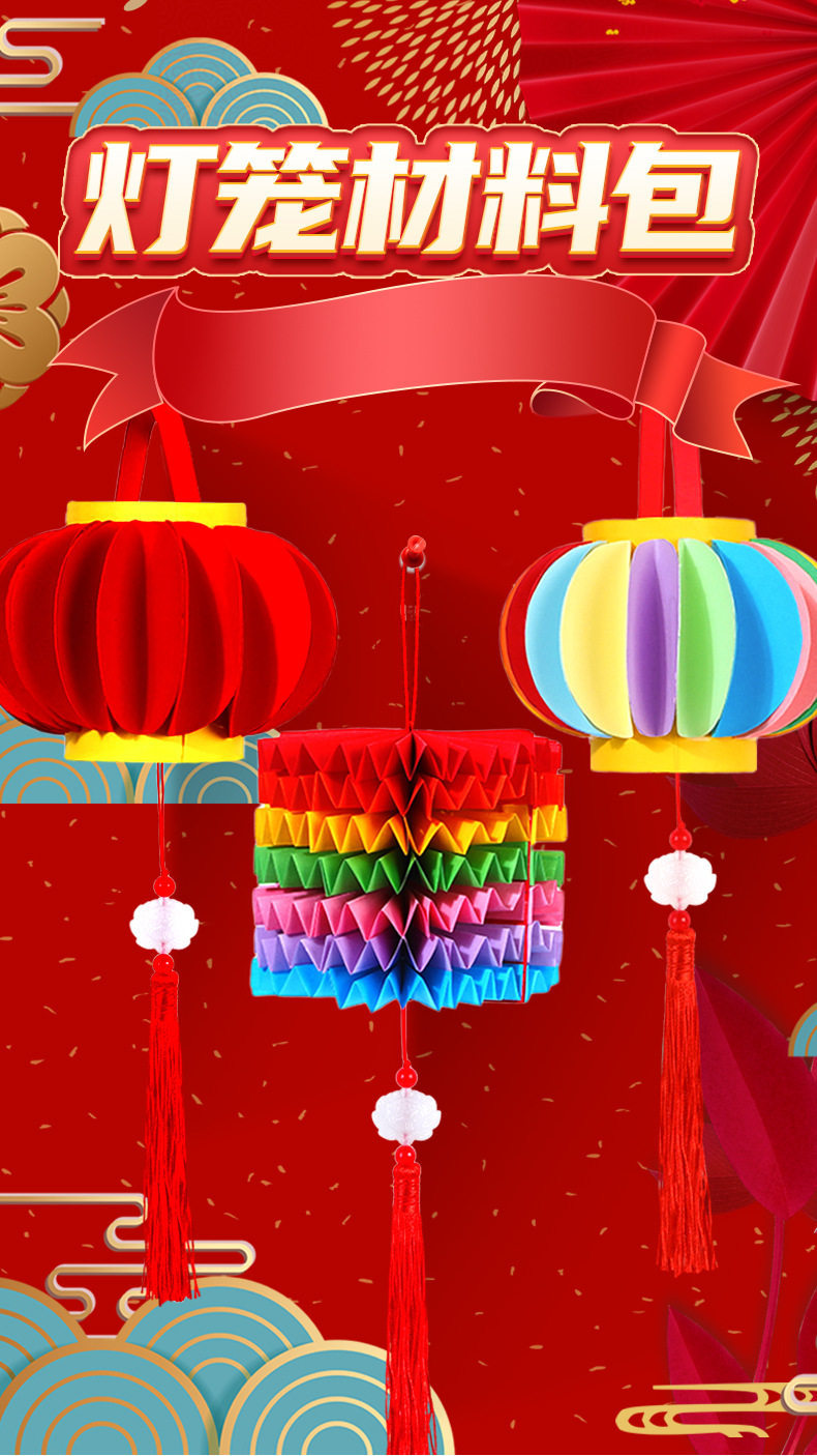 2026马年儿童手提灯笼手工diy材料包 幼儿园新年春节红色彩纸配件