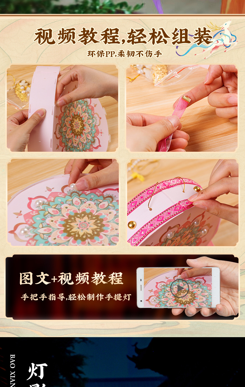 马年春节古风手工灯笼diy材料包儿童手提发光元宵节花灯摆摊批发