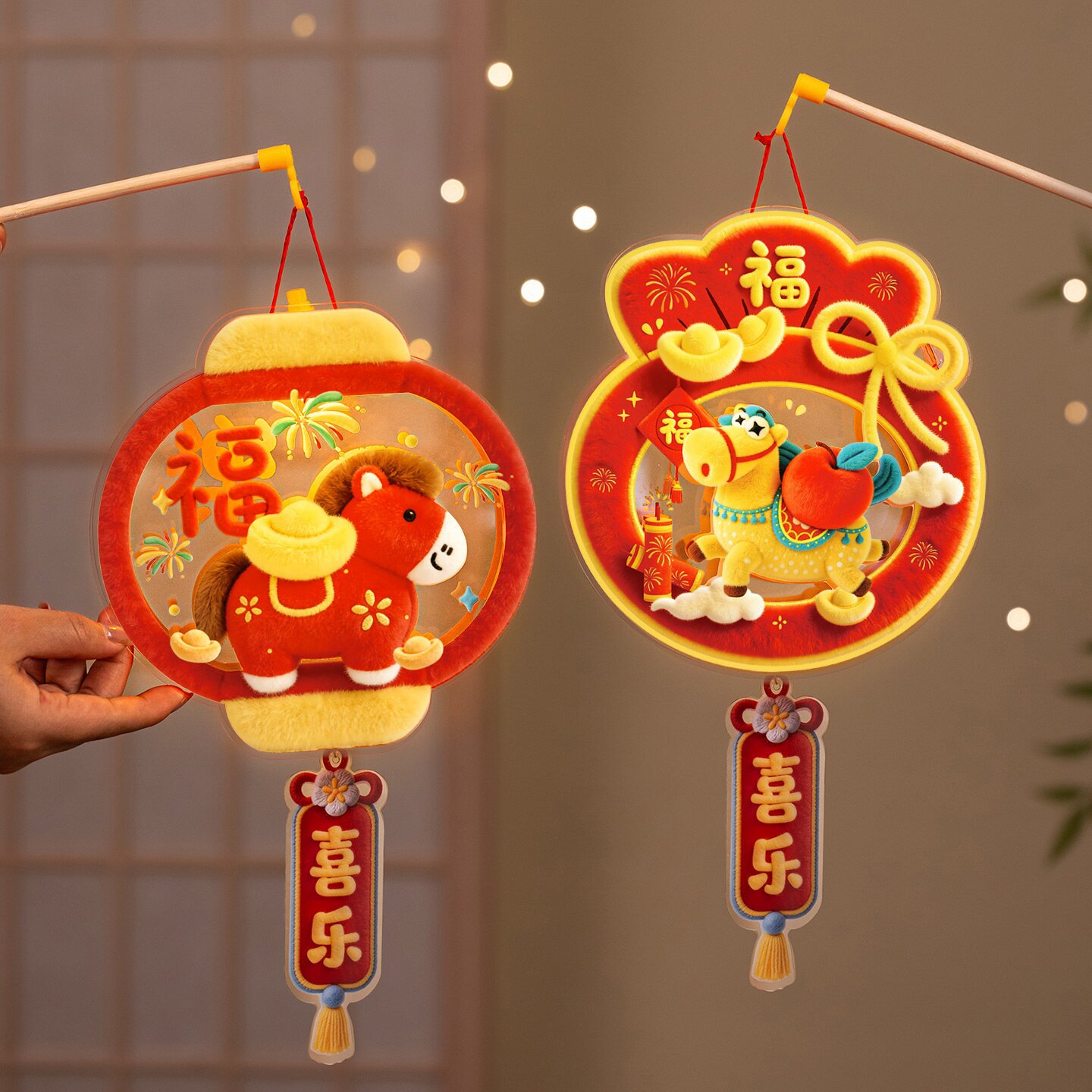 2026新年灯笼手工diy材料包儿童手提发光马年新款花灯幼儿园挂饰