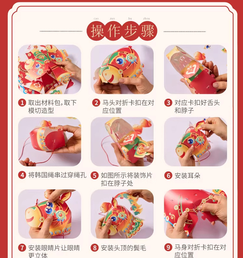 2026马年春节元宵节灯笼手工diy儿童手工制作材料包手提发光灯笼