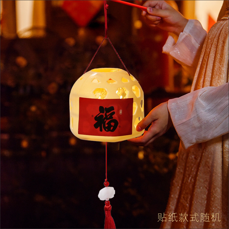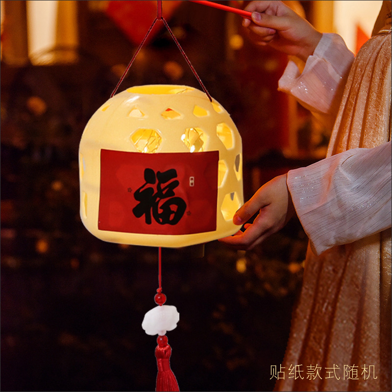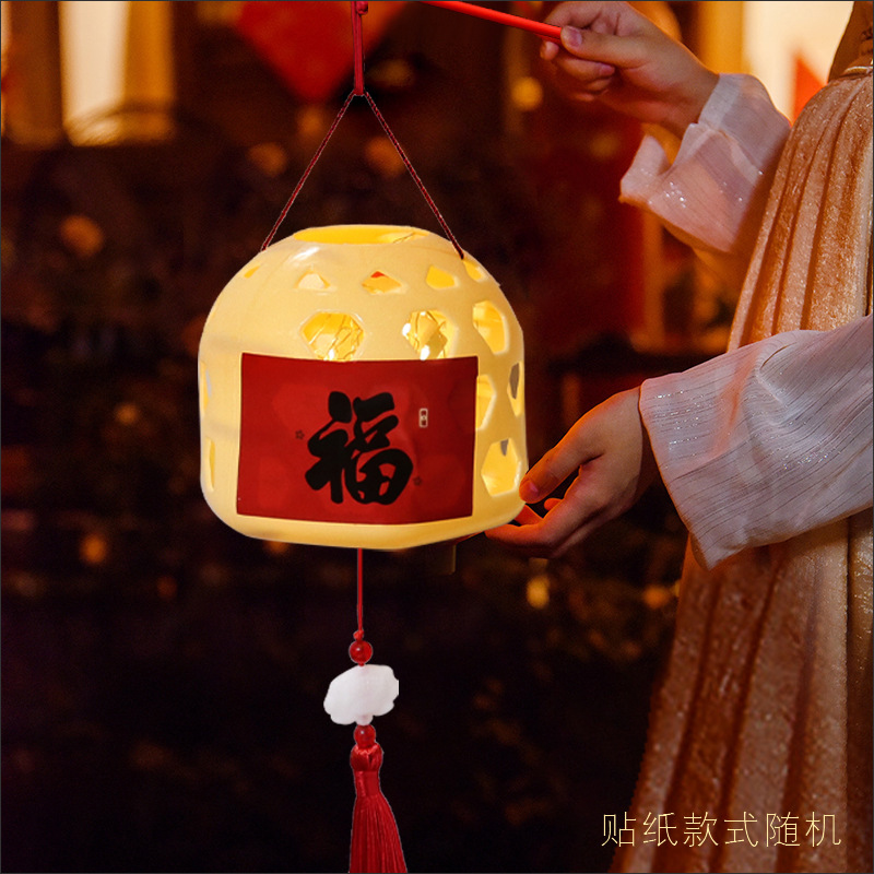 自产自销新年春节装饰用品元旦元宵儿童仿竹编塑料发光手提灯笼