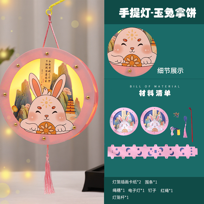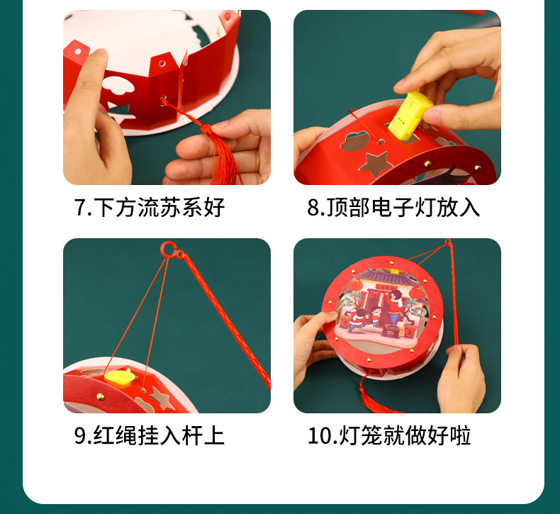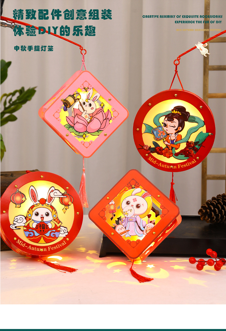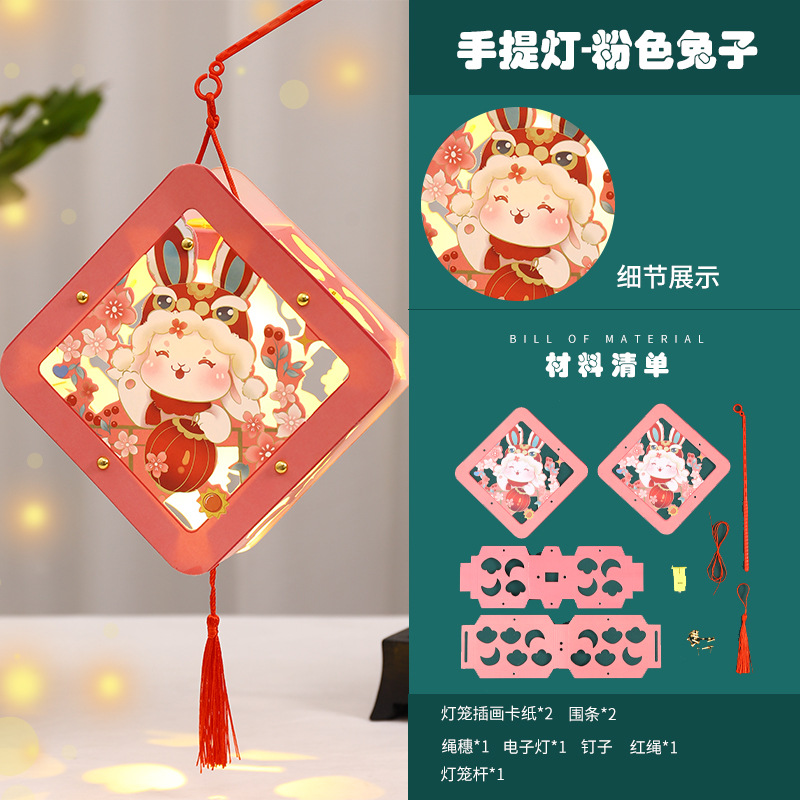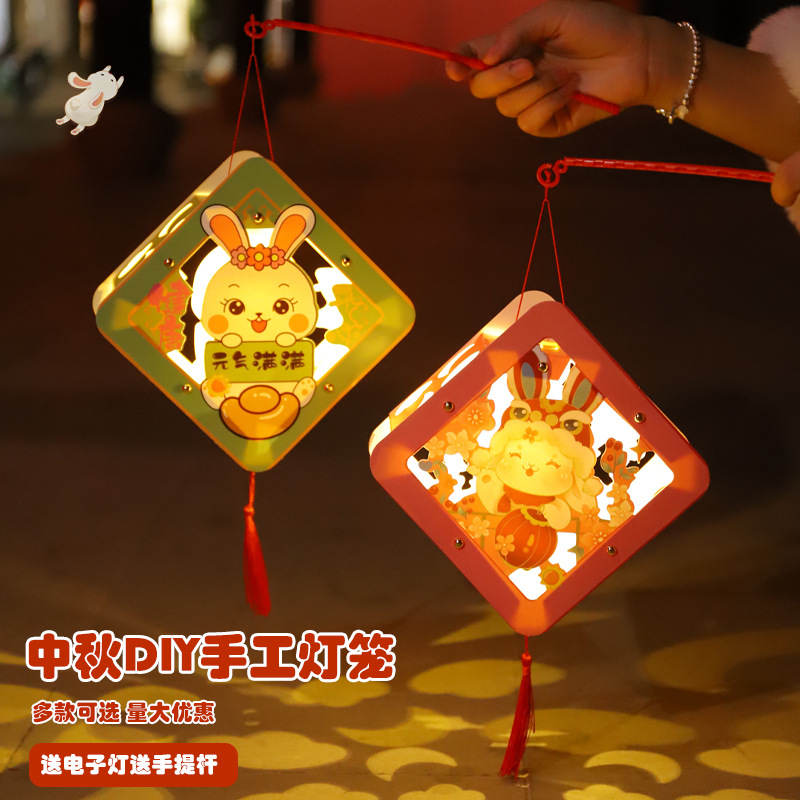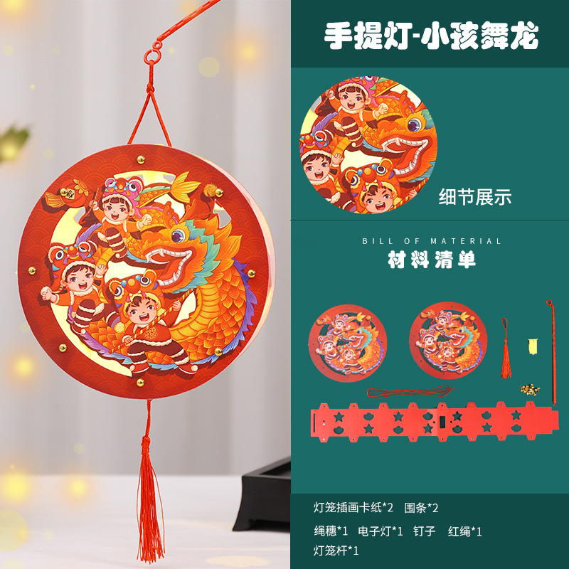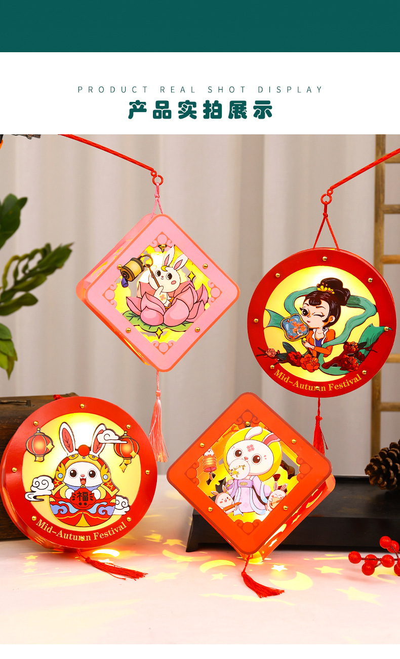 儿童手提灯笼古风走马灯旋转手工diy材料包 发光花灯过年灯笼挂饰