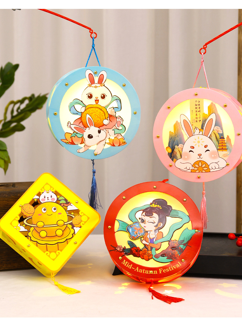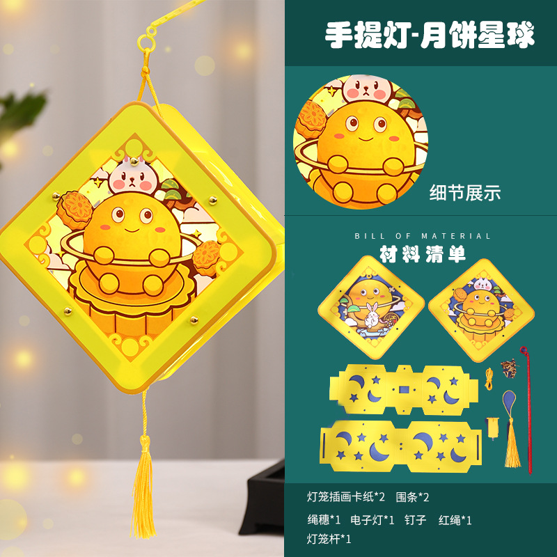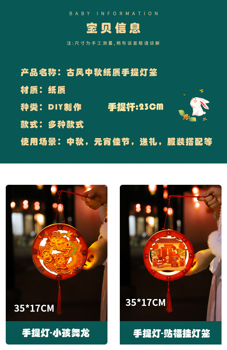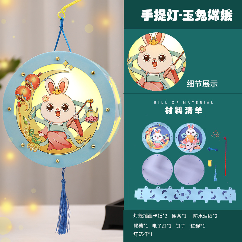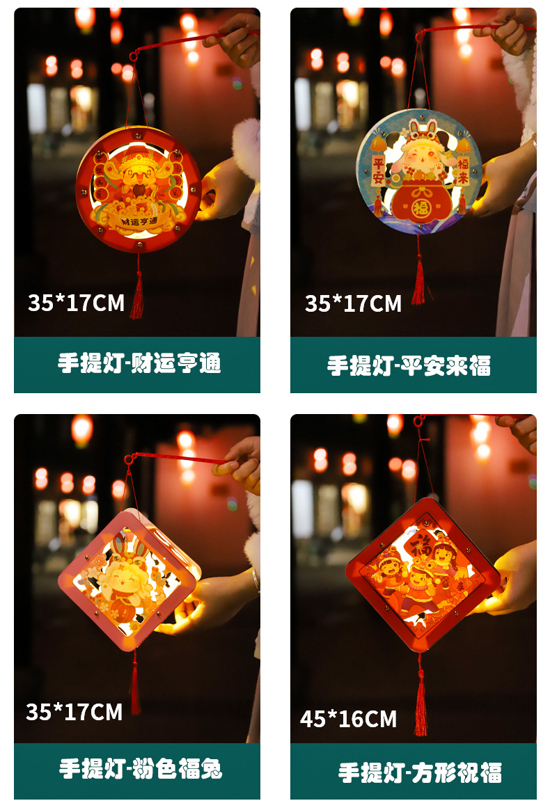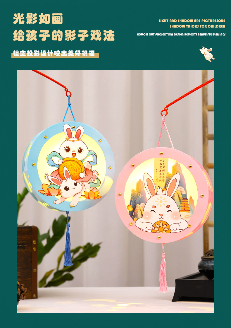 儿童手提灯笼古风走马灯旋转手工diy材料包 发光花灯过年灯笼挂饰