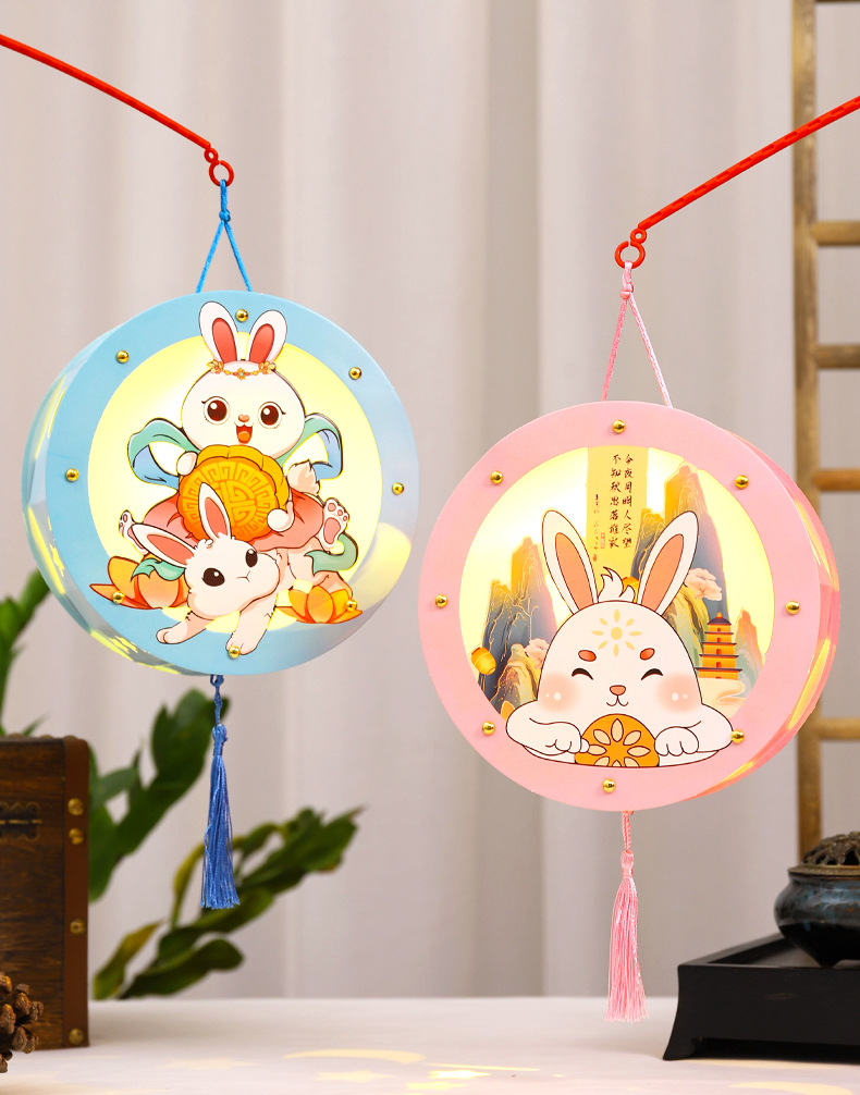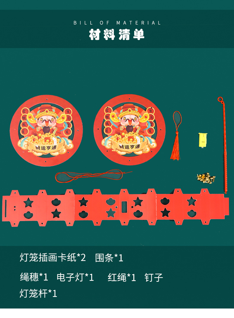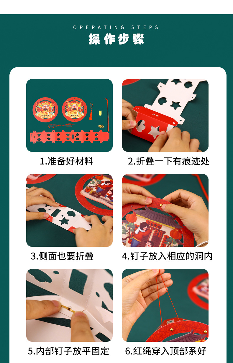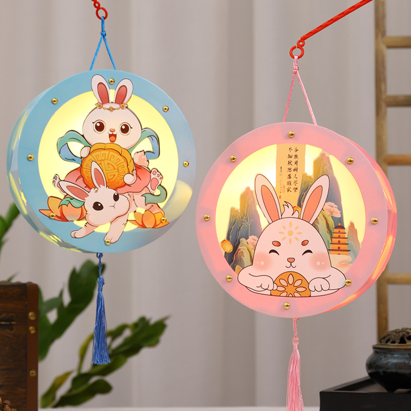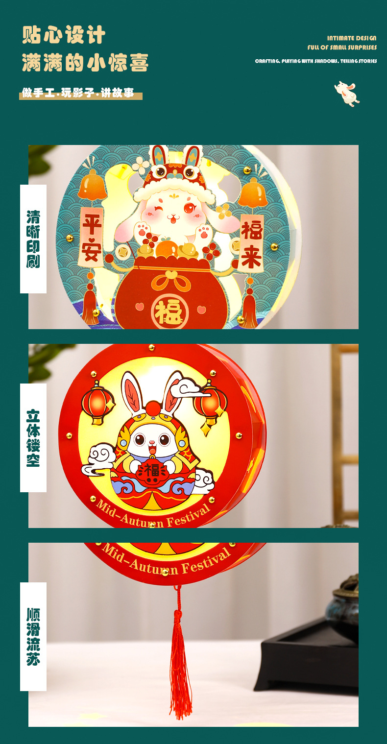 儿童手提灯笼古风走马灯旋转手工diy材料包 发光花灯过年灯笼挂饰