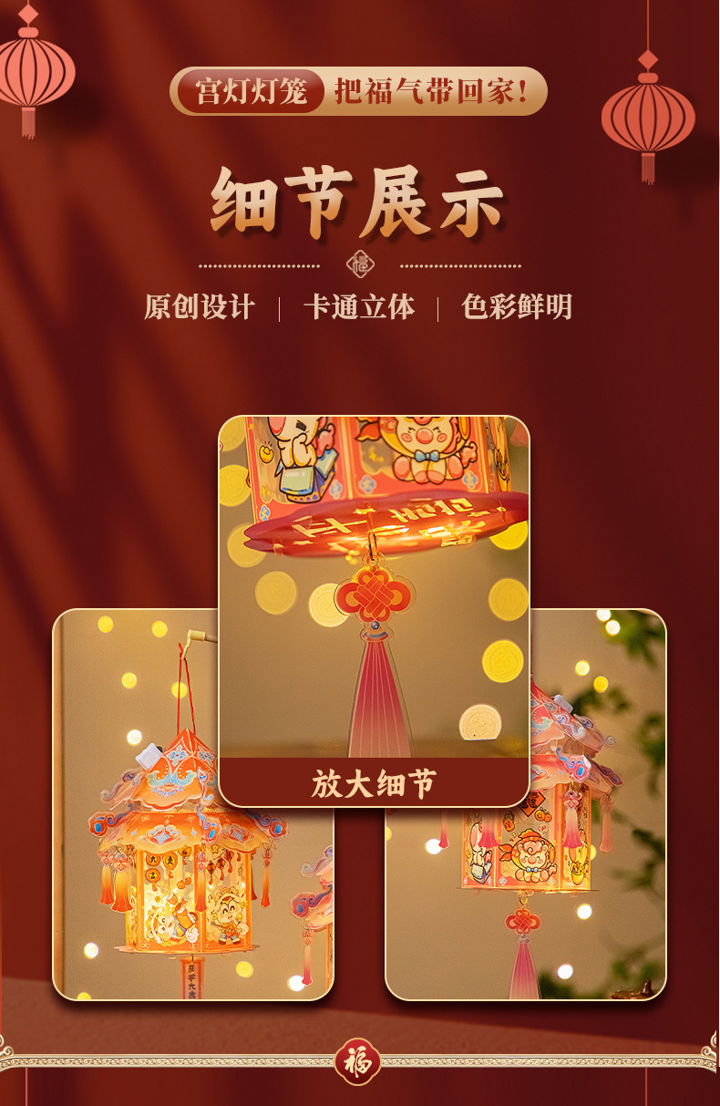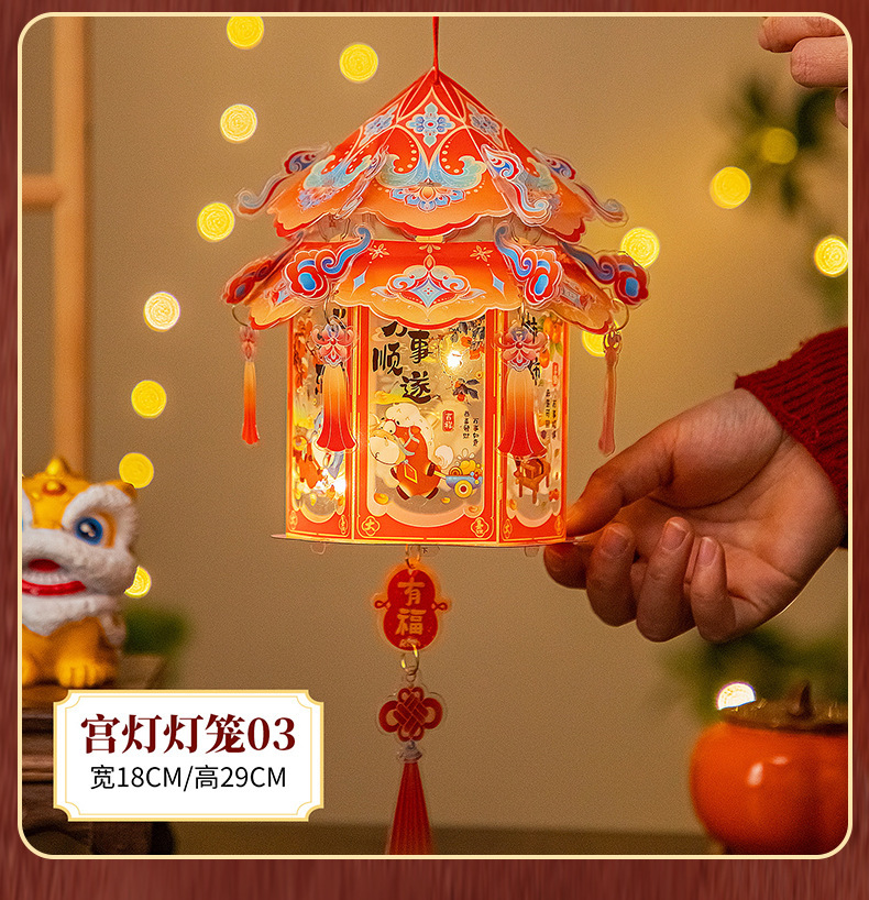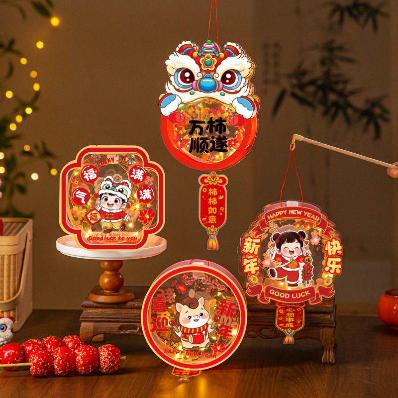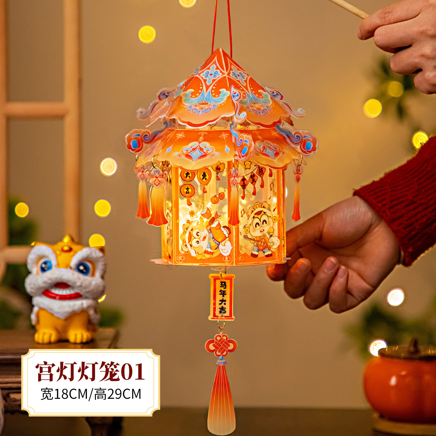 2026新年宫灯马年春节场景布置儿童卡通手提灯diy材料包新年装饰