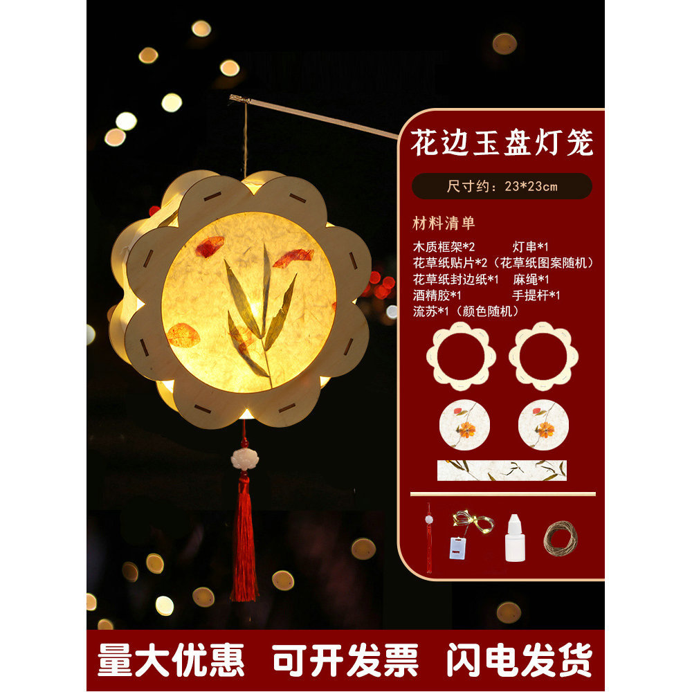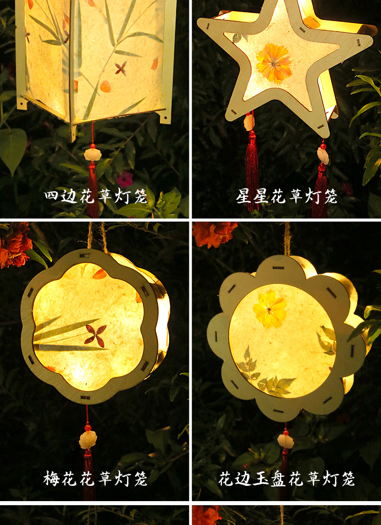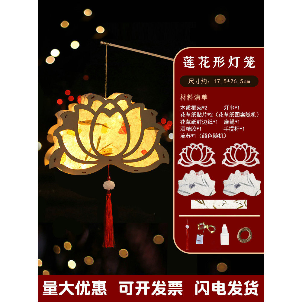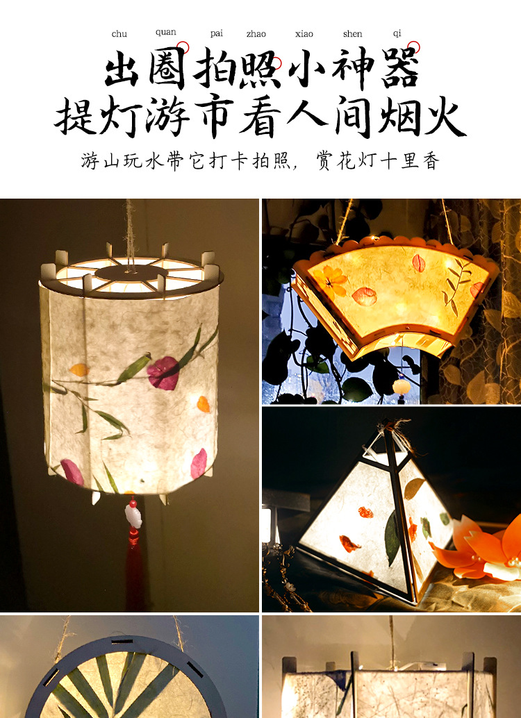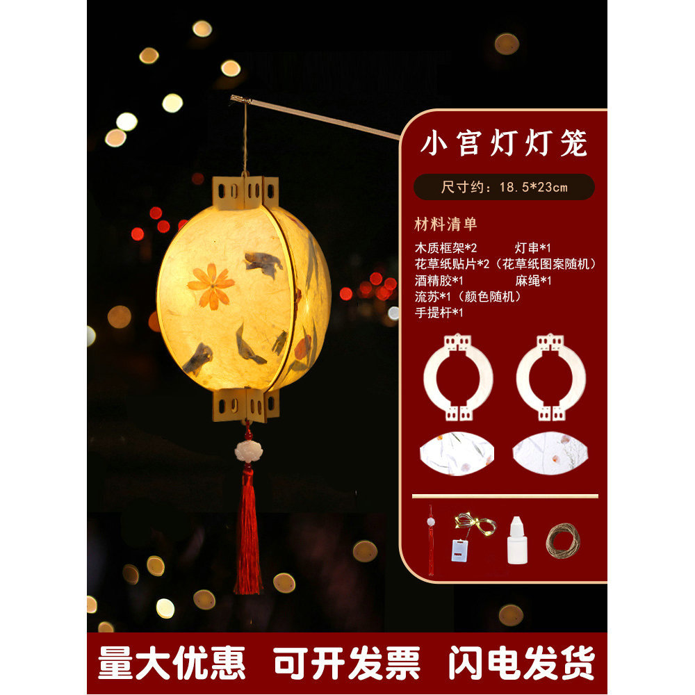 元宵节灯笼手工diy材料包儿童手提花灯古风非遗花草纸灯笼幼儿园
