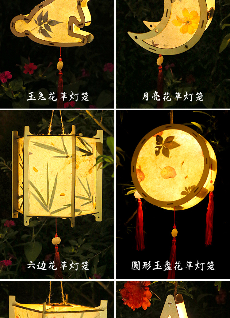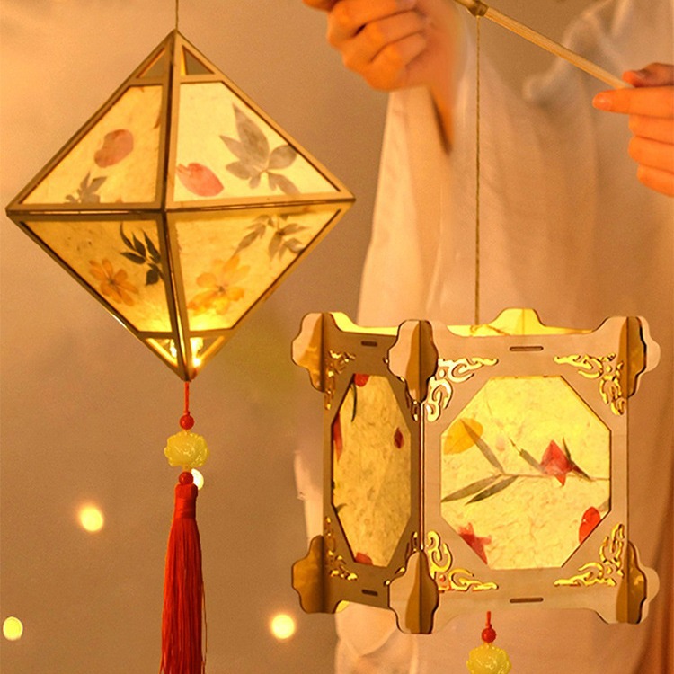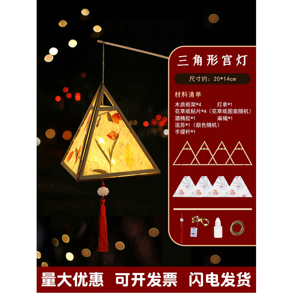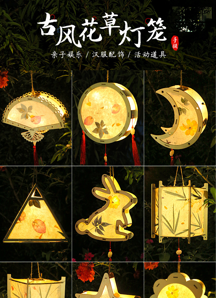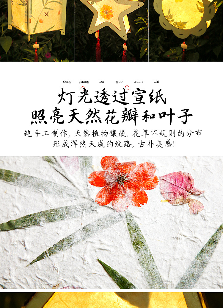 元宵节灯笼手工diy材料包儿童手提花灯古风非遗花草纸灯笼幼儿园