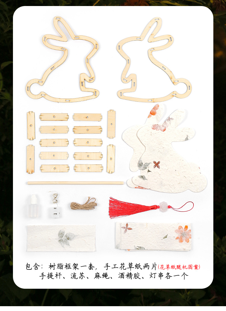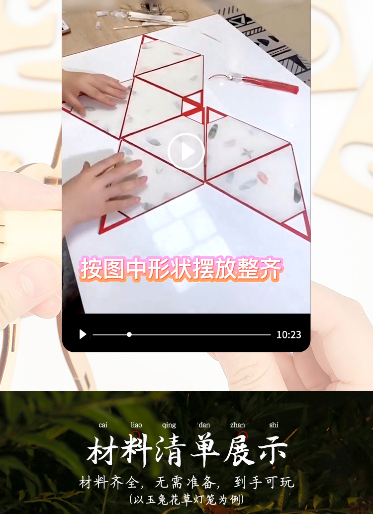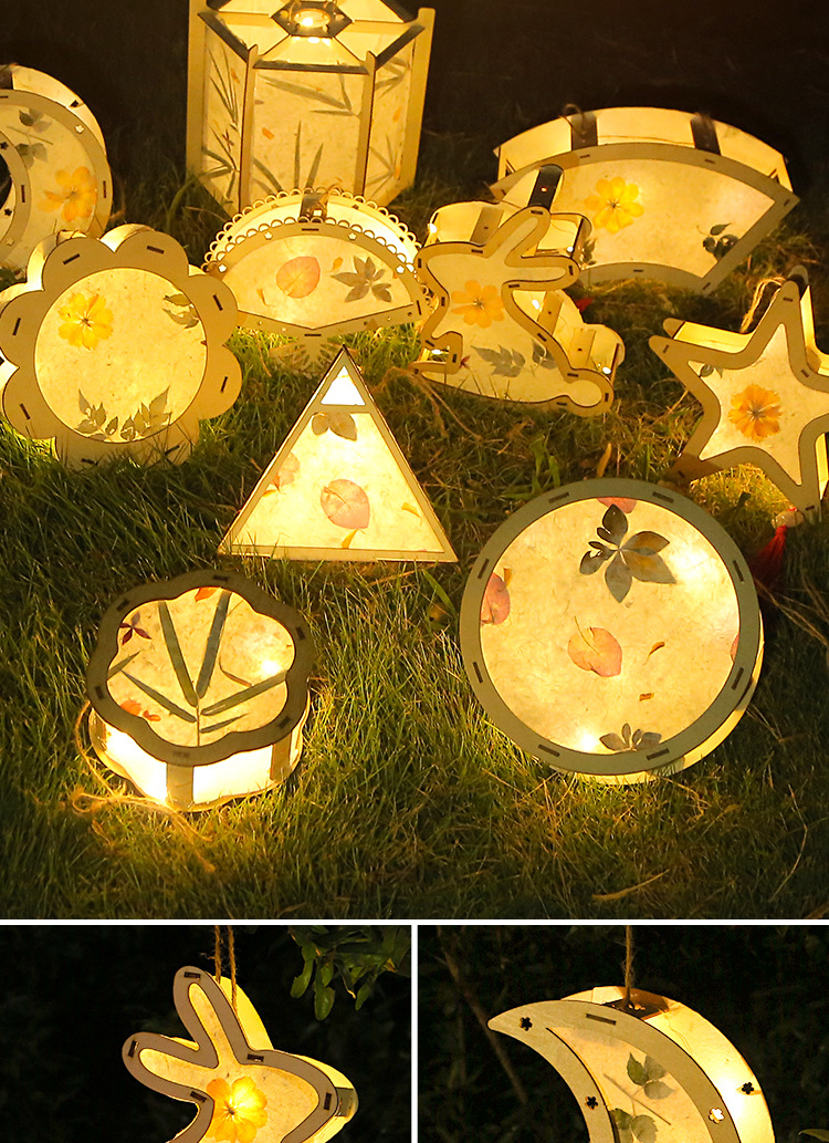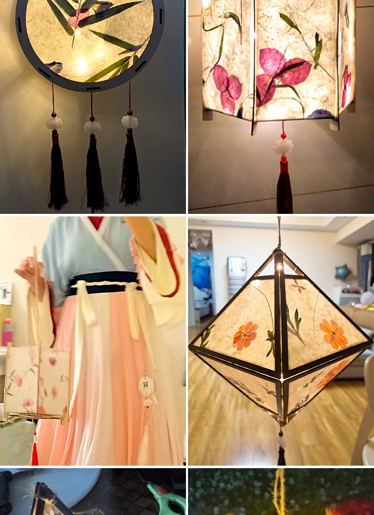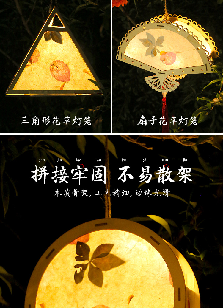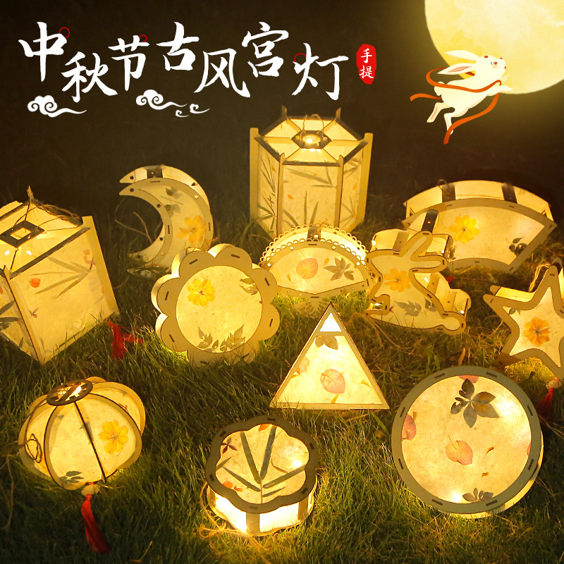 元宵节灯笼手工diy材料包儿童手提花灯古风非遗花草纸灯笼幼儿园