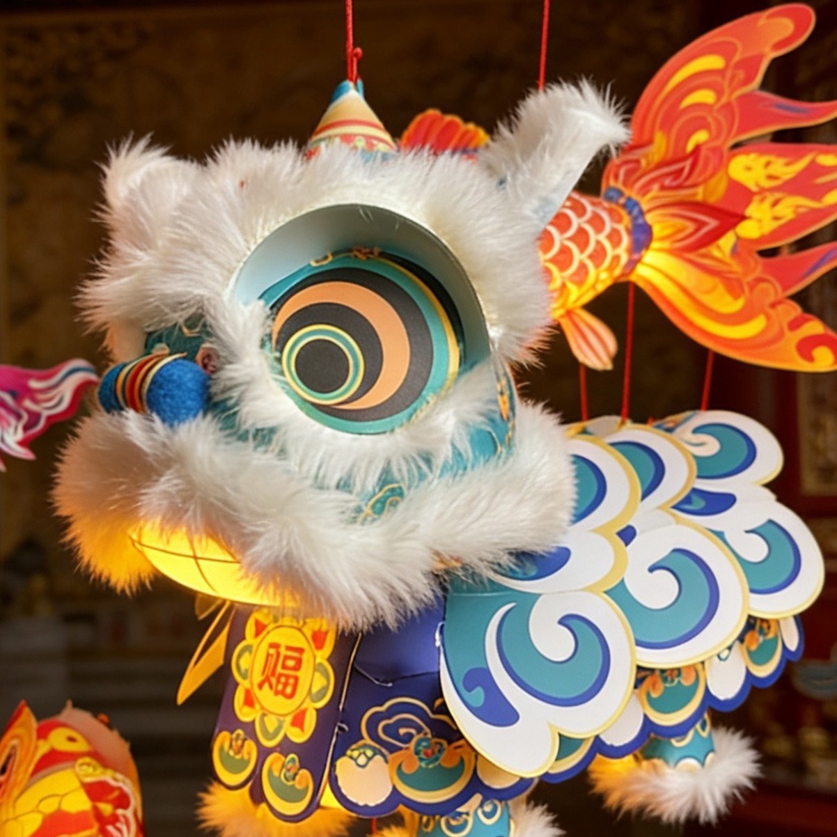 2026马年新款醒狮灯笼手工diy材料包儿童手提发光玩具pvc防水材质