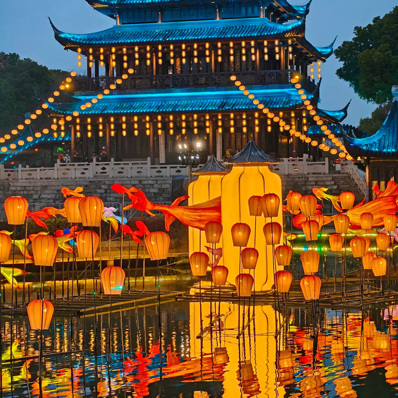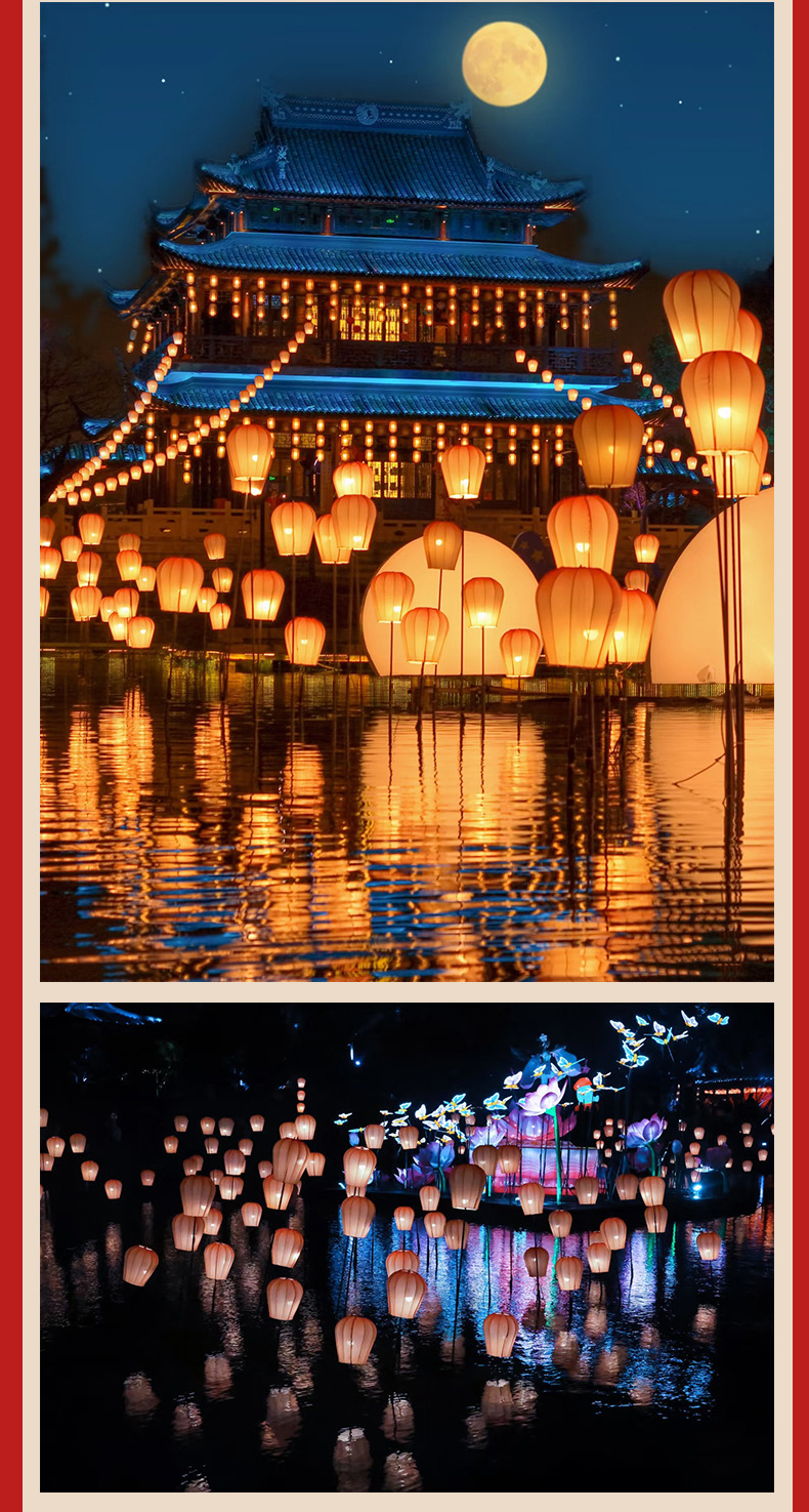 水上孔明灯笼天幕灯笼游乐园水上公园湖畔户外防水古风装挂饰灯笼
