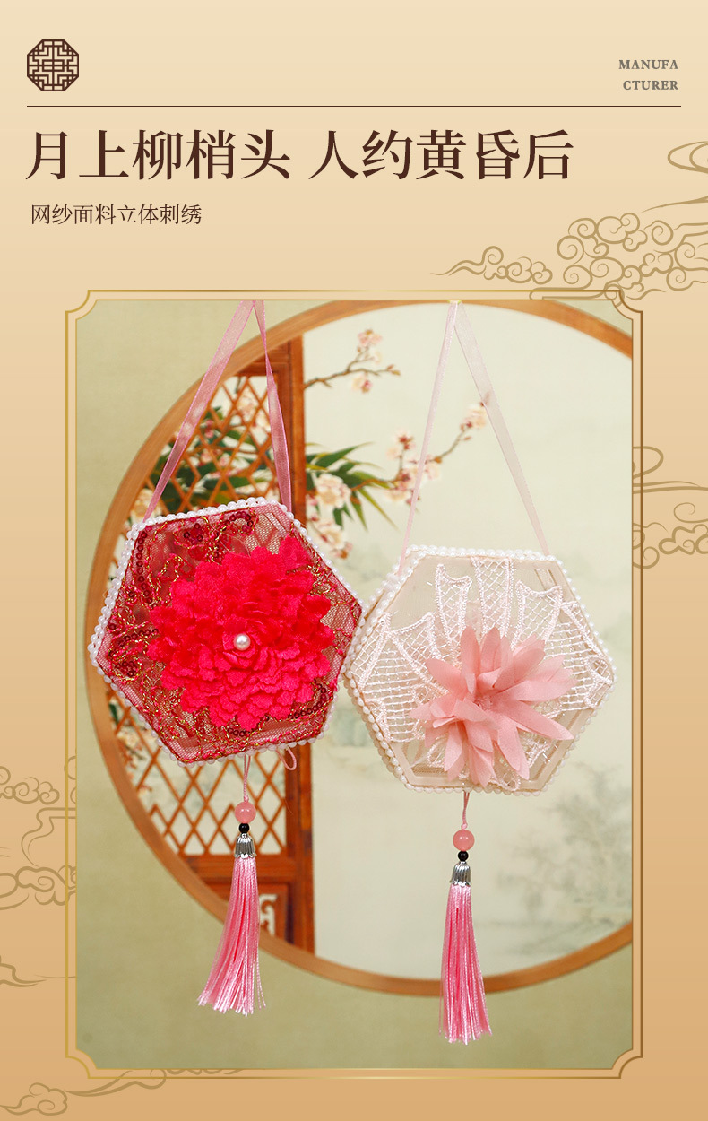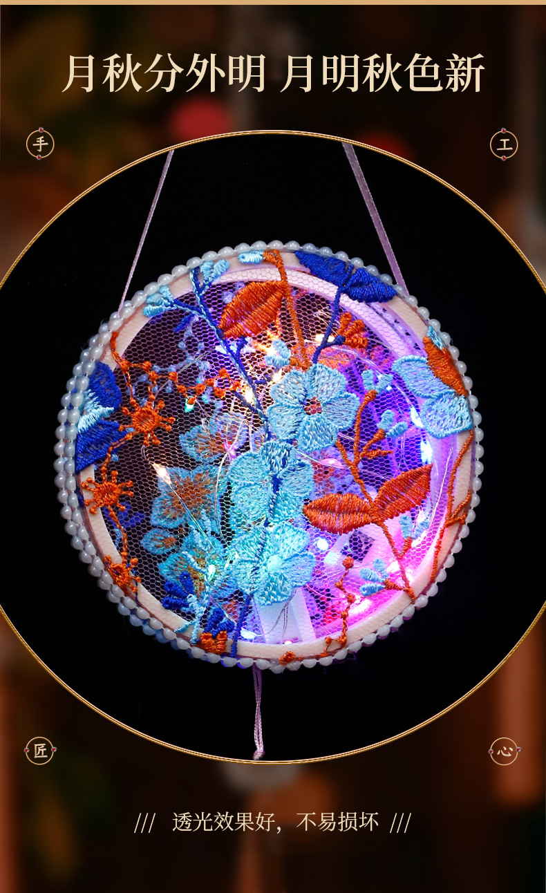 刺绣灯笼发光灯笼新年灯笼古风刺绣花灯摆摊成品立体刺绣宫灯定制