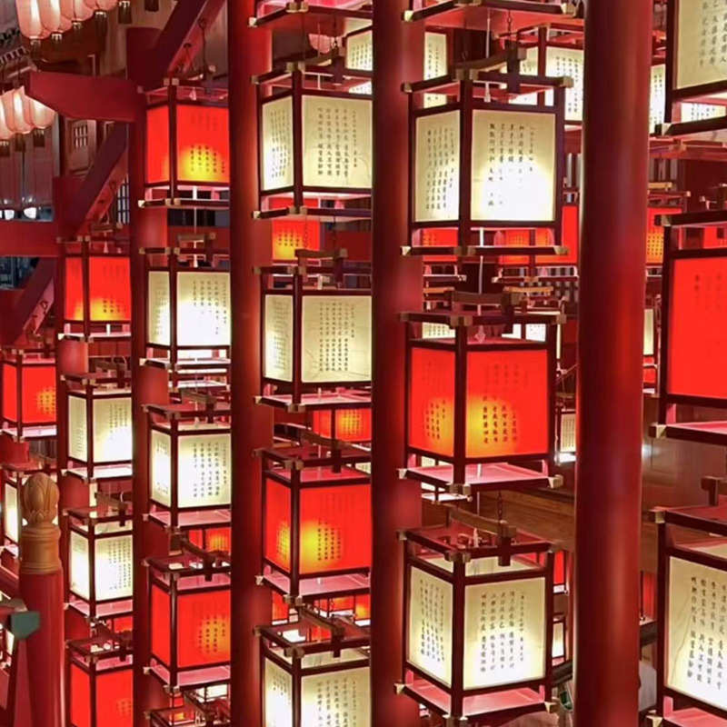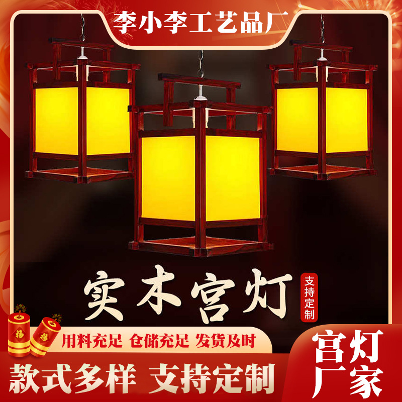 中式仿古实木灯笼中国风复古宫灯走廊酒店景区木艺吊灯手工艺木质