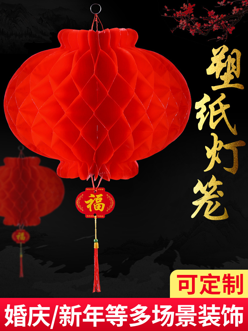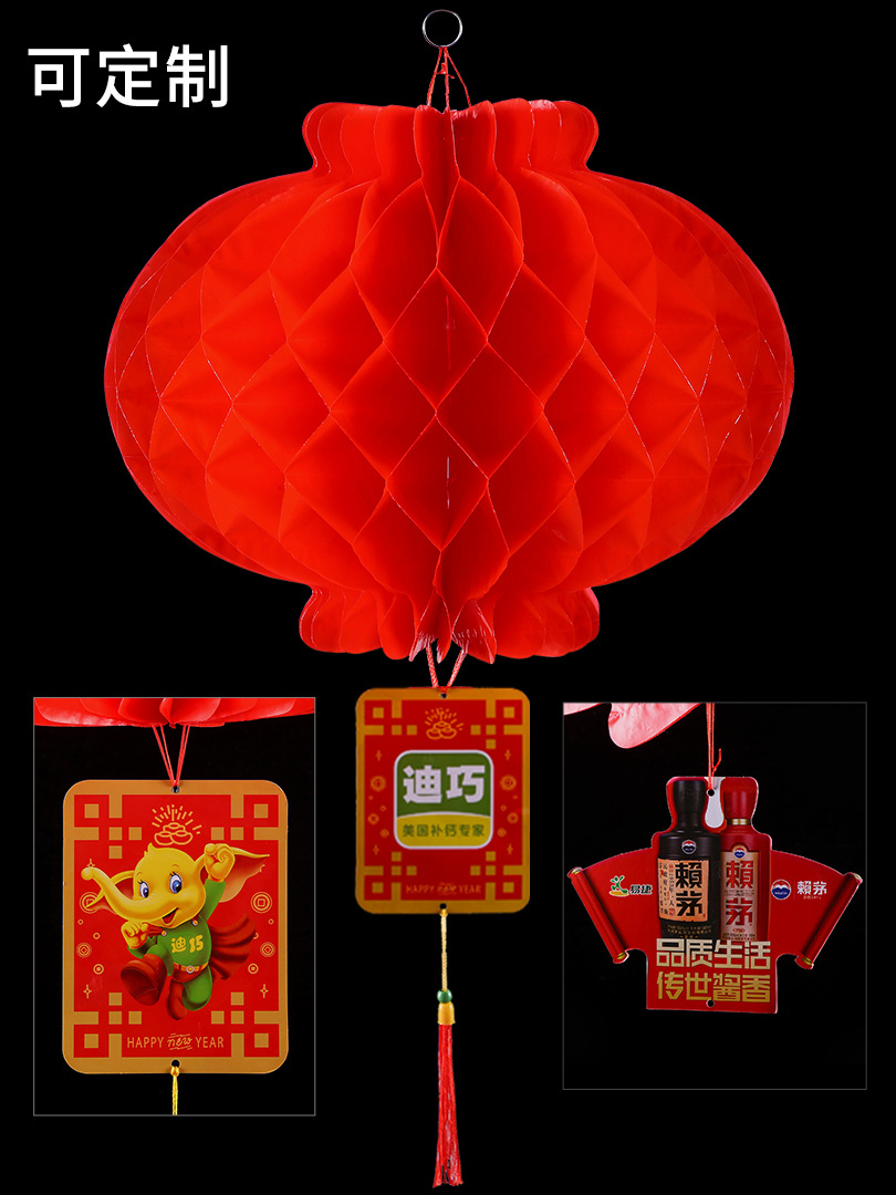 塑纸灯笼厂家批发连串蜂窝灯笼折叠大红平安灯可定制广告纸灯笼