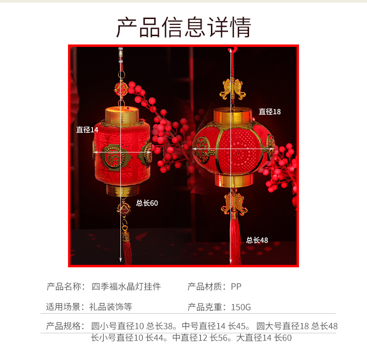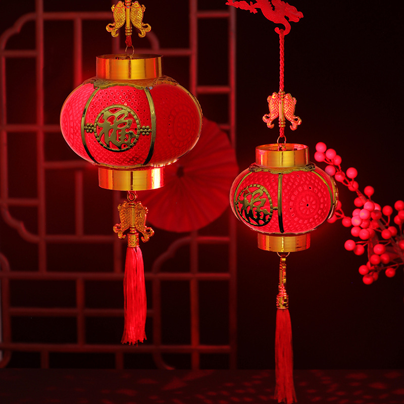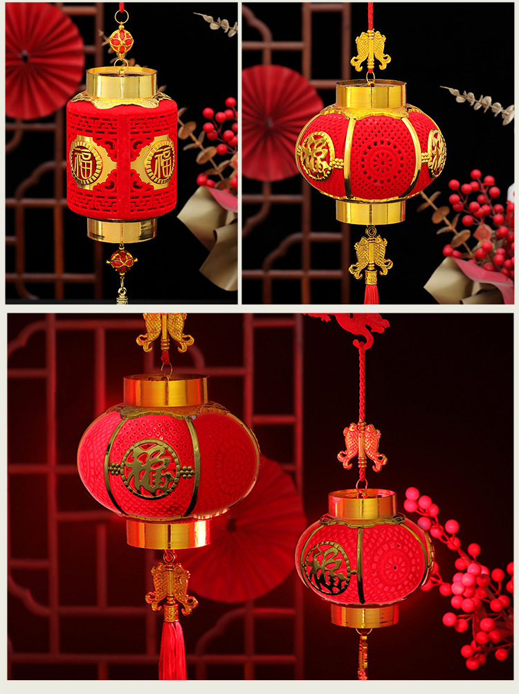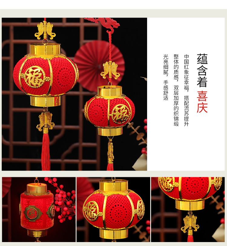 春节新年装饰手提四季福镂空灯笼中国风儿童diy手工制作发光灯笼