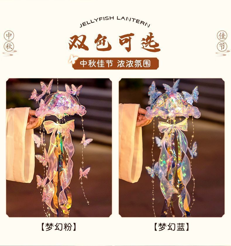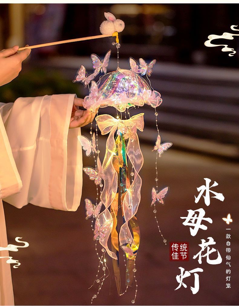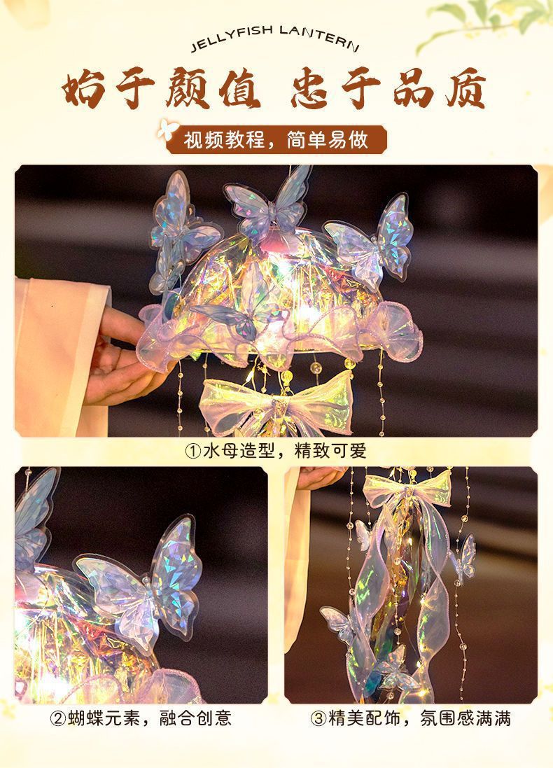 2025新款水母发光灯笼手工diy材料包儿童ins梦幻手提玩具夜市摆摊