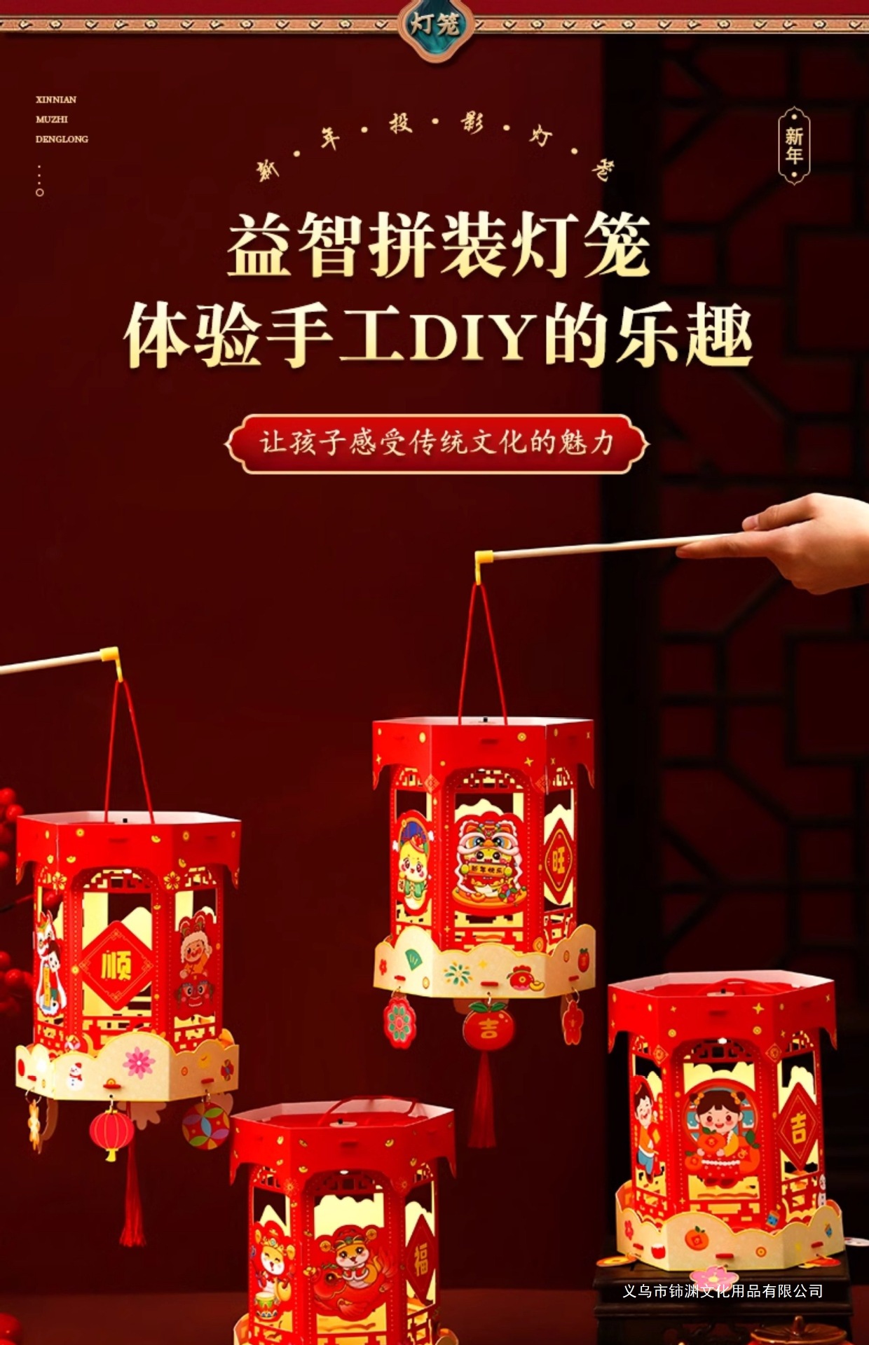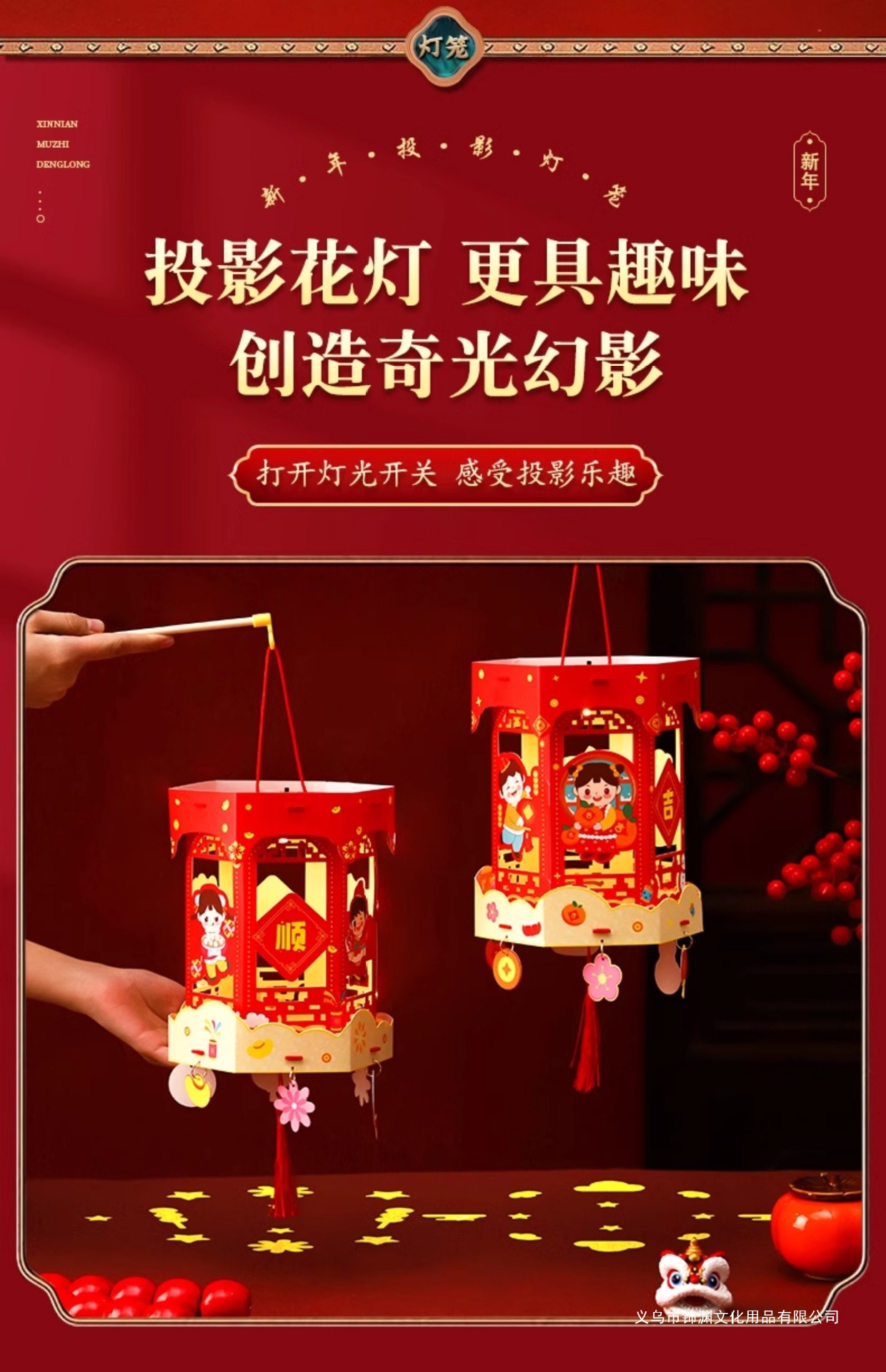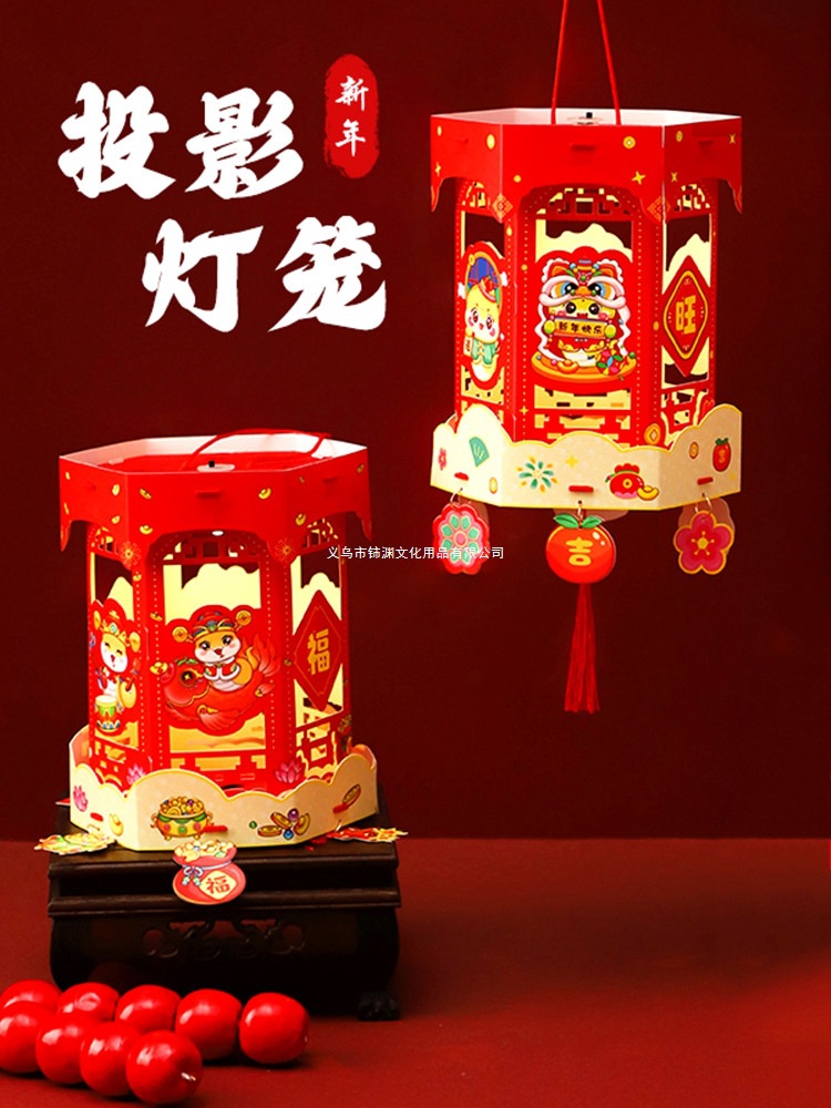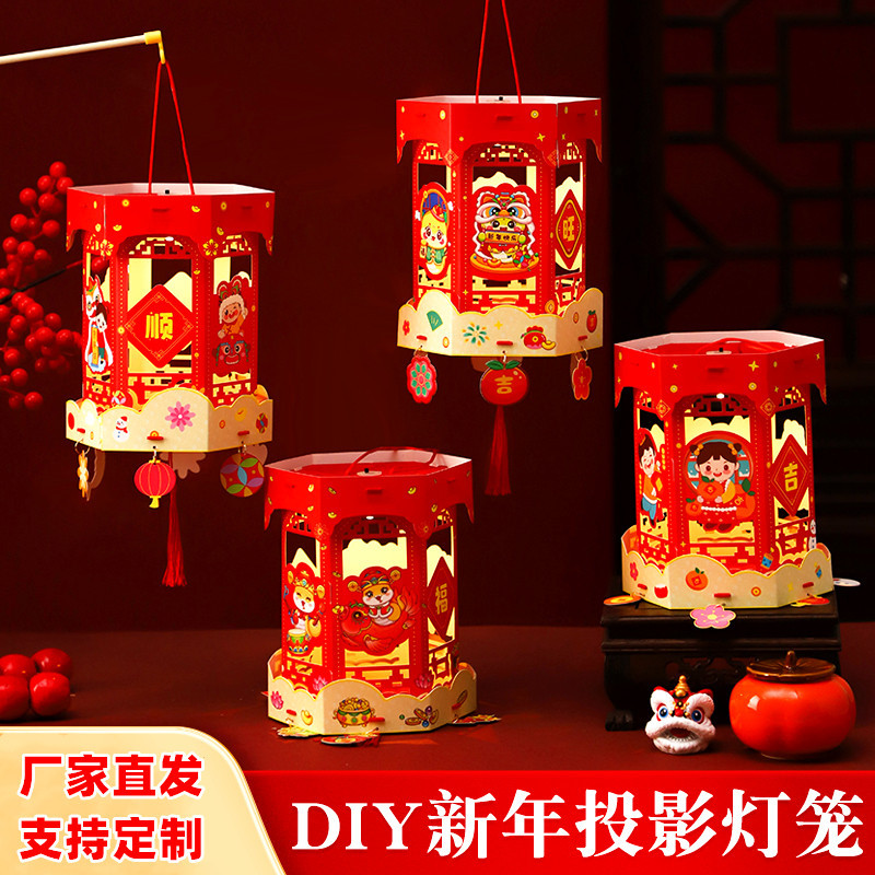 新年投影走马灯笼手工diy儿童制作材料包手提发光玩具幼儿园礼物