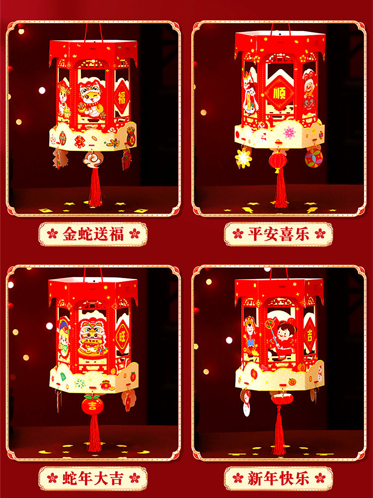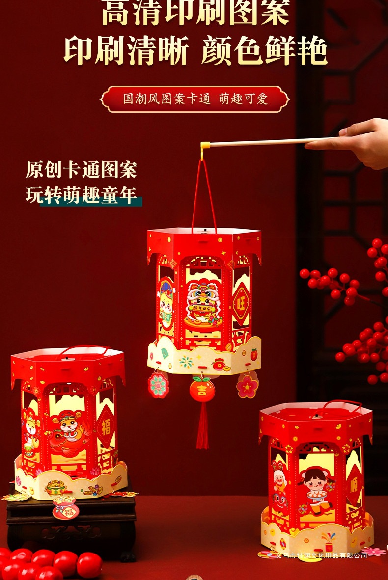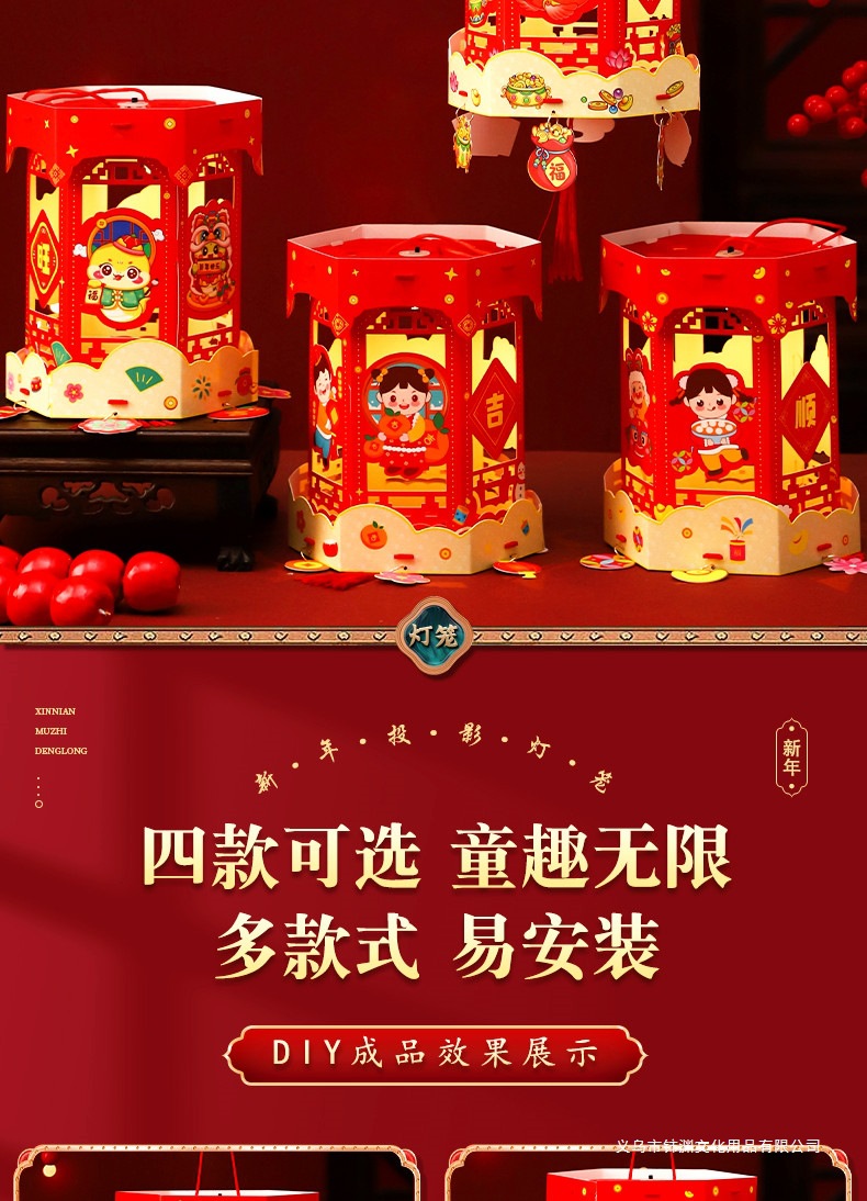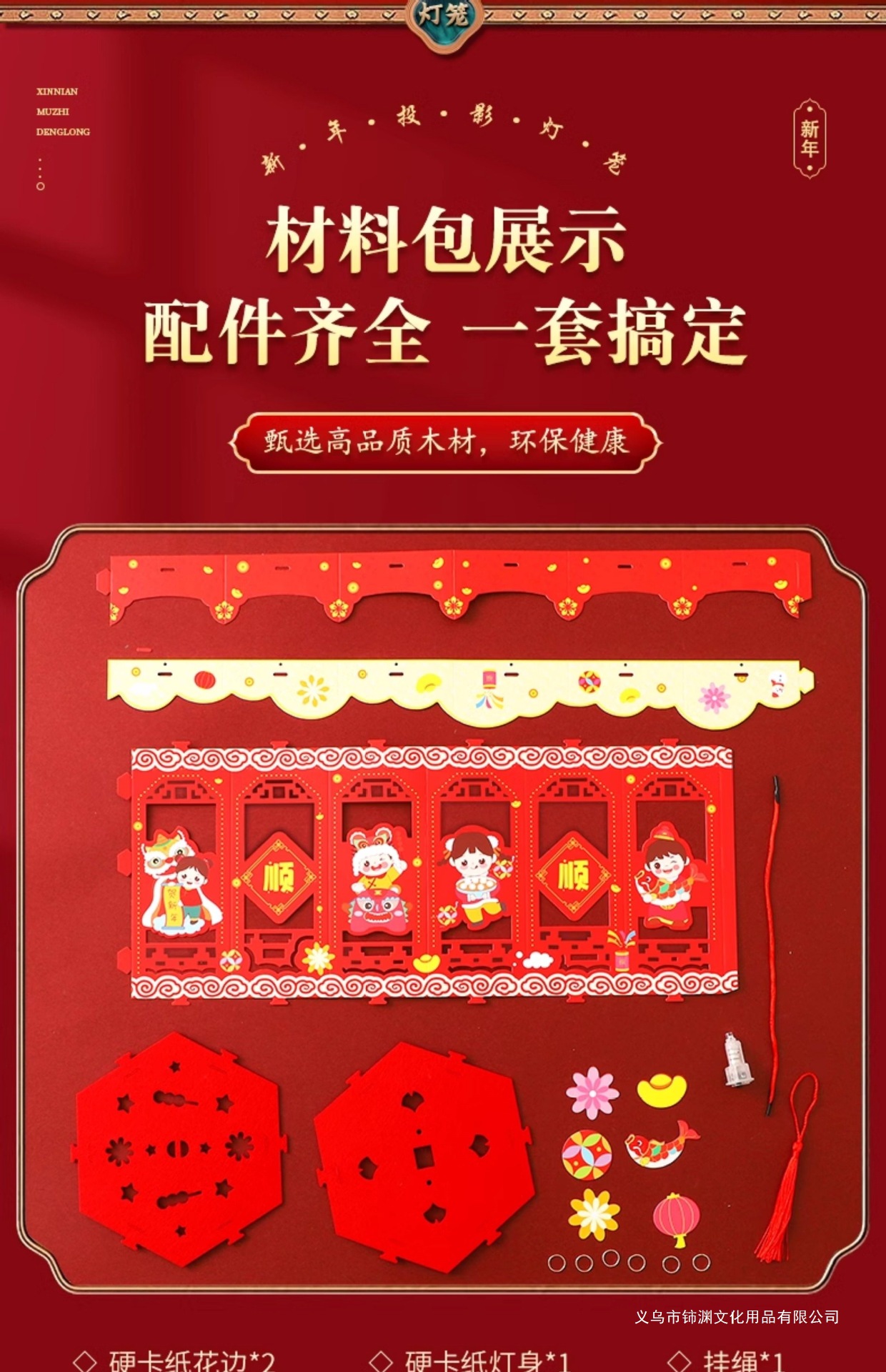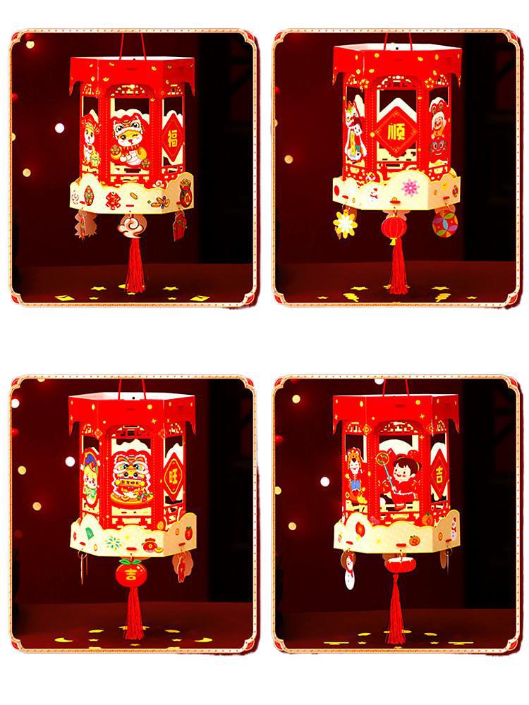 新年投影走马灯笼手工diy儿童制作材料包手提发光玩具幼儿园礼物